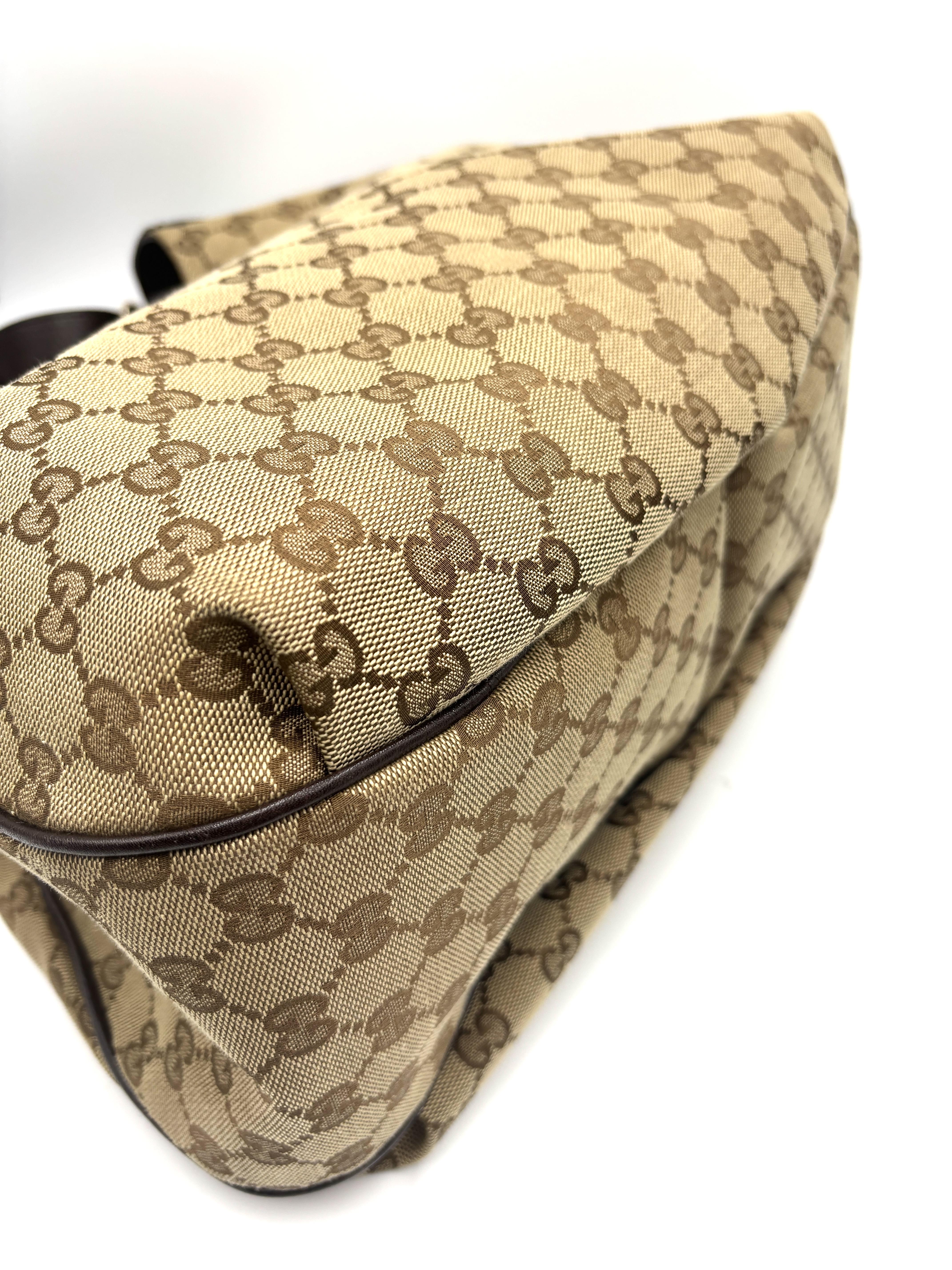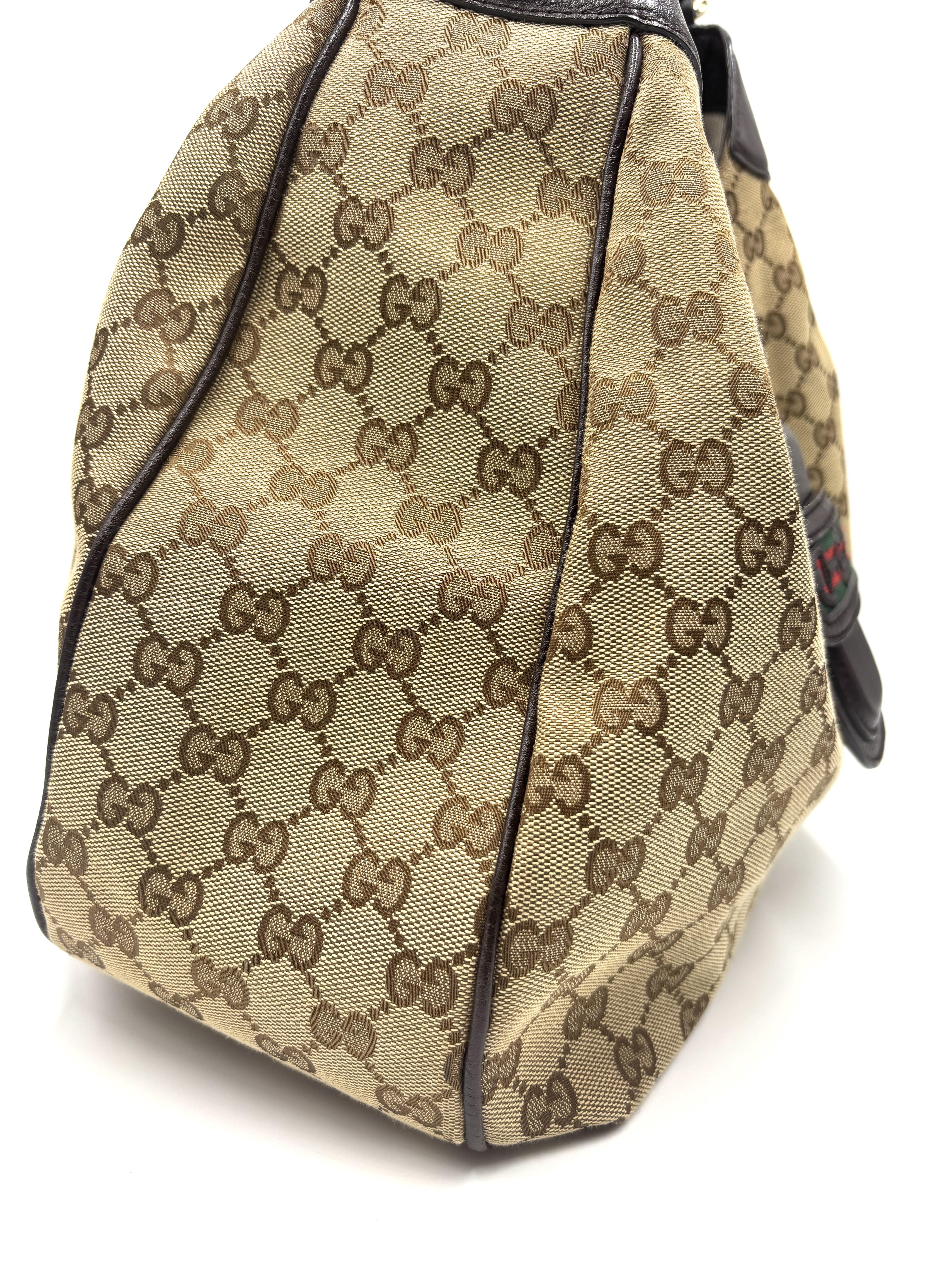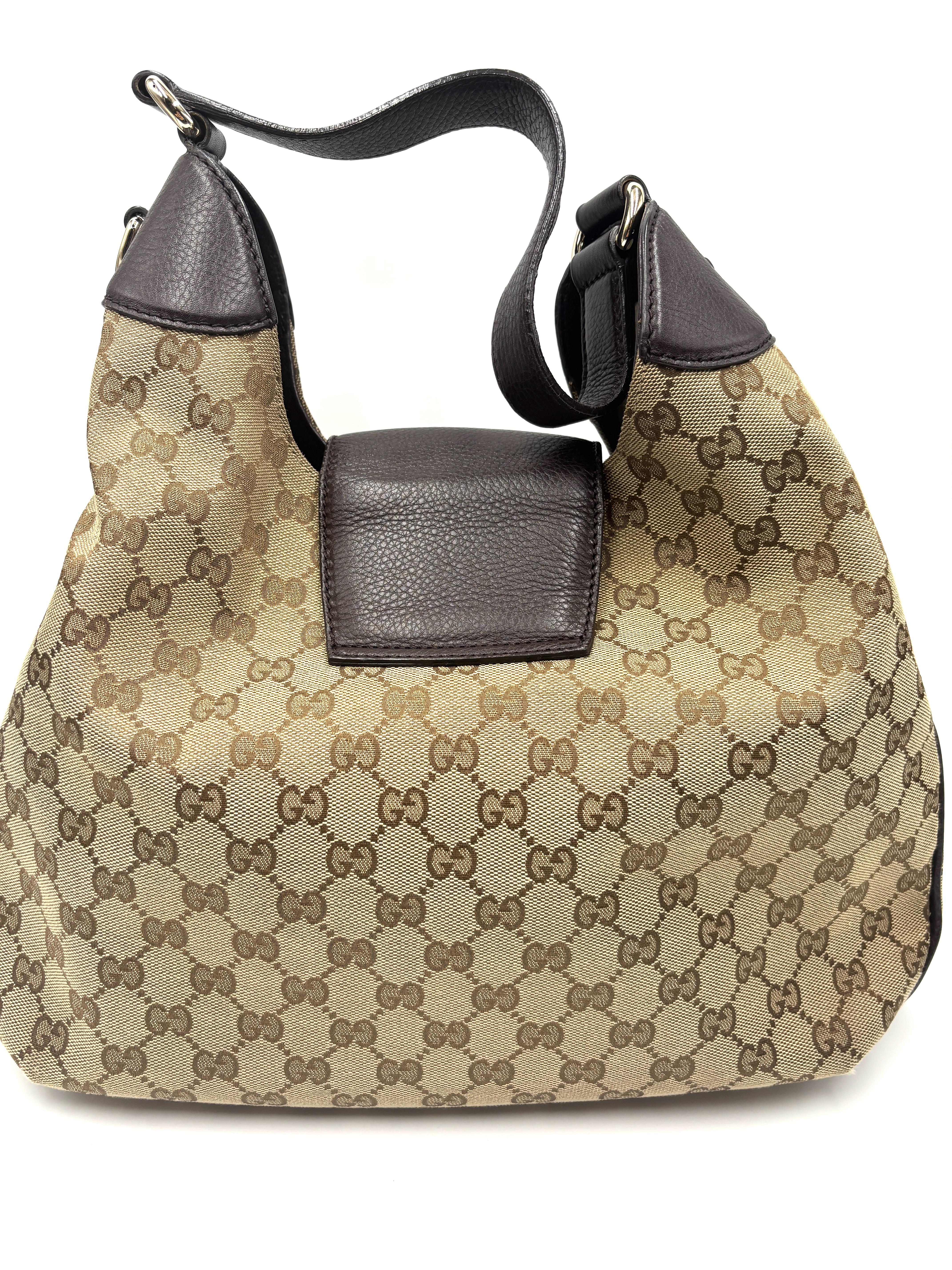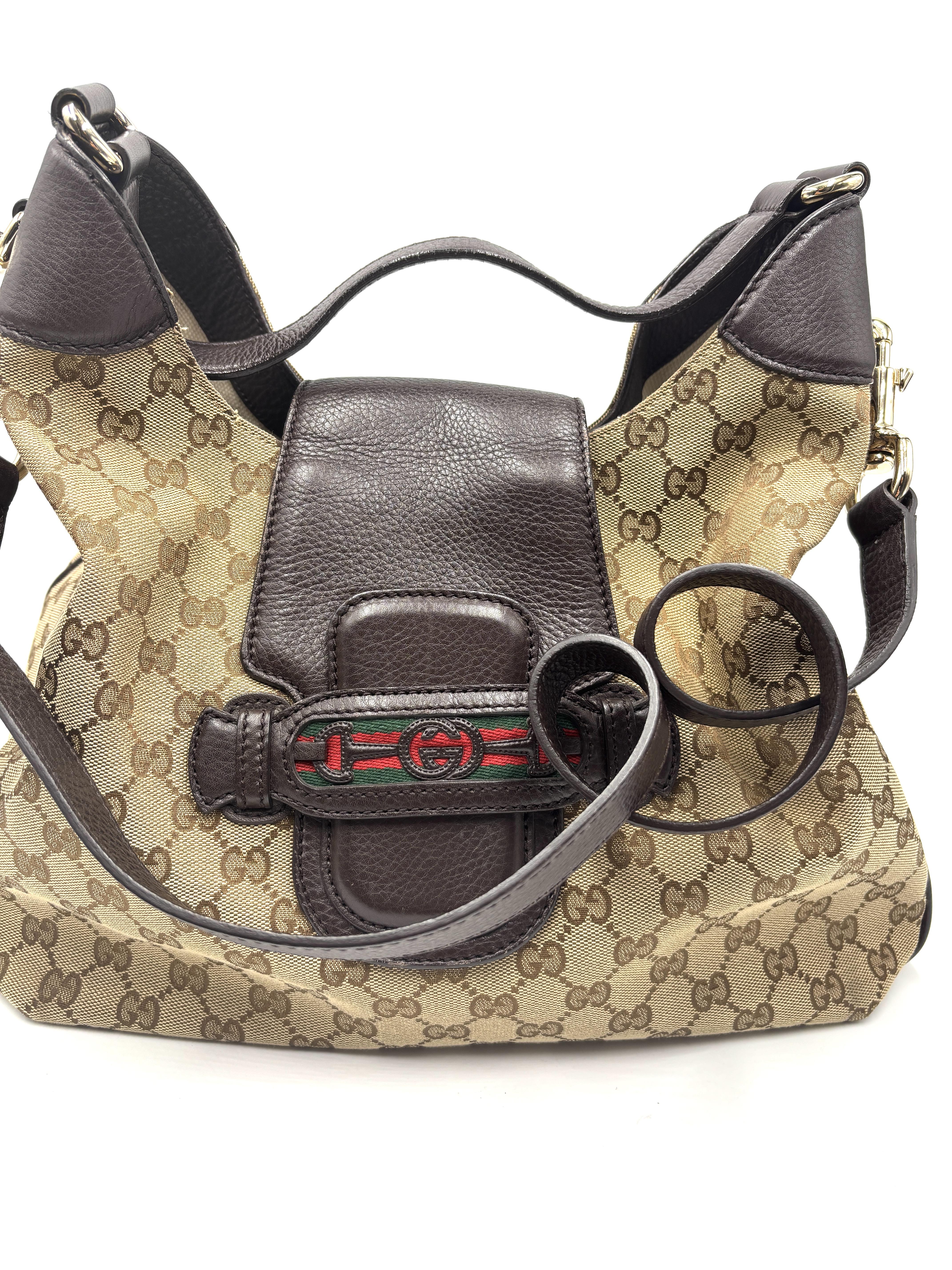 GUCCI shoulder bag with flap closure. Brown leather handles and flap, complete with shoulder strap.