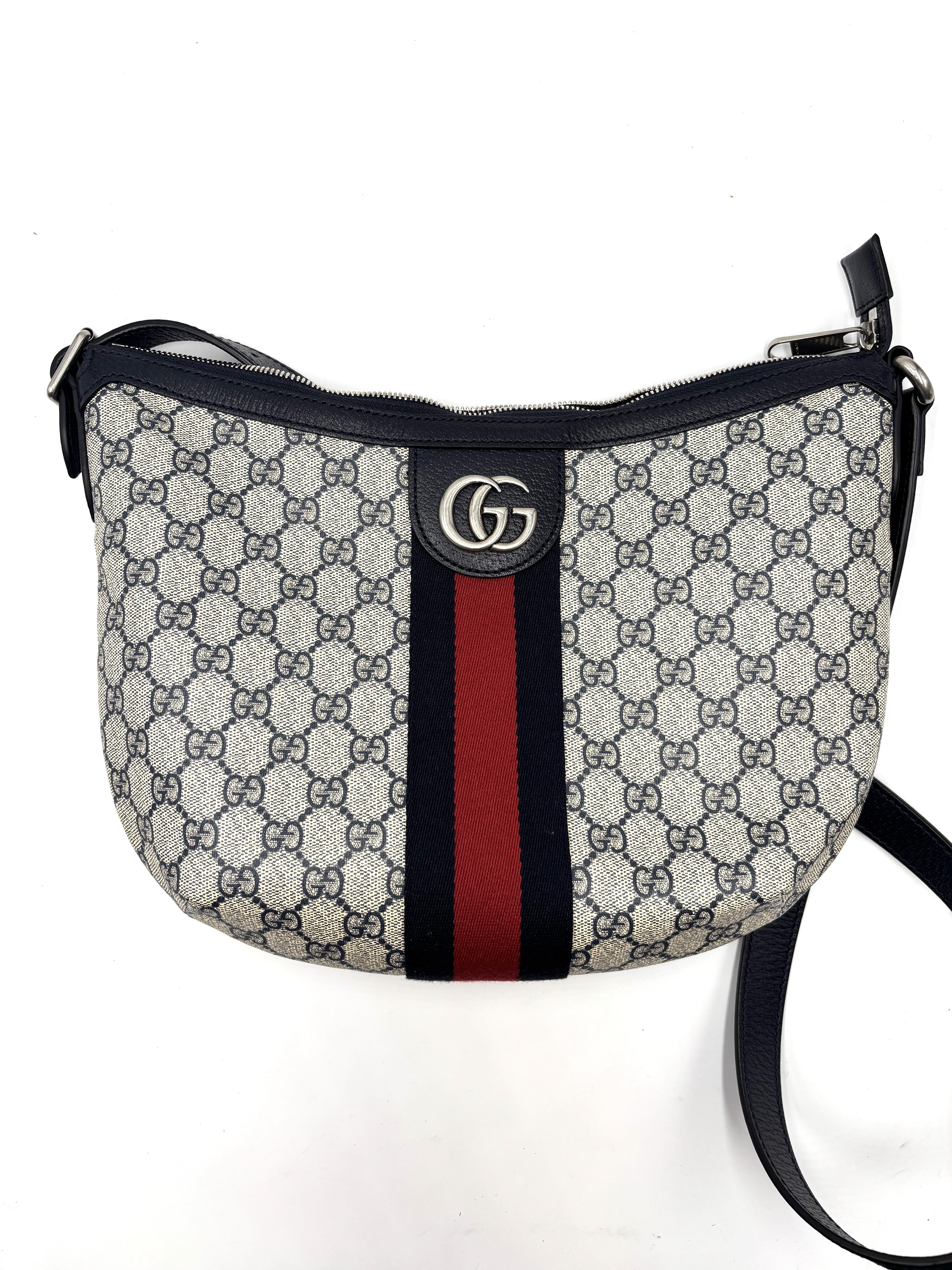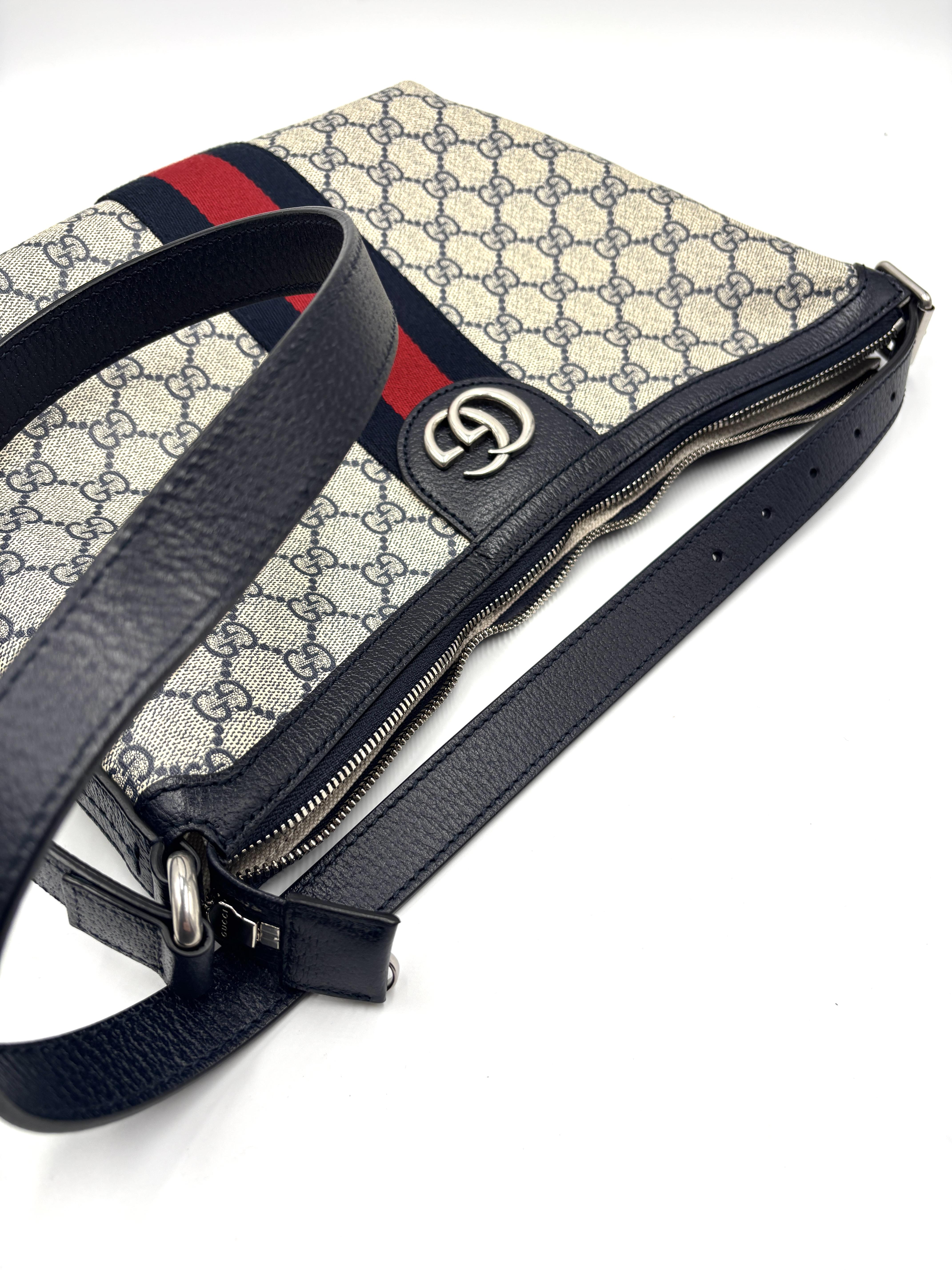 GUCCI Ophidia shoulder bag in supreme canvas and blue leather
