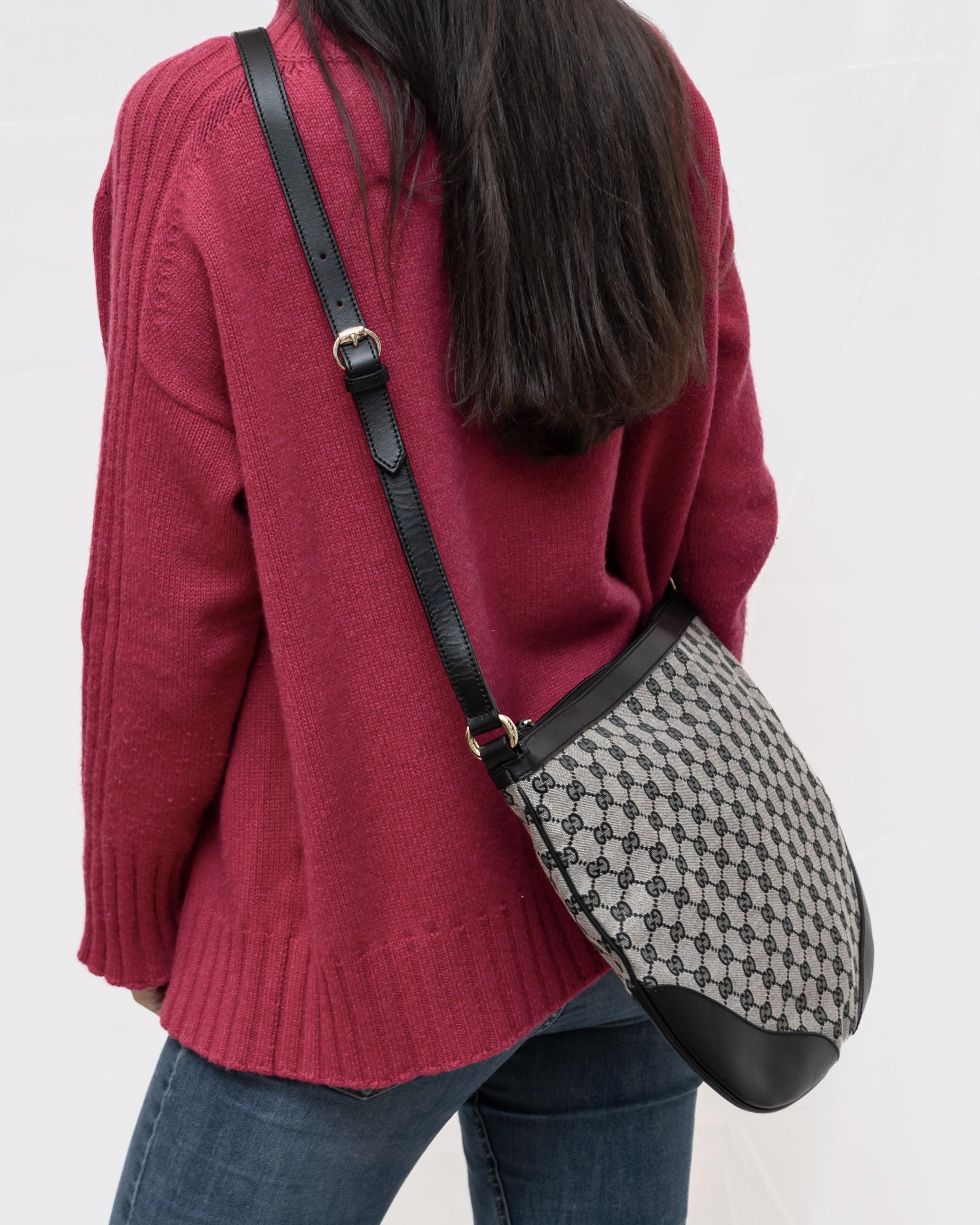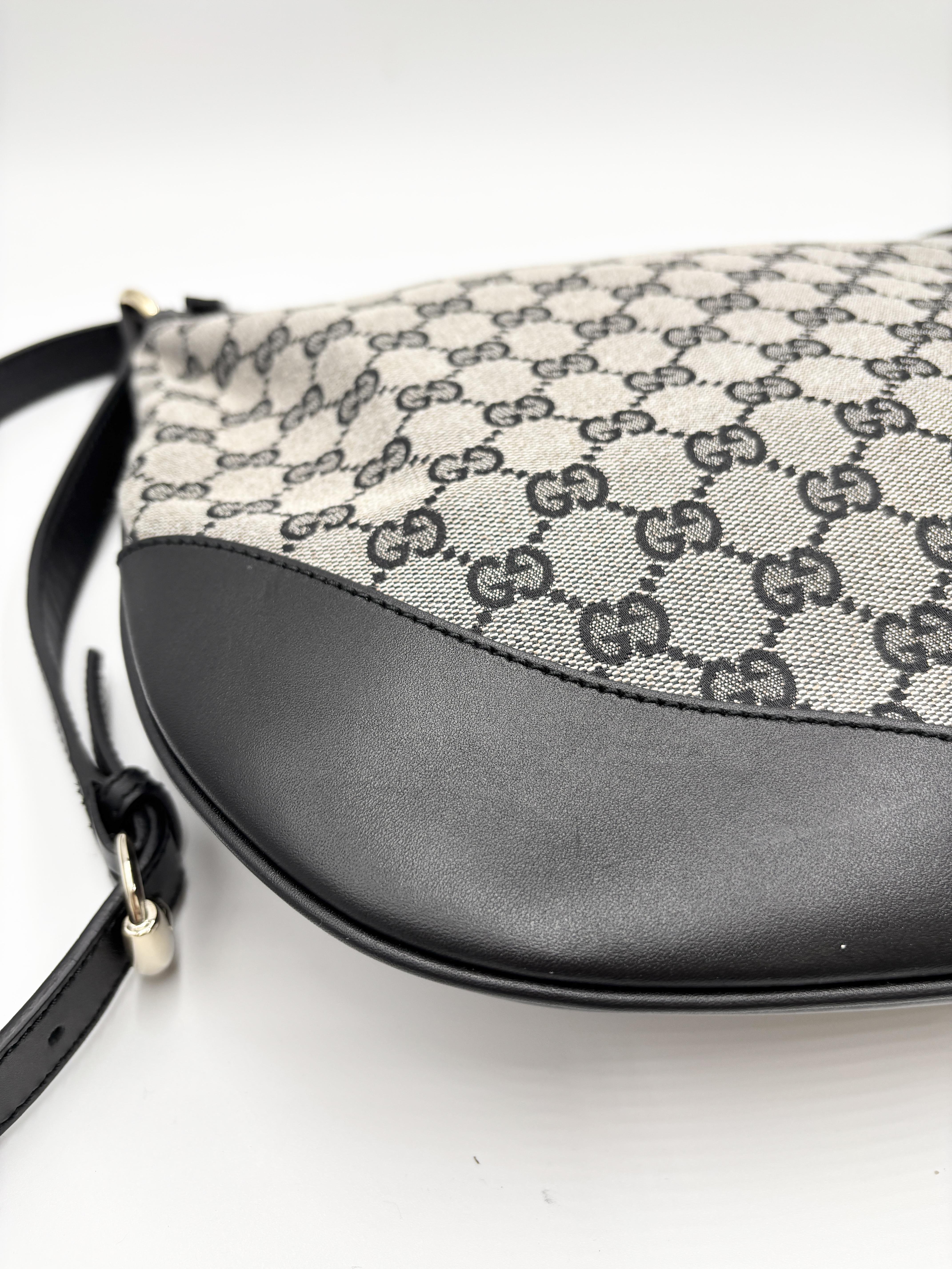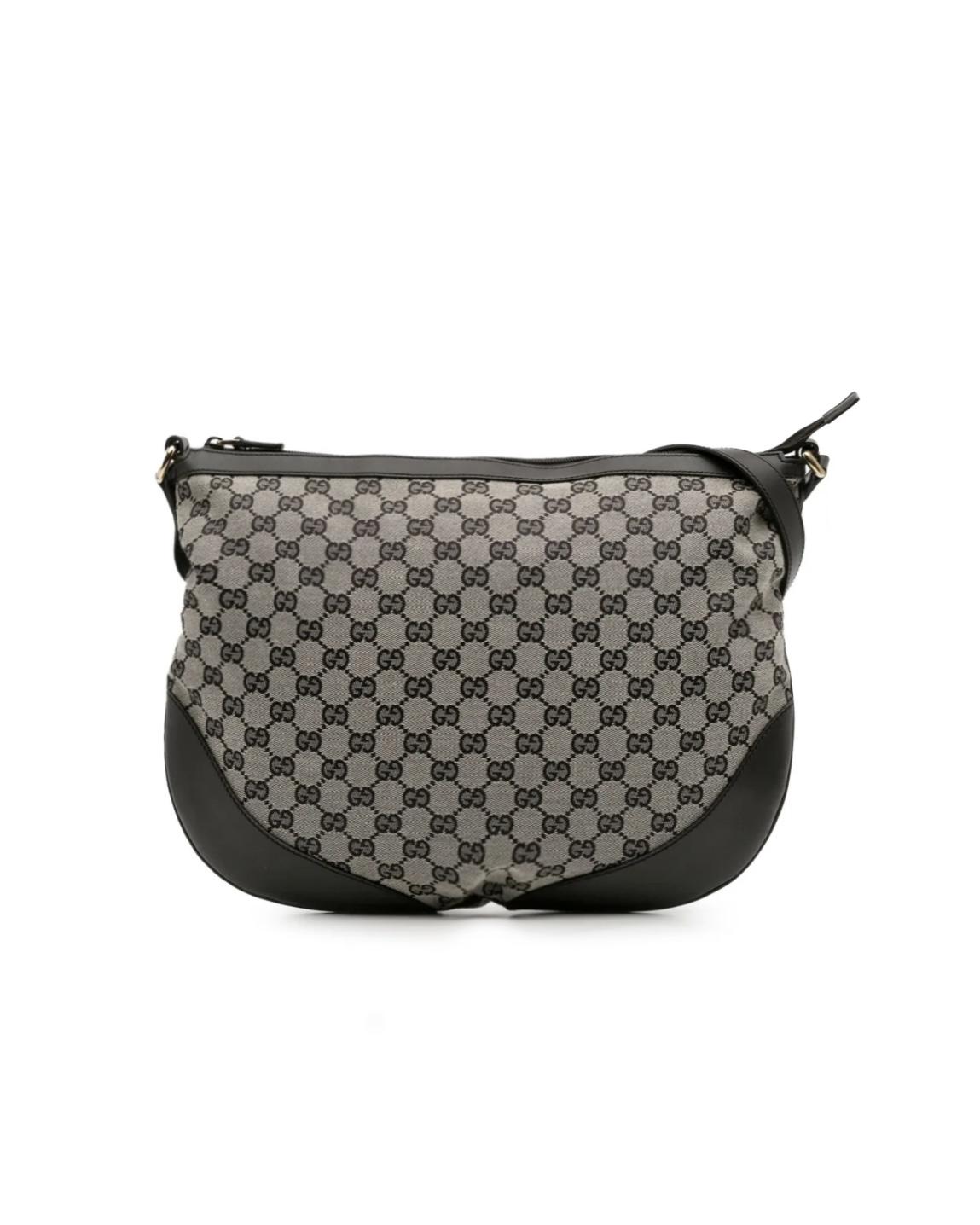 GUCCI shoulder bag in black and grey monogram fabric with black leather details