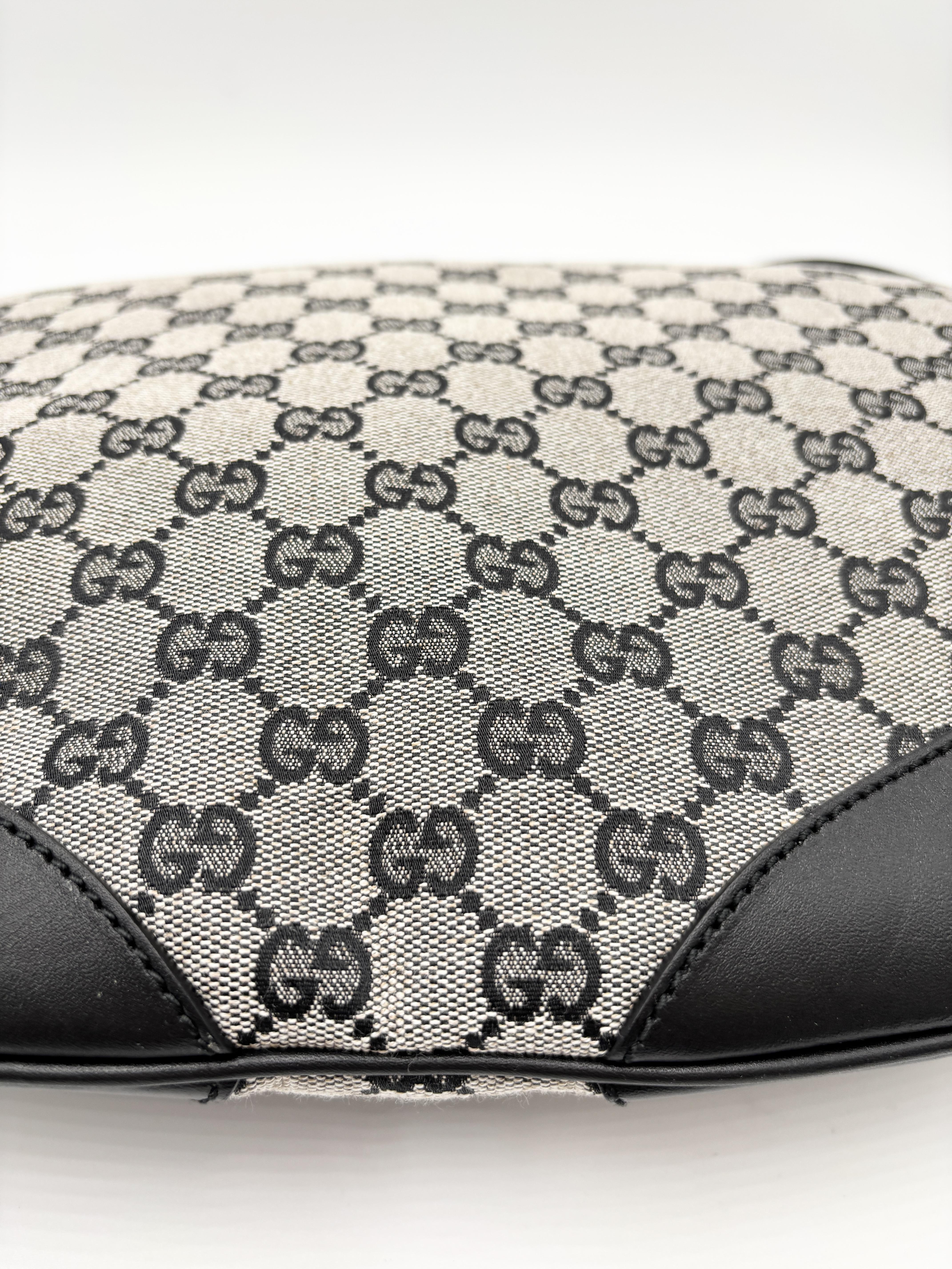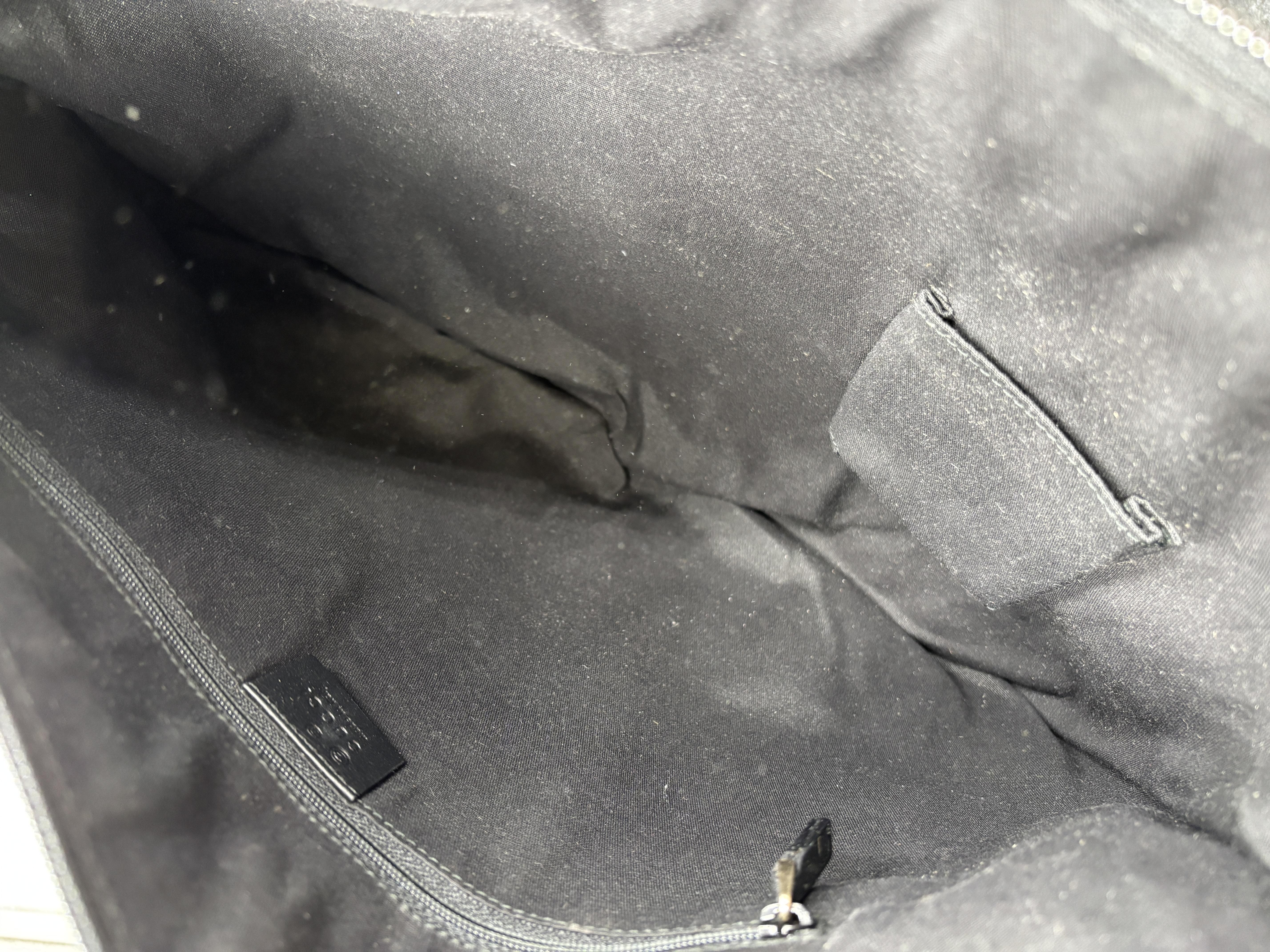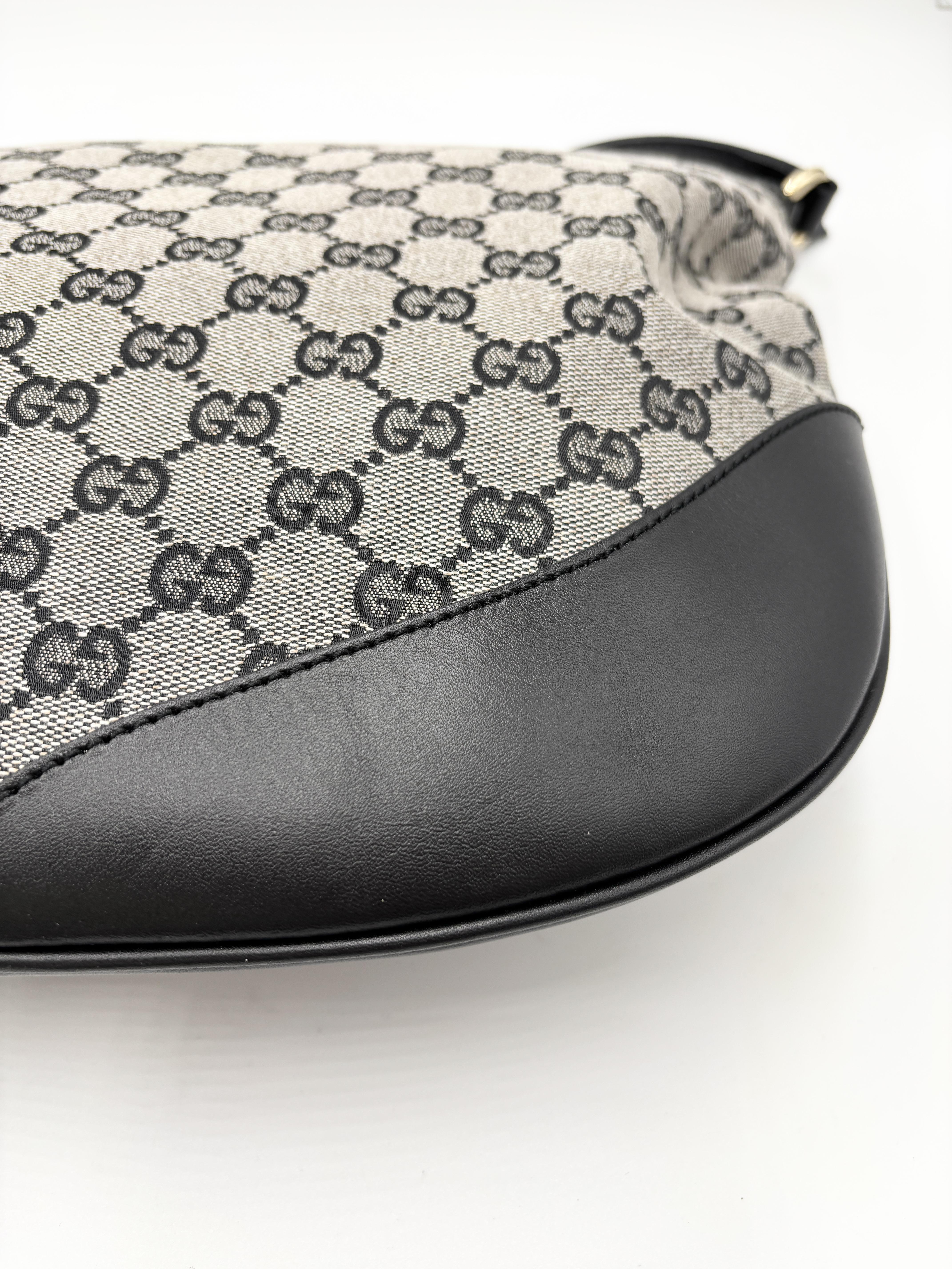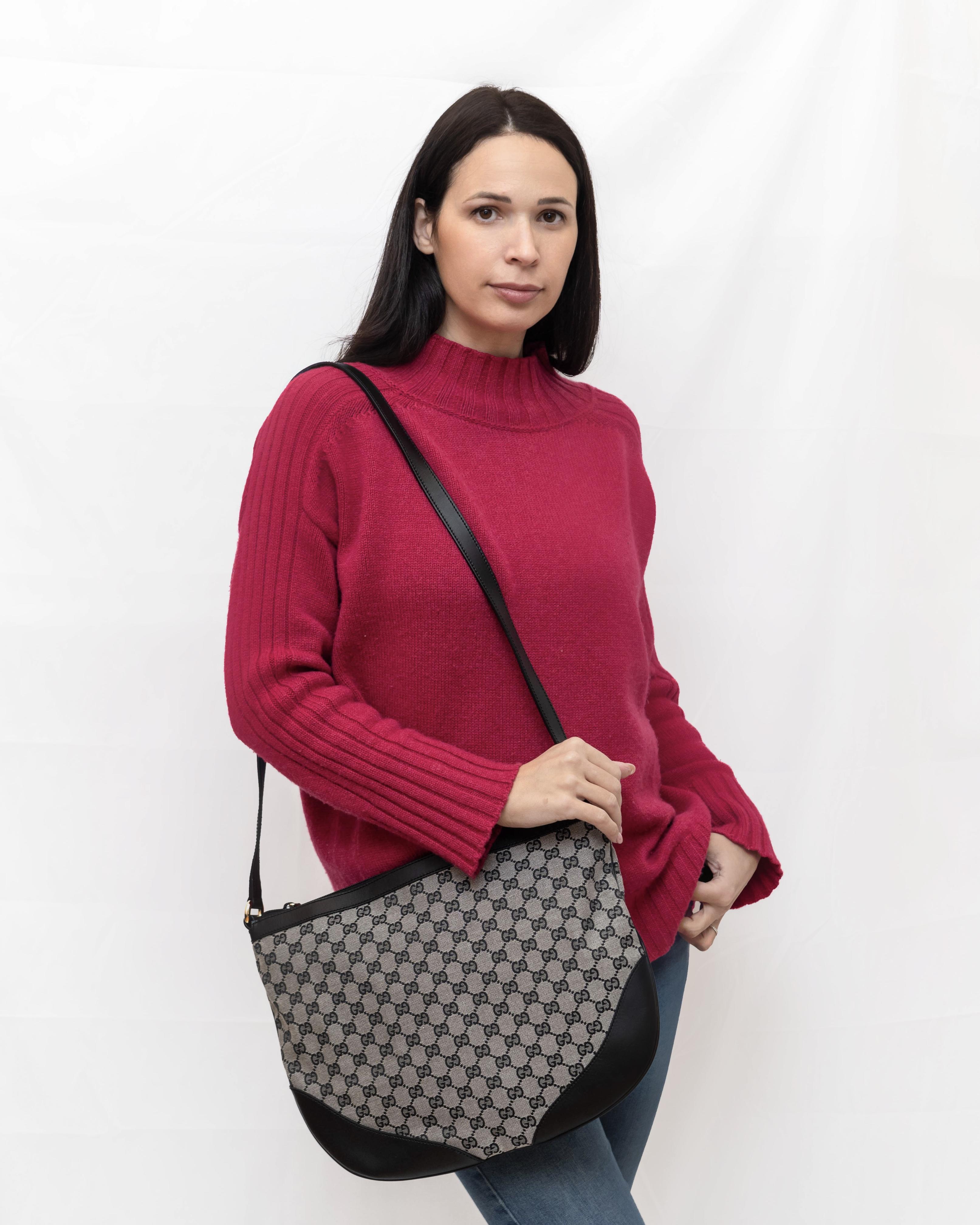 GUCCI shoulder bag in black and grey monogram fabric with black leather details