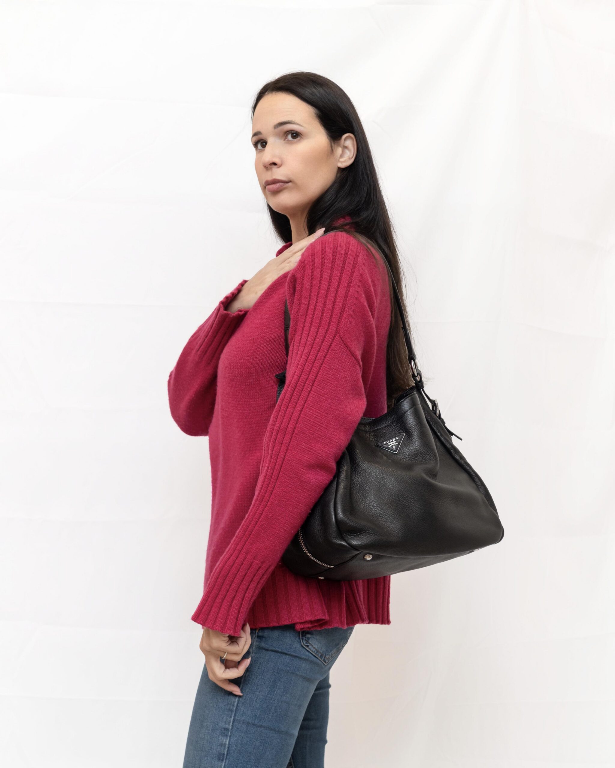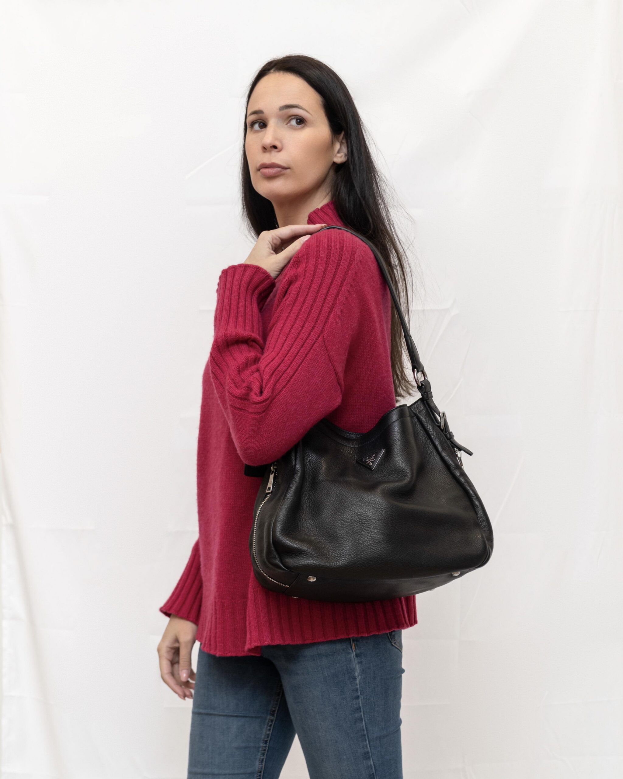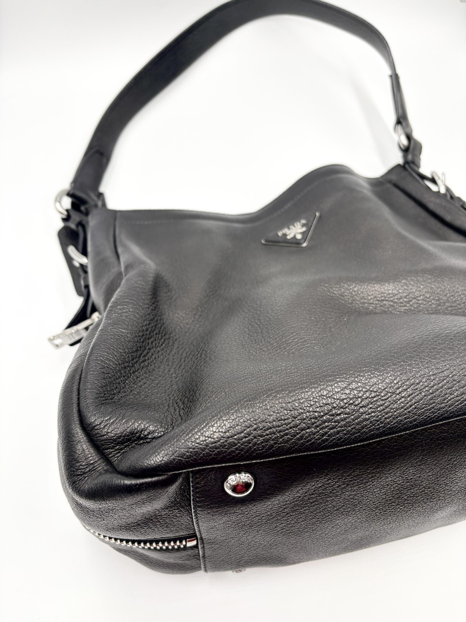 PRADA shoulder bag in soft black nappa leather with silver hardware