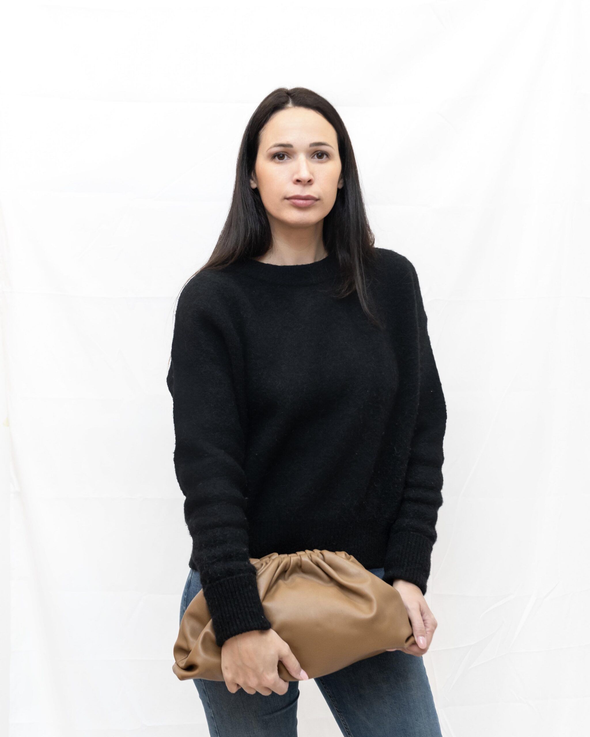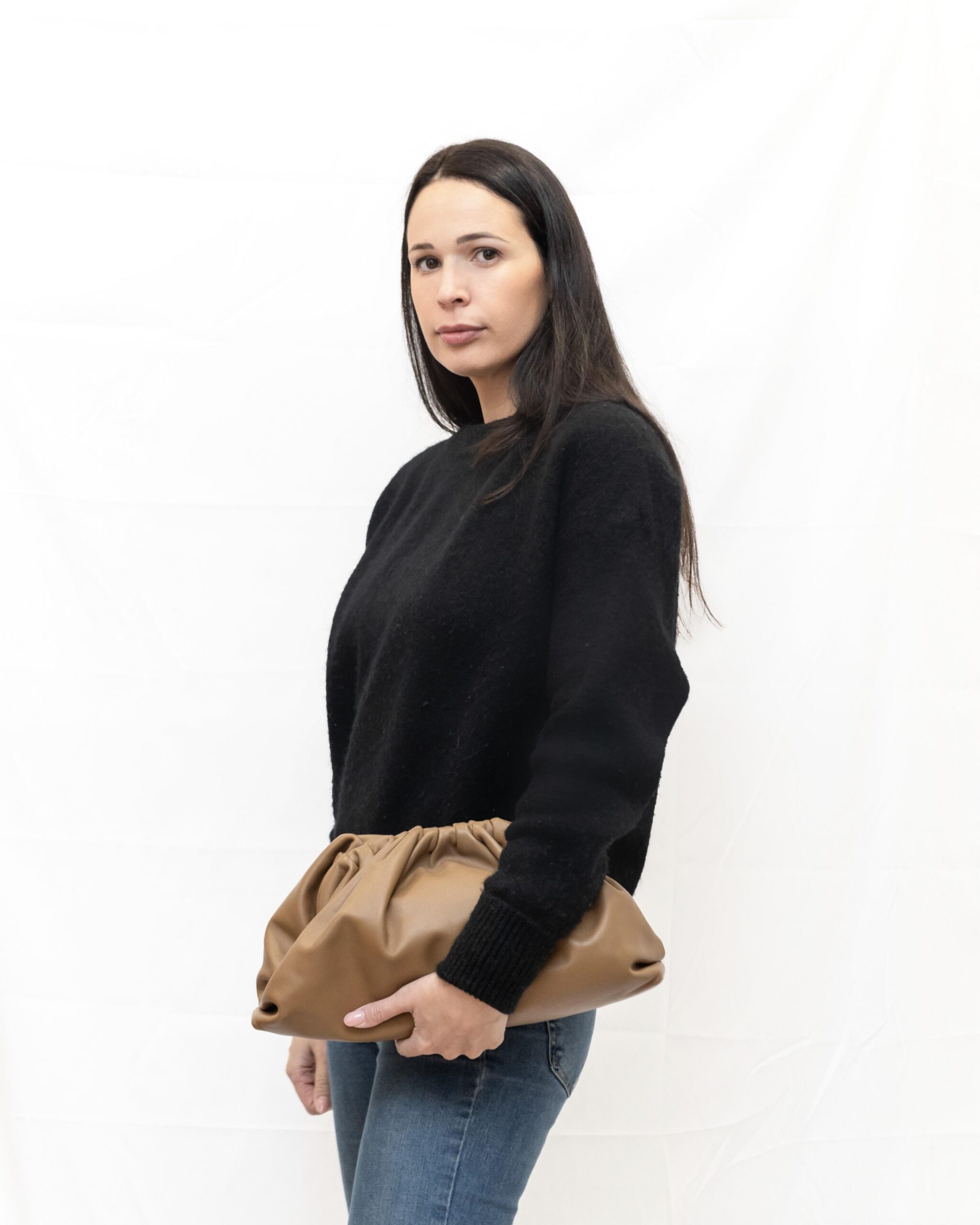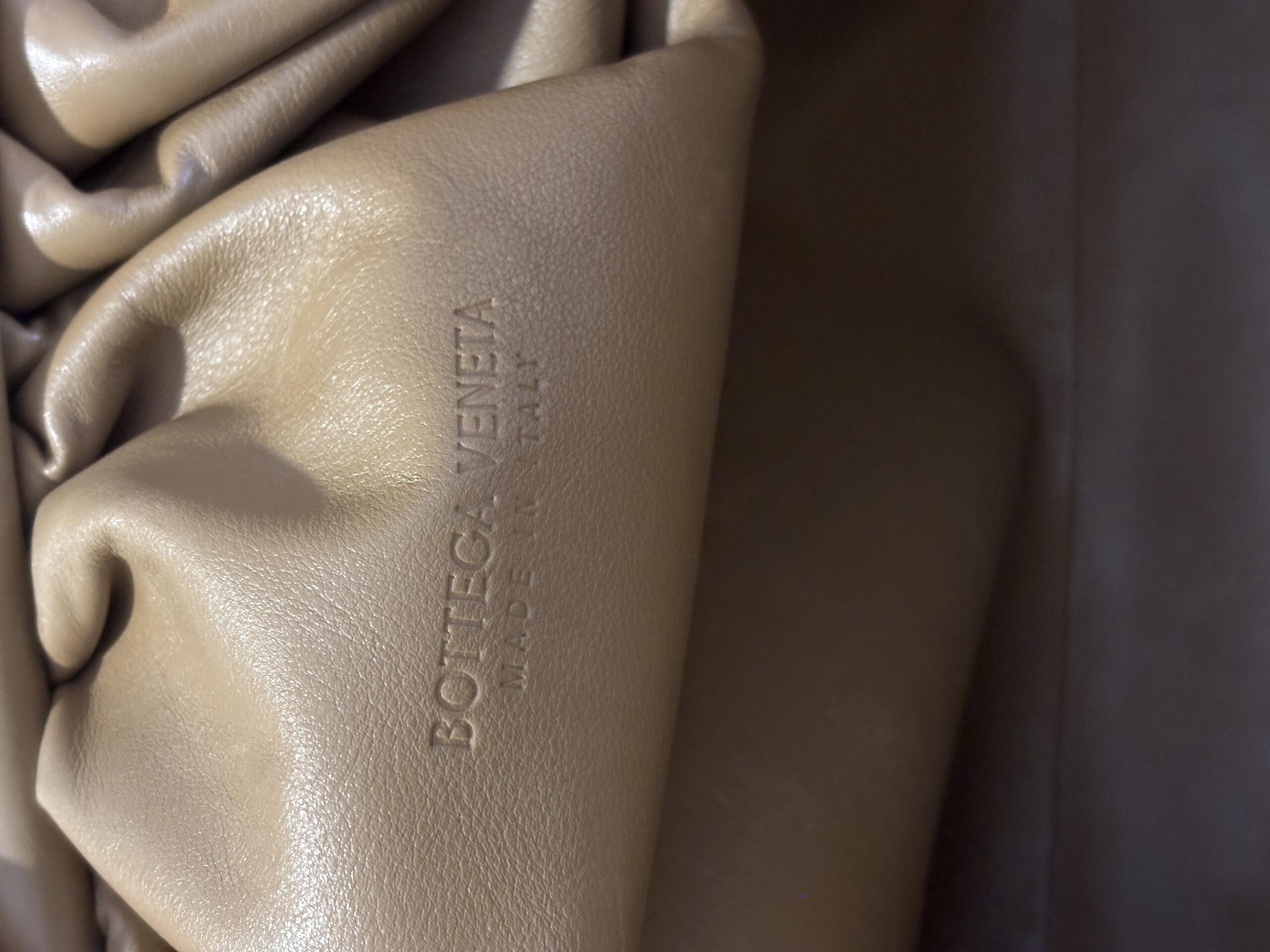 BOTTEGA VENETA pouch in pelle liscia nocciola