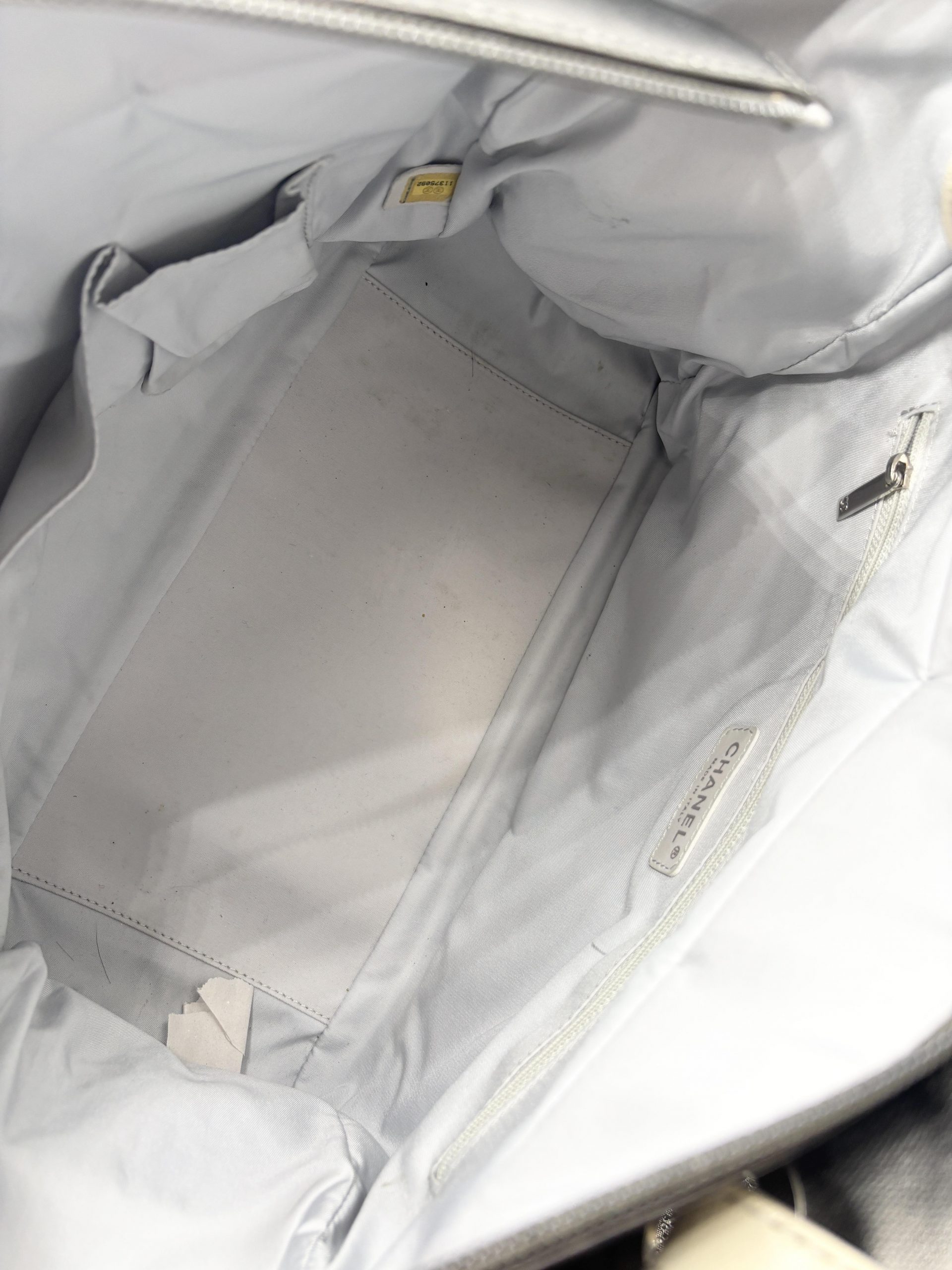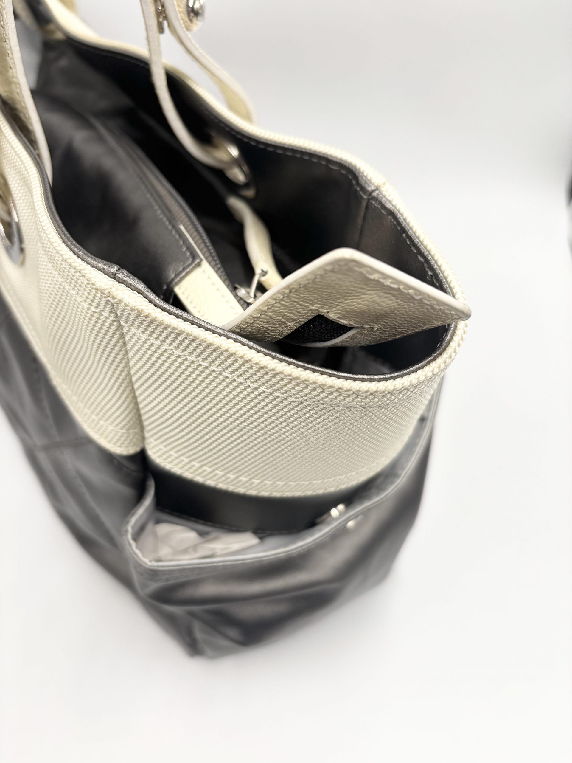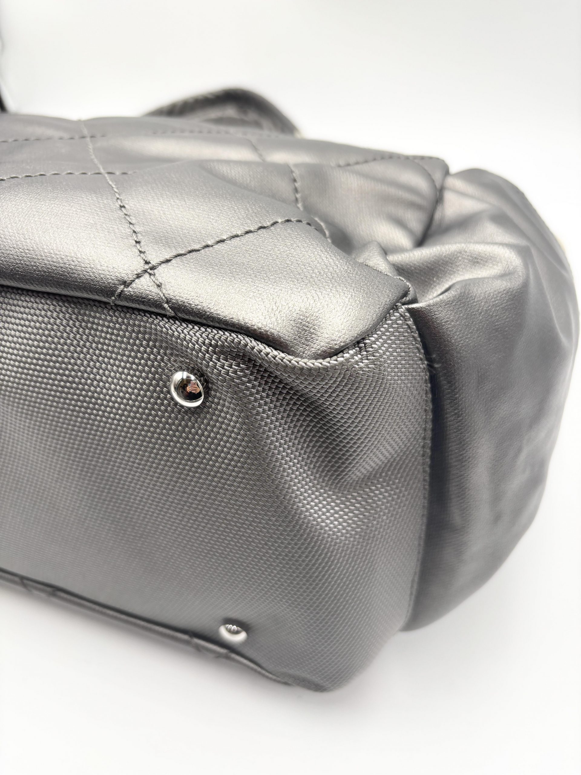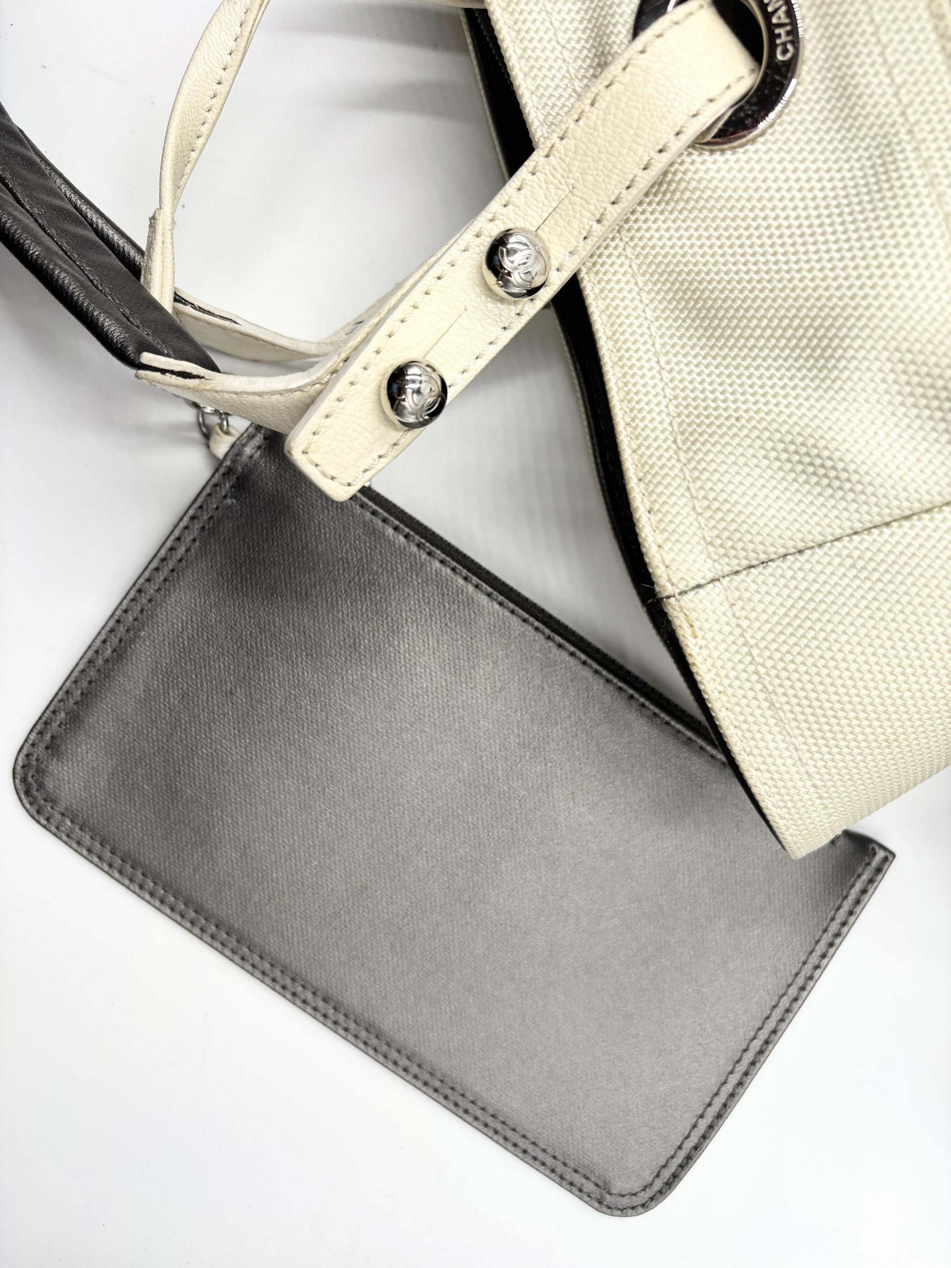 CHANEL shopping Paris – Biarritz in pelle grigio metal e tessuto avorio
