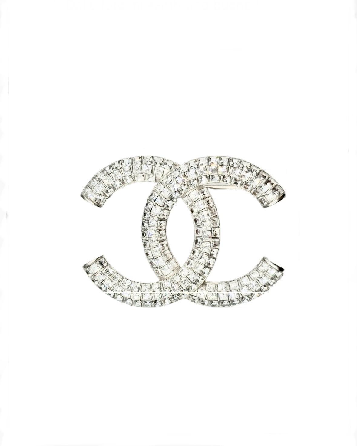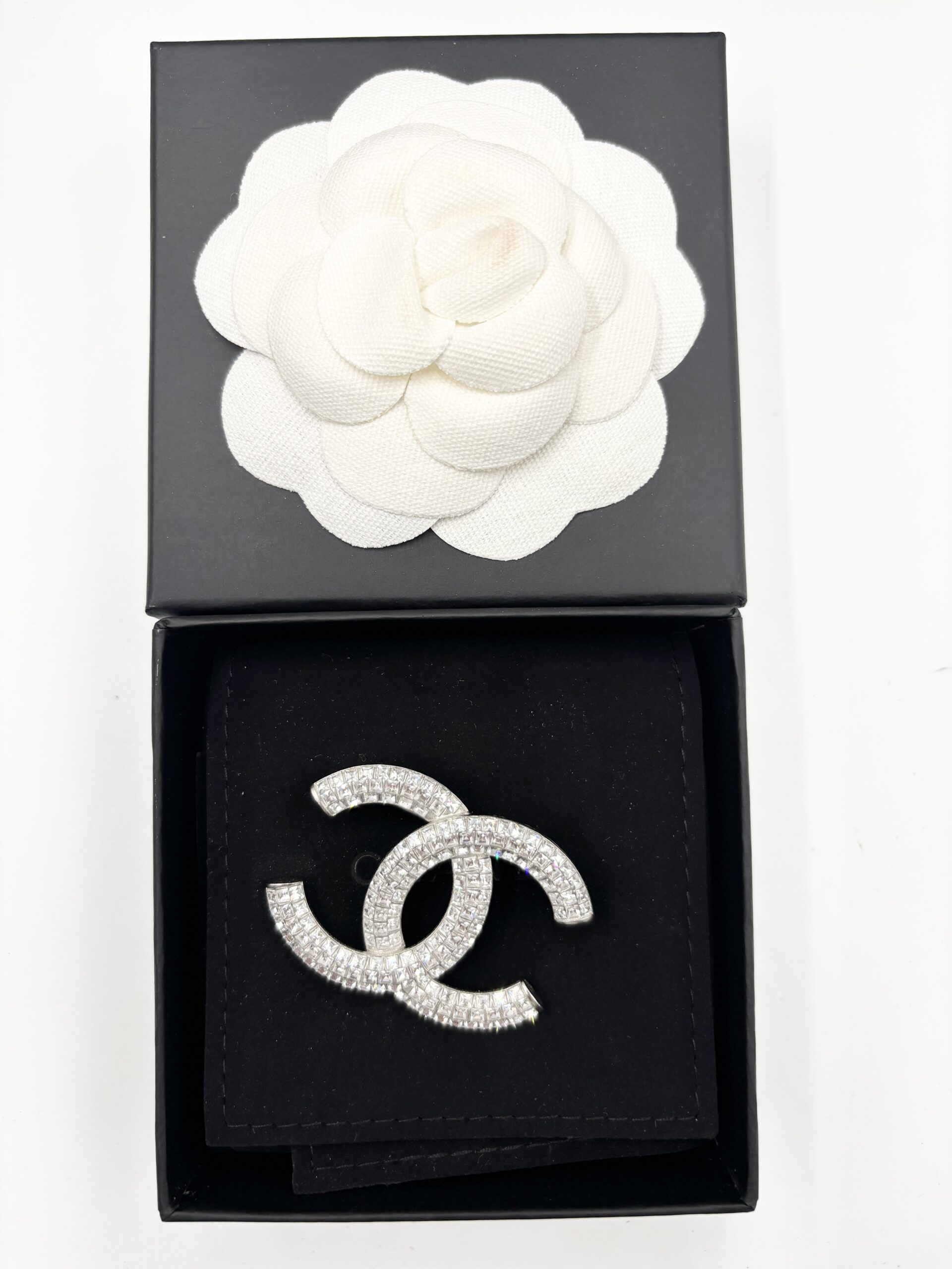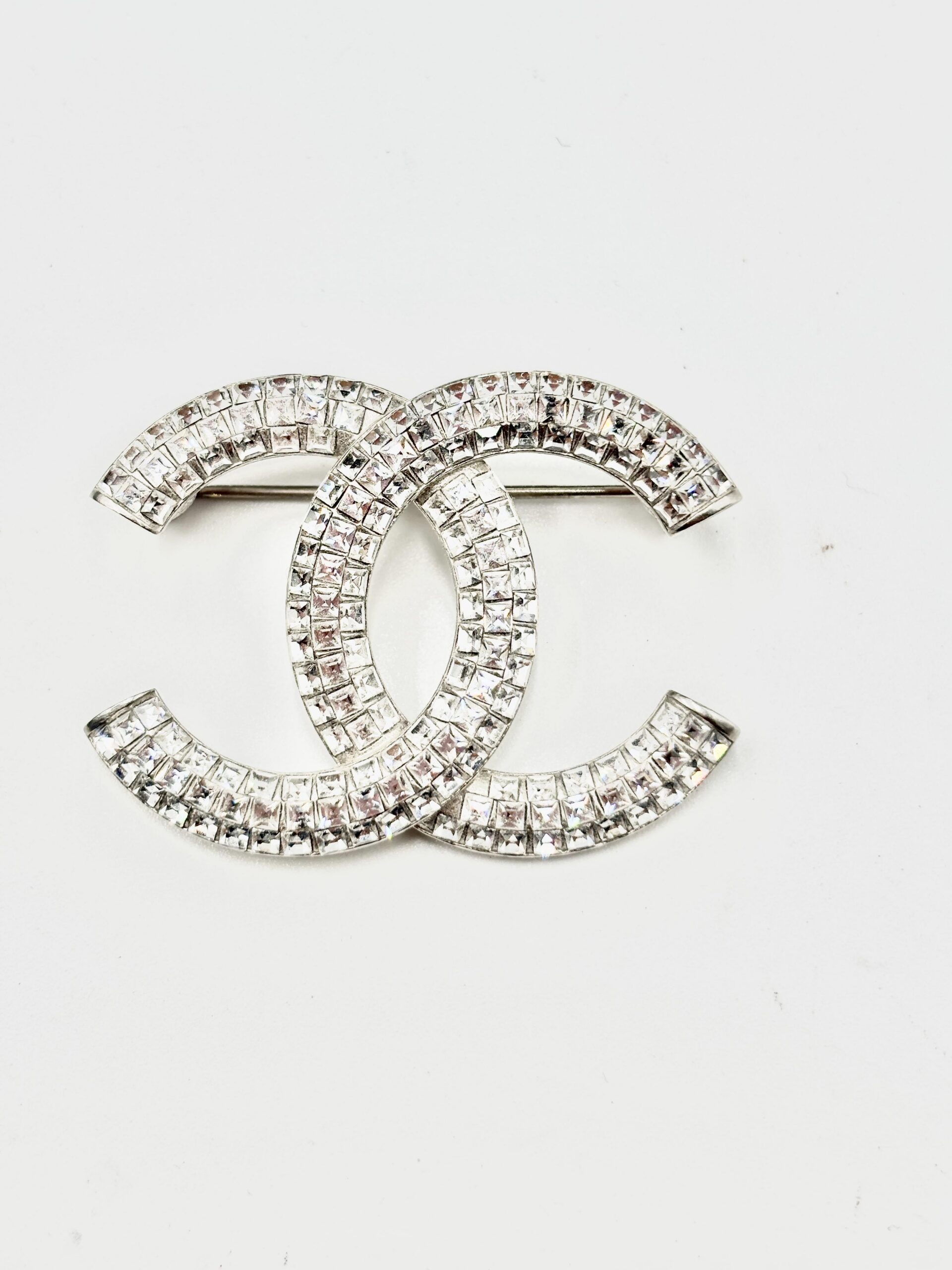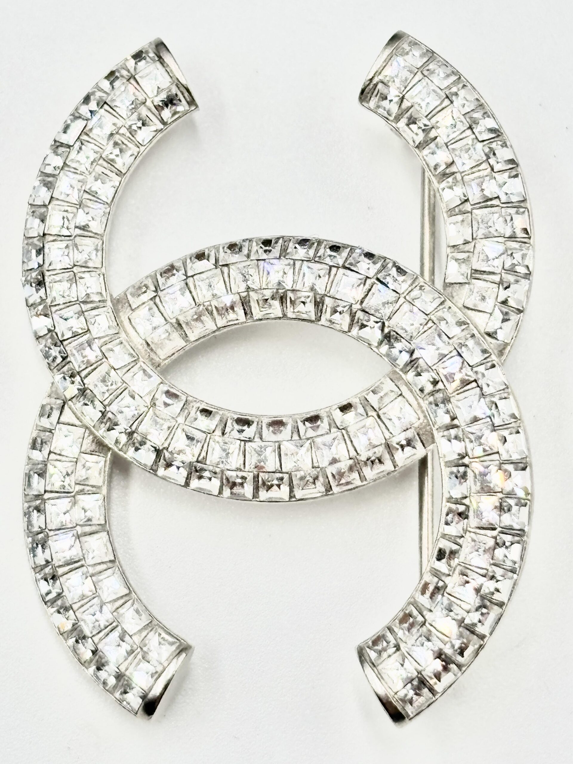 CHANEL spilla a doppia C ricoperta di pietre trasparenti