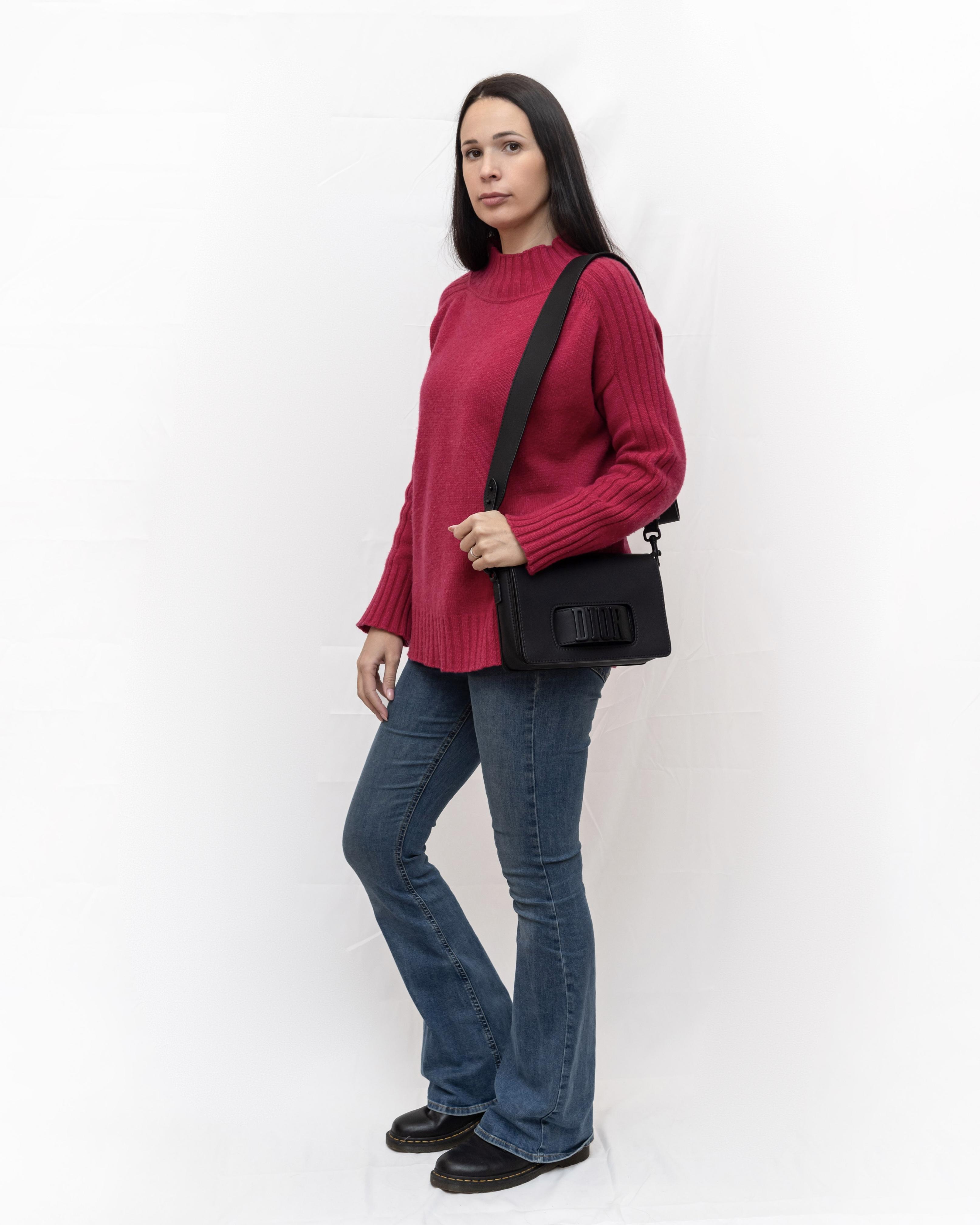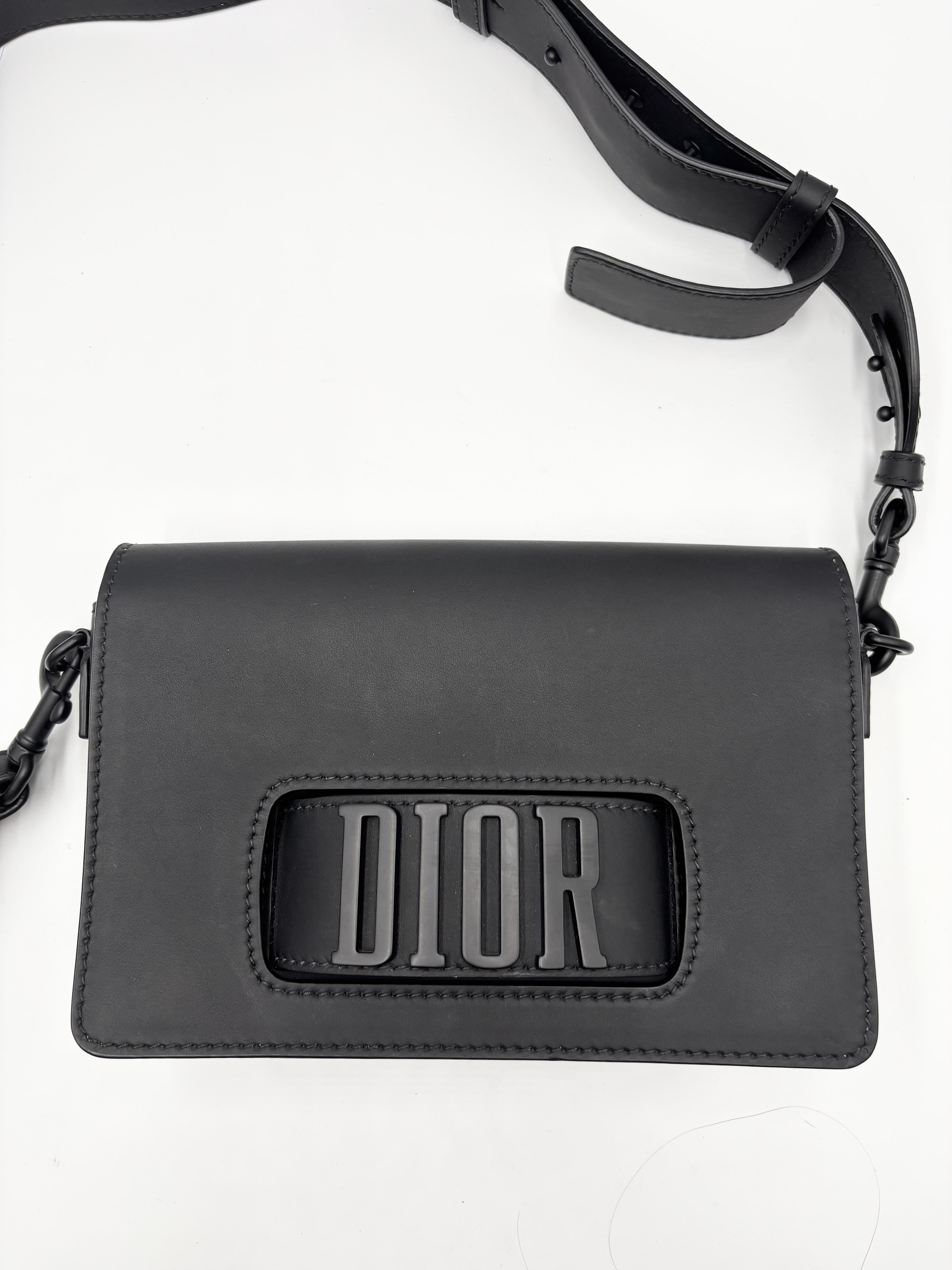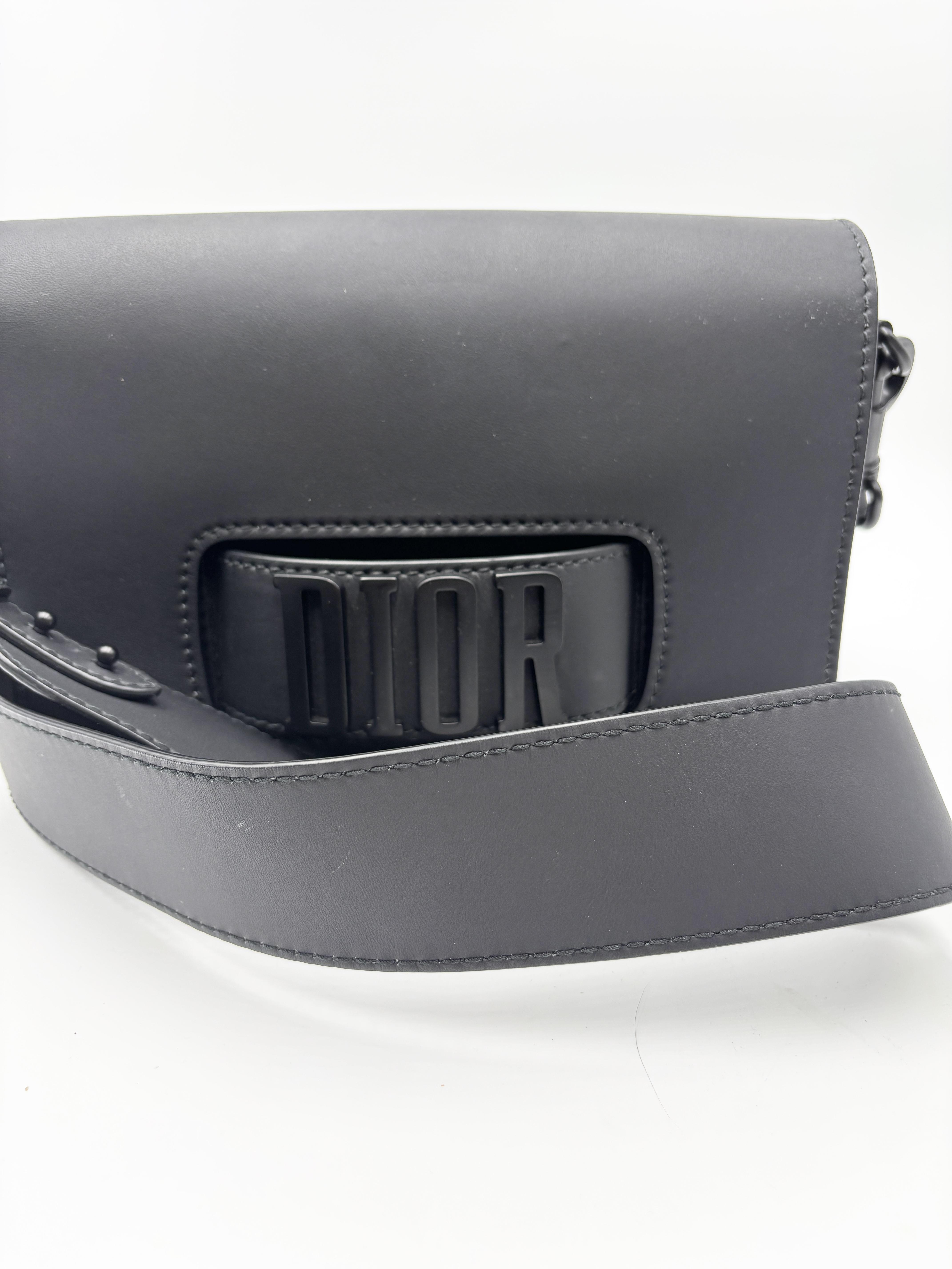 DIOR borsa a tracolla Dio(r)evolution in pelle nera opaca con hardware nero.