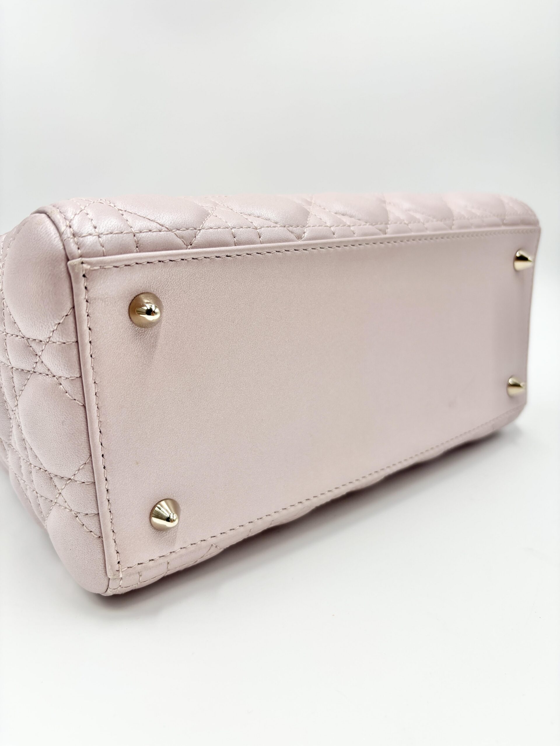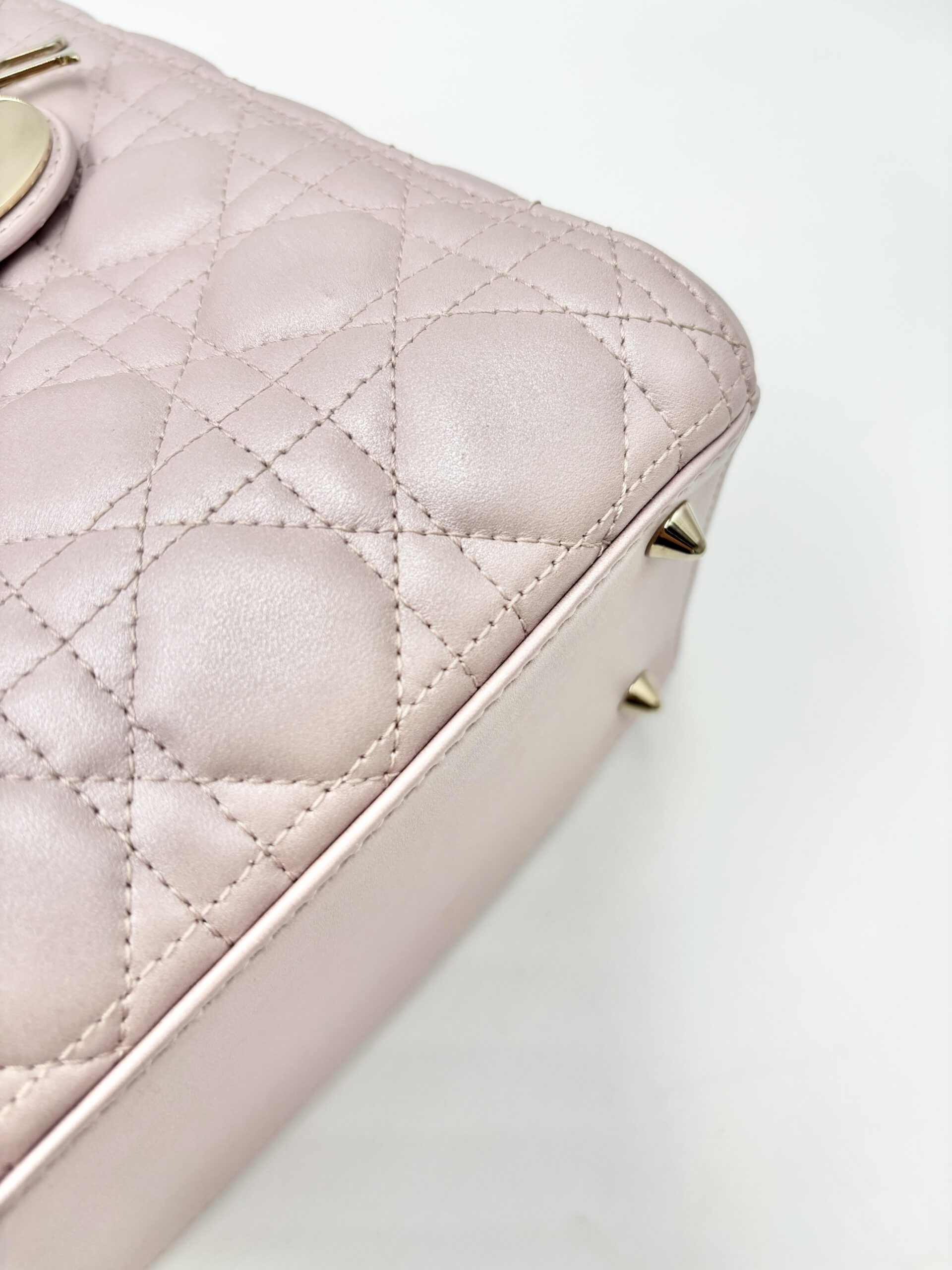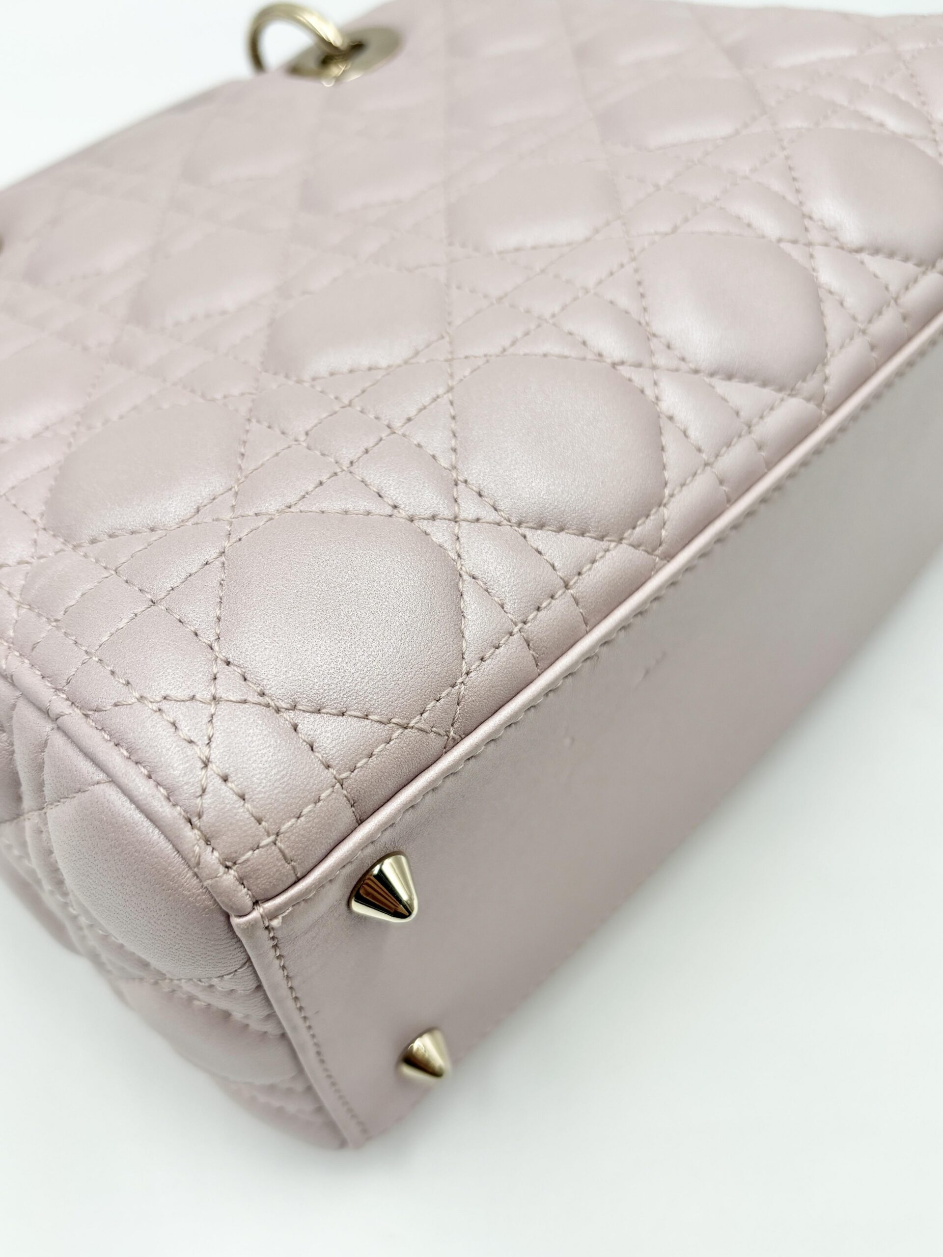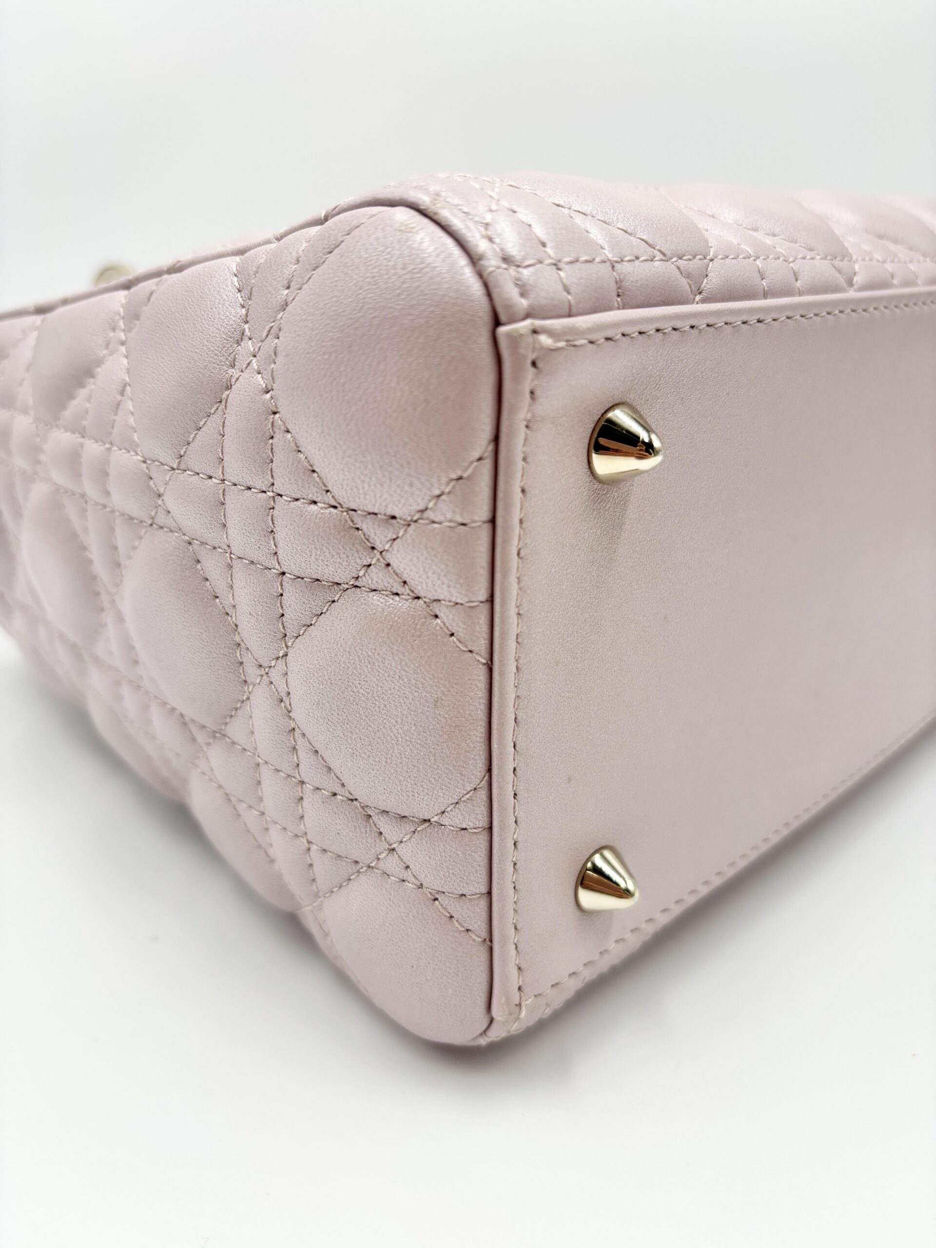 DIOR Lady medium in pelle lavorazione cannage di un bellissimo rosina perlato con hardware light gold