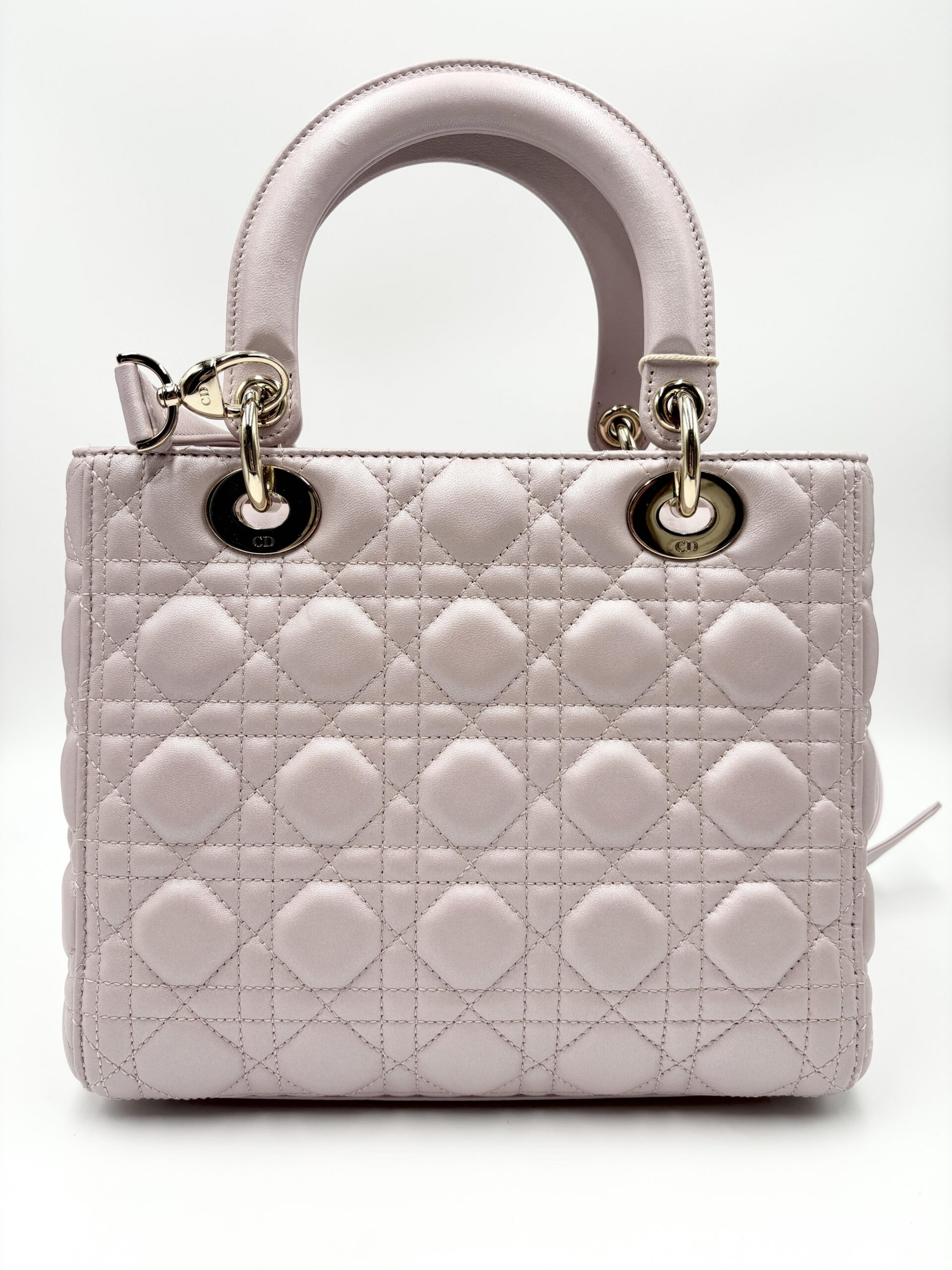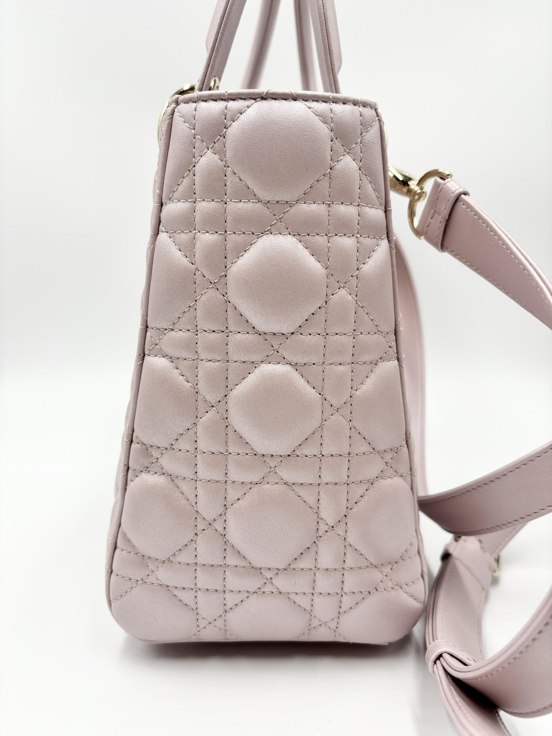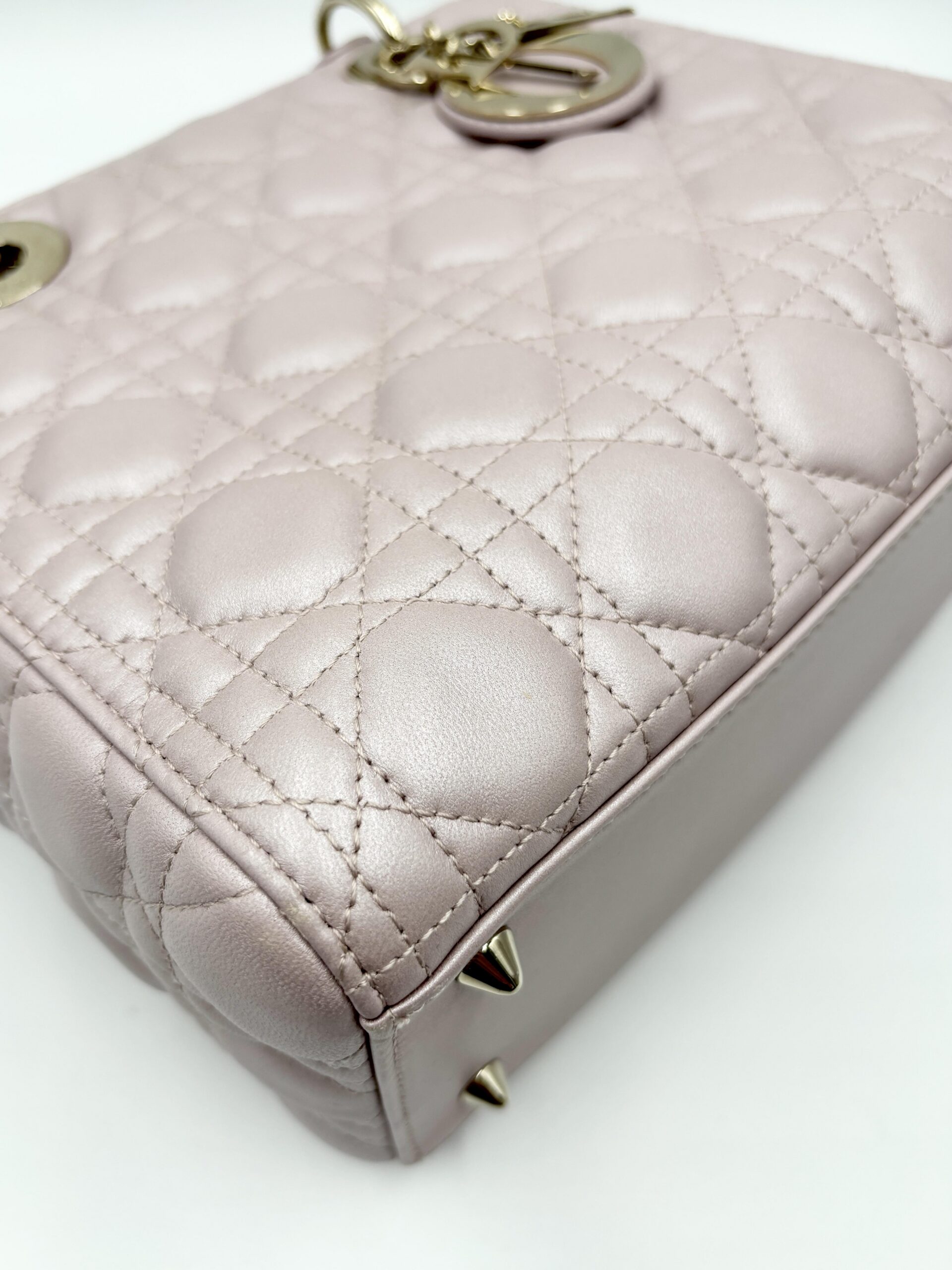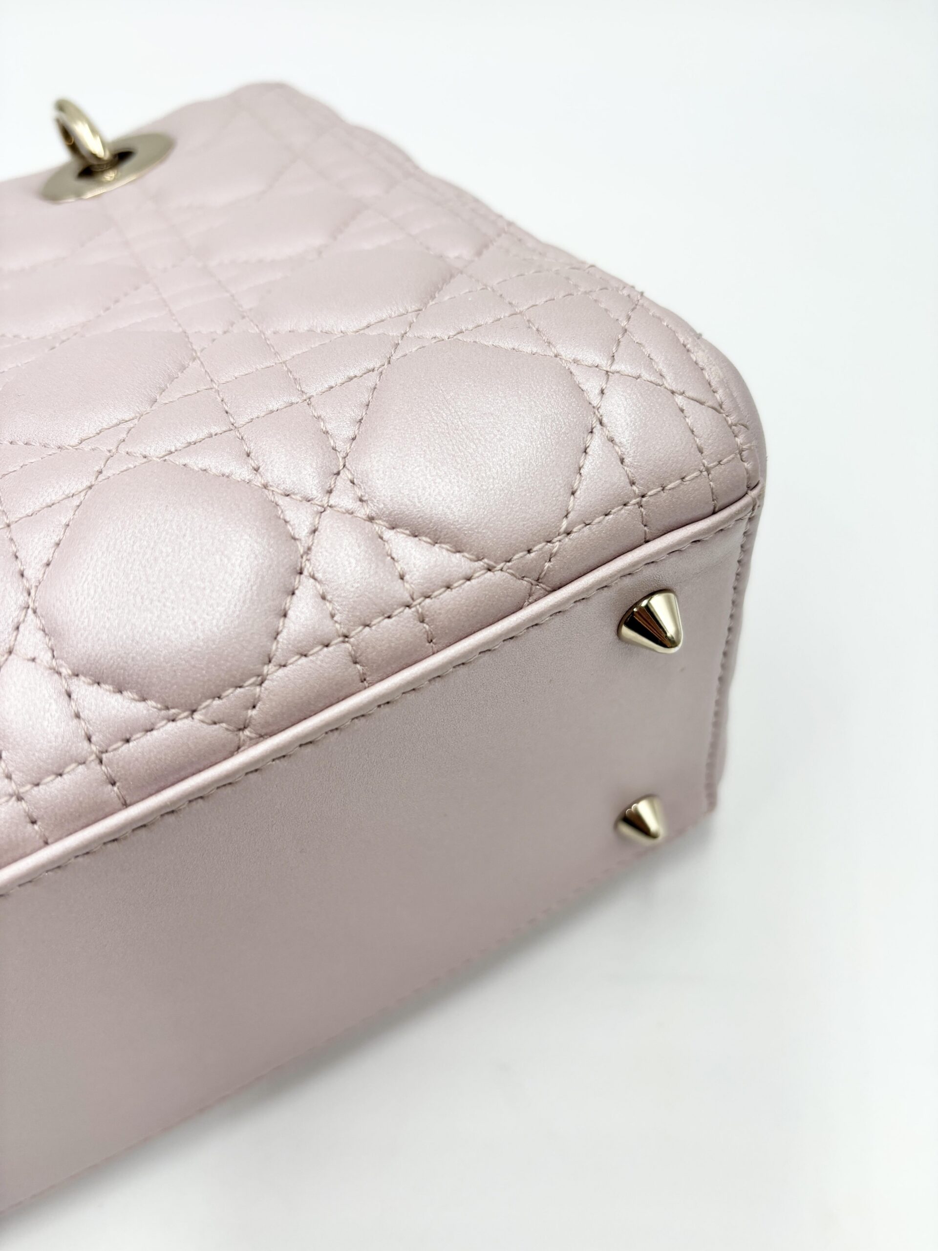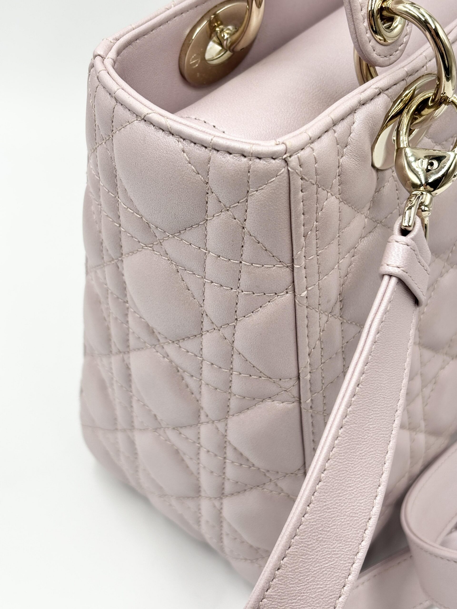 DIOR Lady medium in pelle lavorazione cannage di un bellissimo rosina perlato con hardware light gold