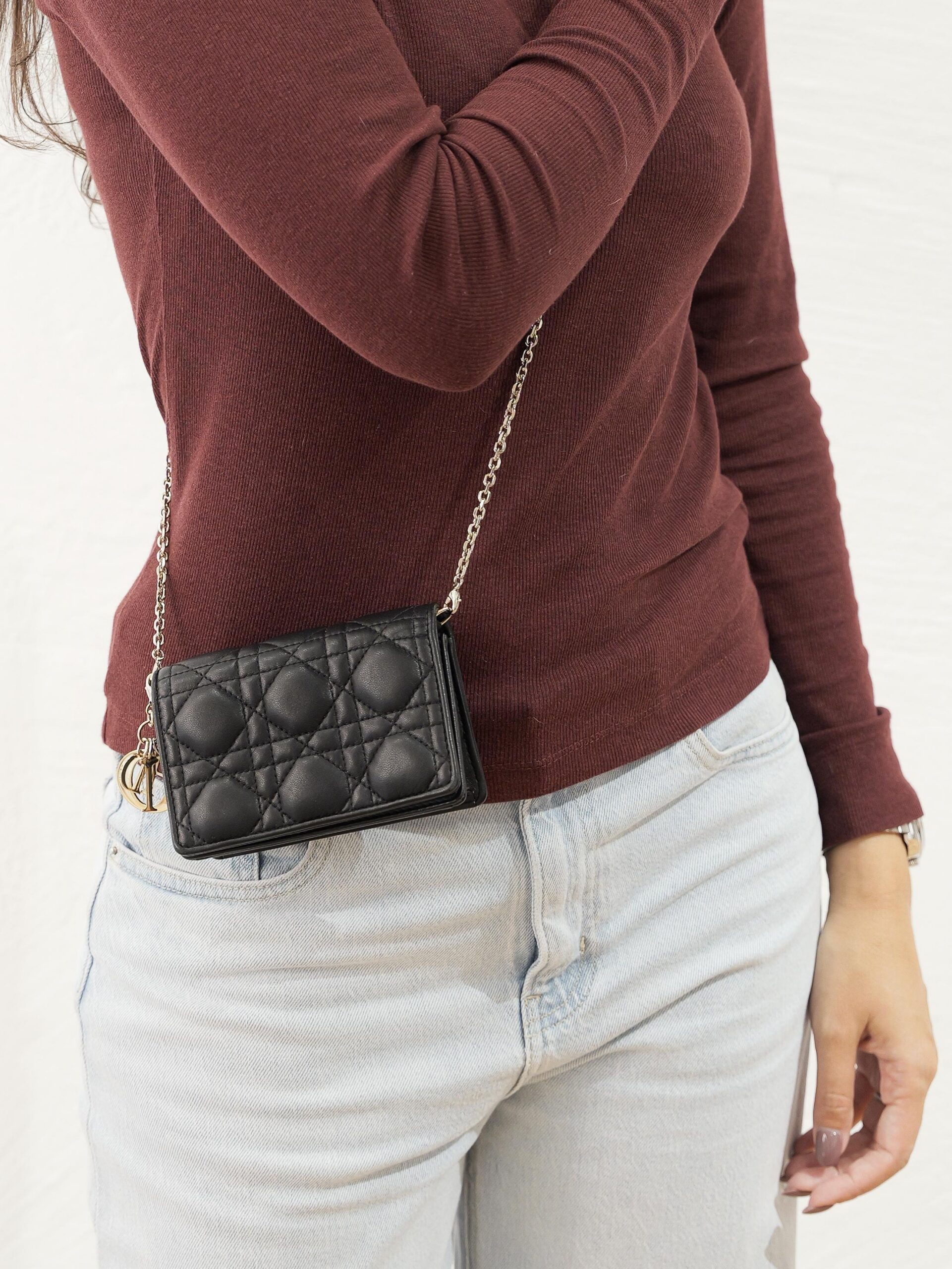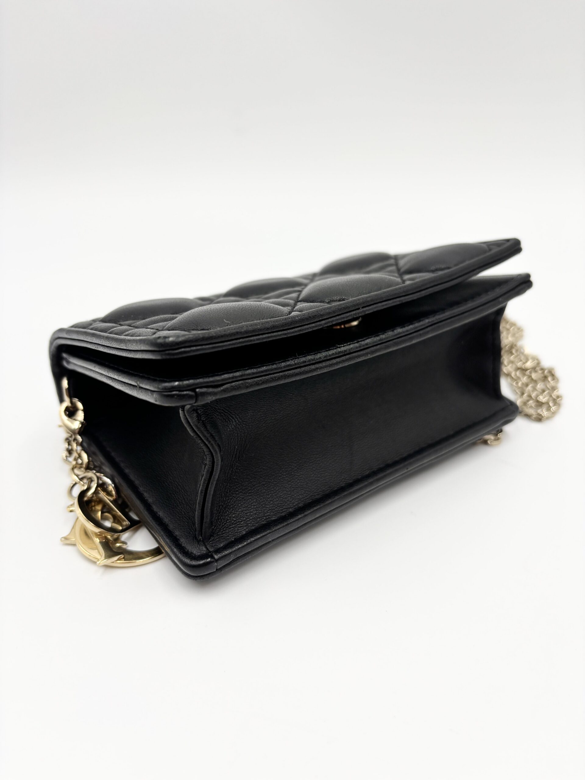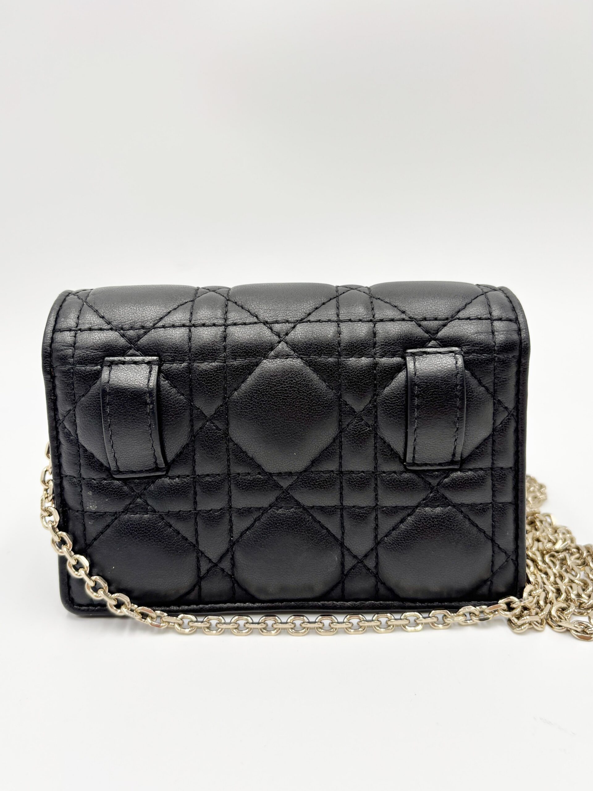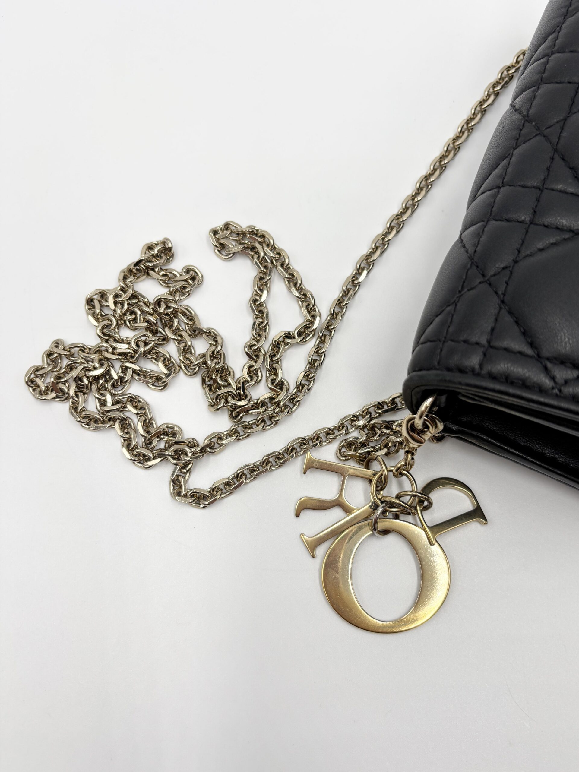DIOR mini tracolla in pelle trapuntata cannage nera con catena