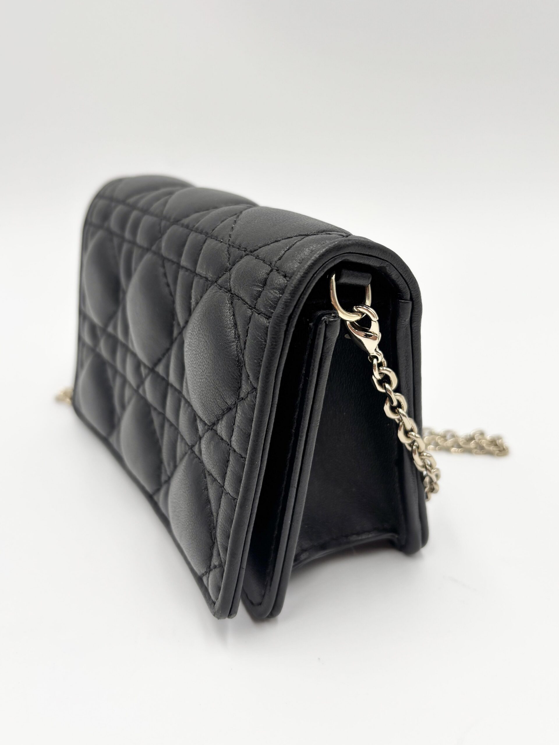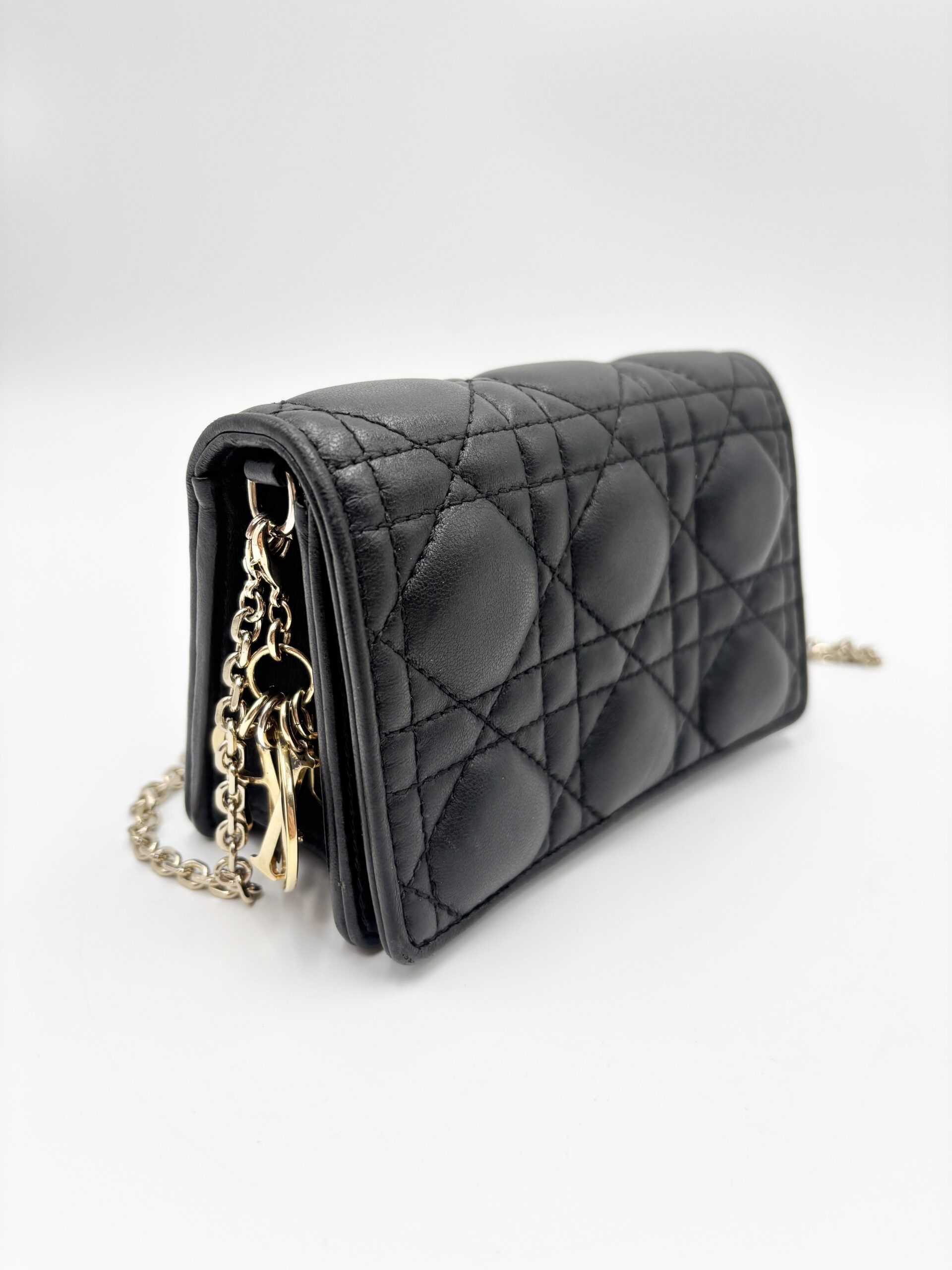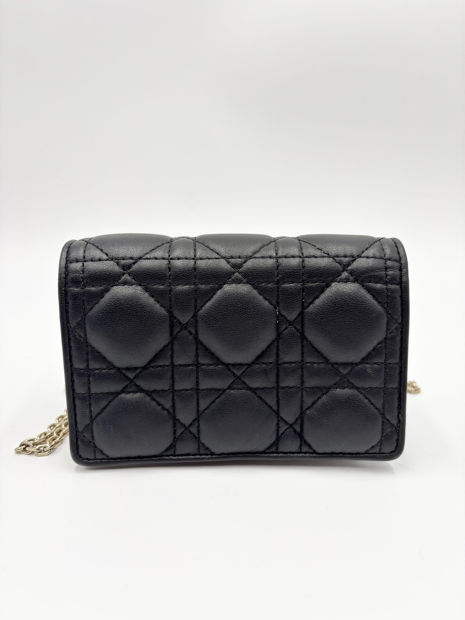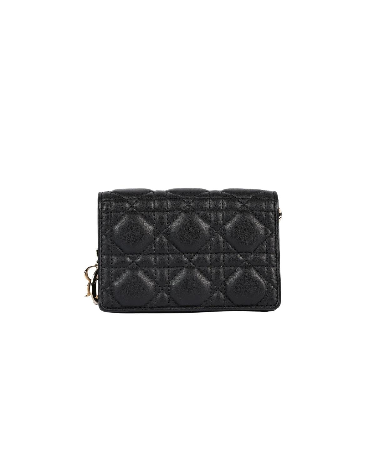 DIOR mini tracolla in pelle trapuntata cannage nera con catena