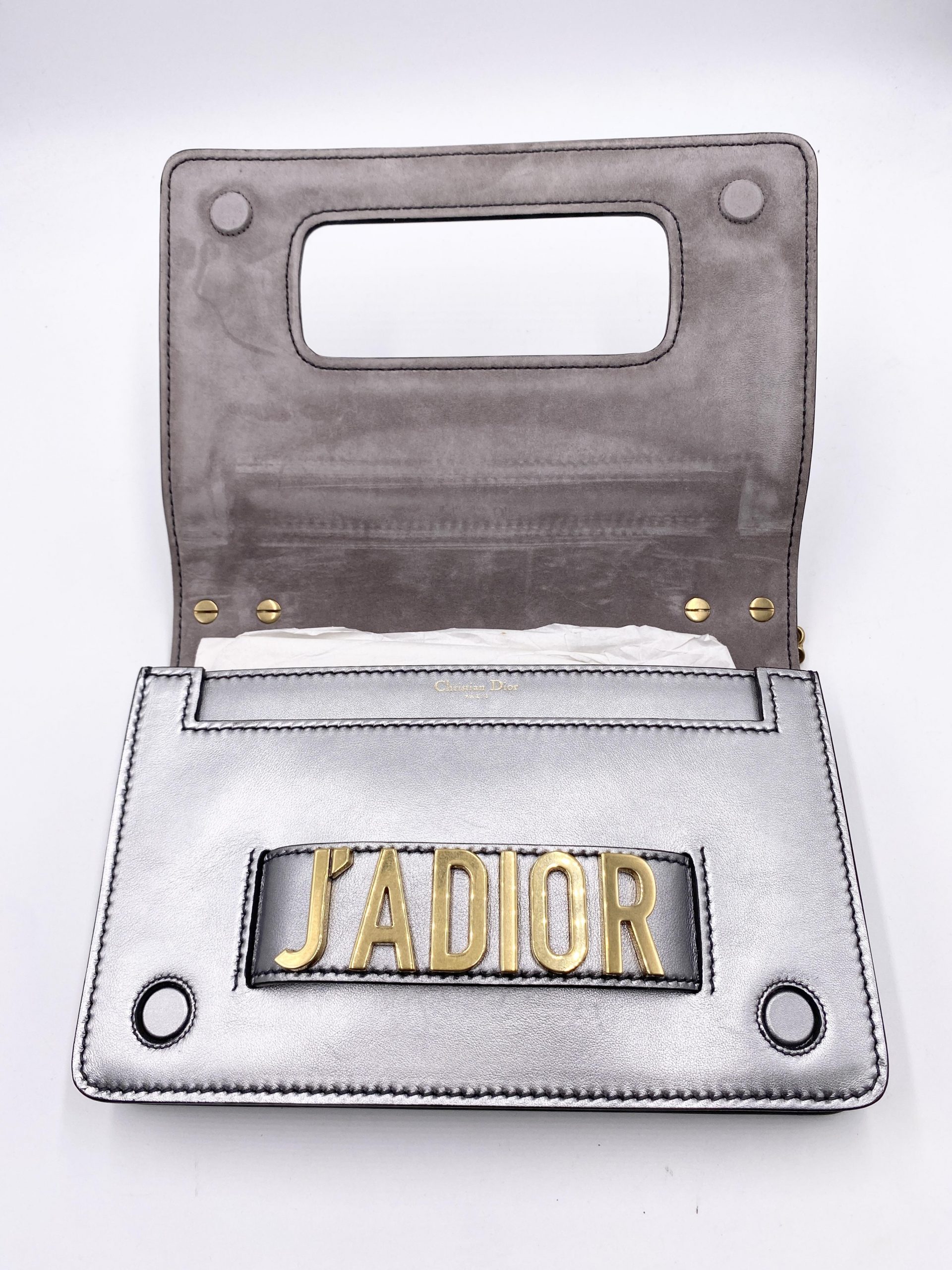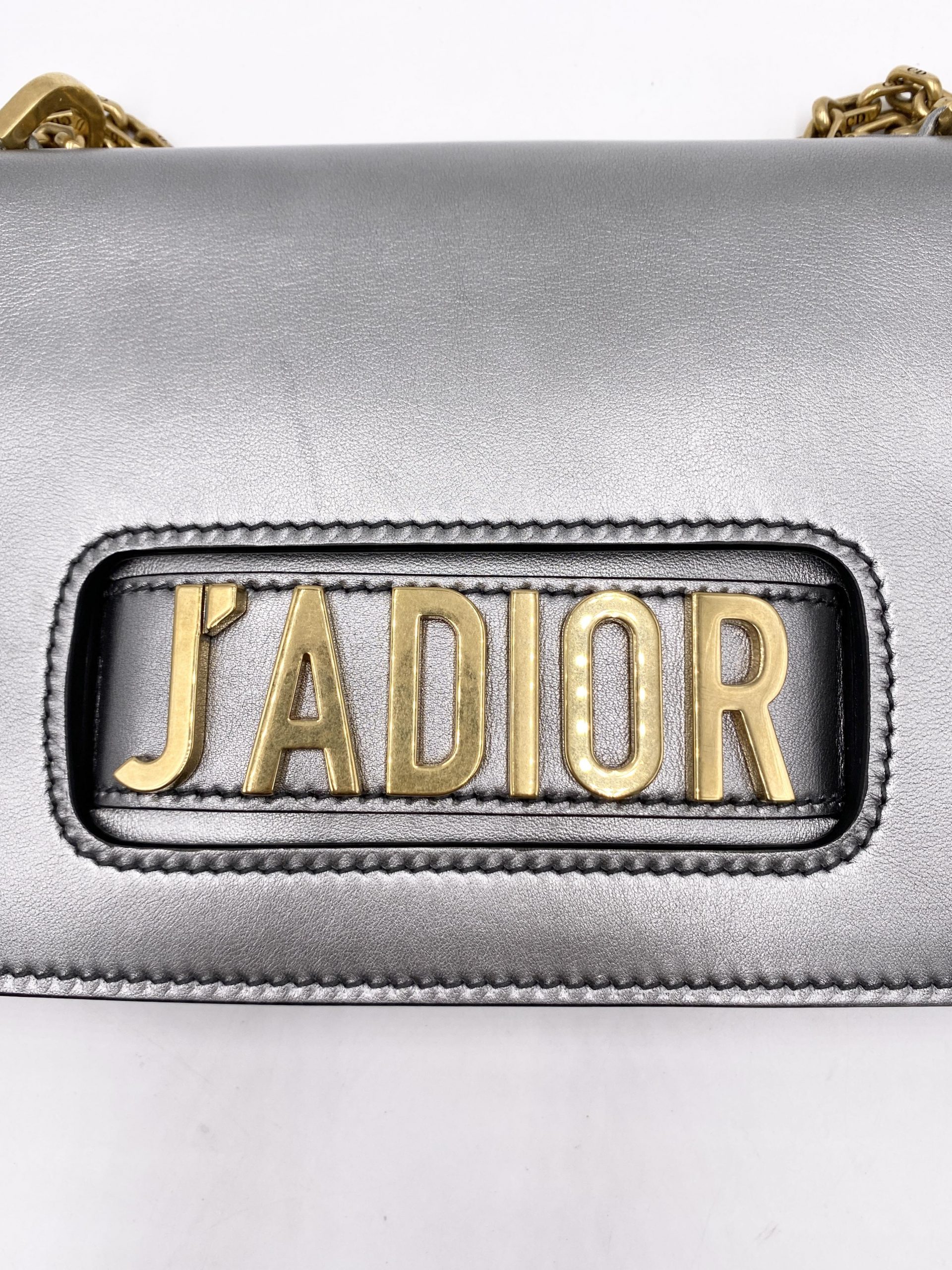 DIOR tracolla in pelle argento scuro “j’adiore”.