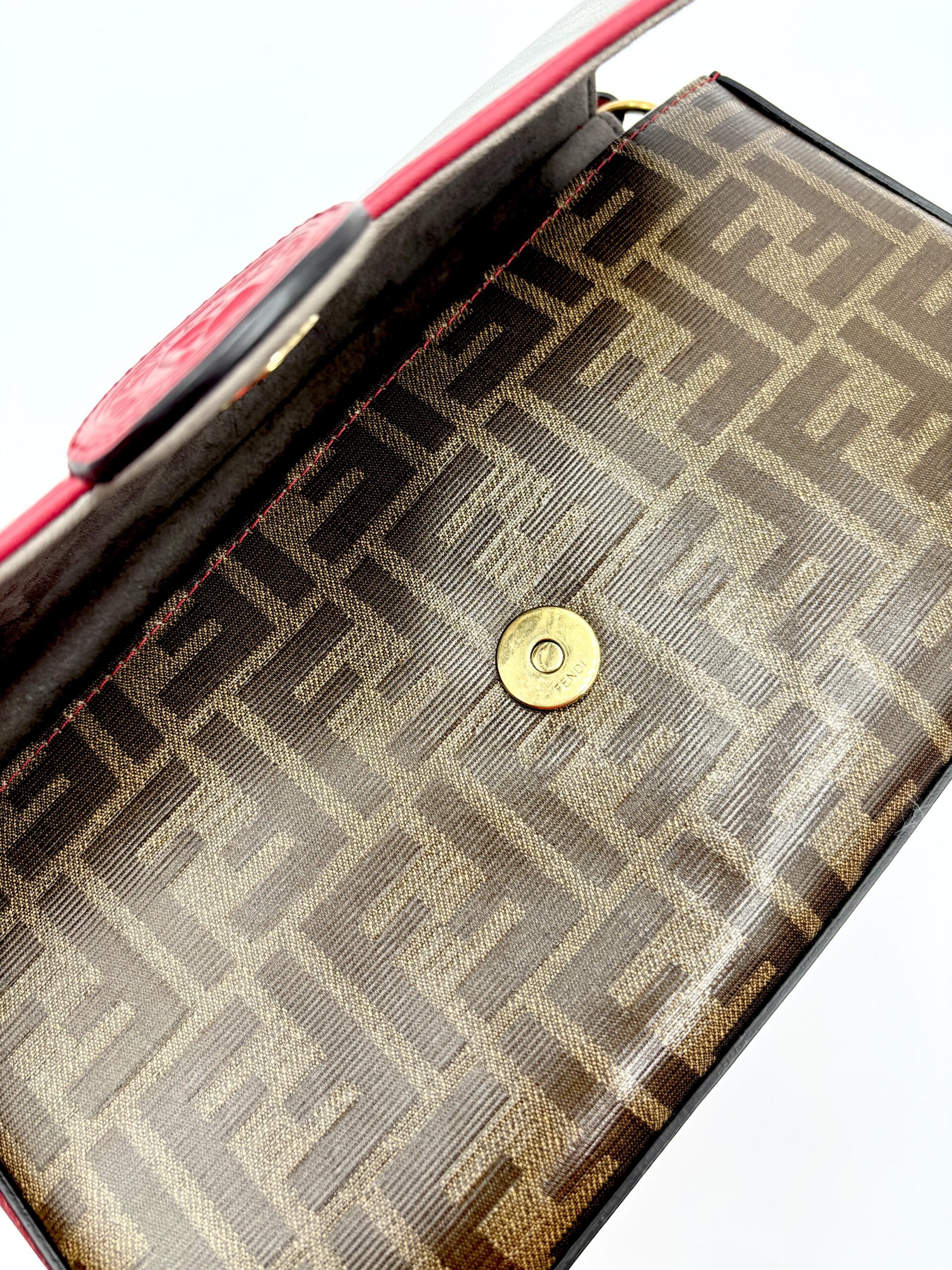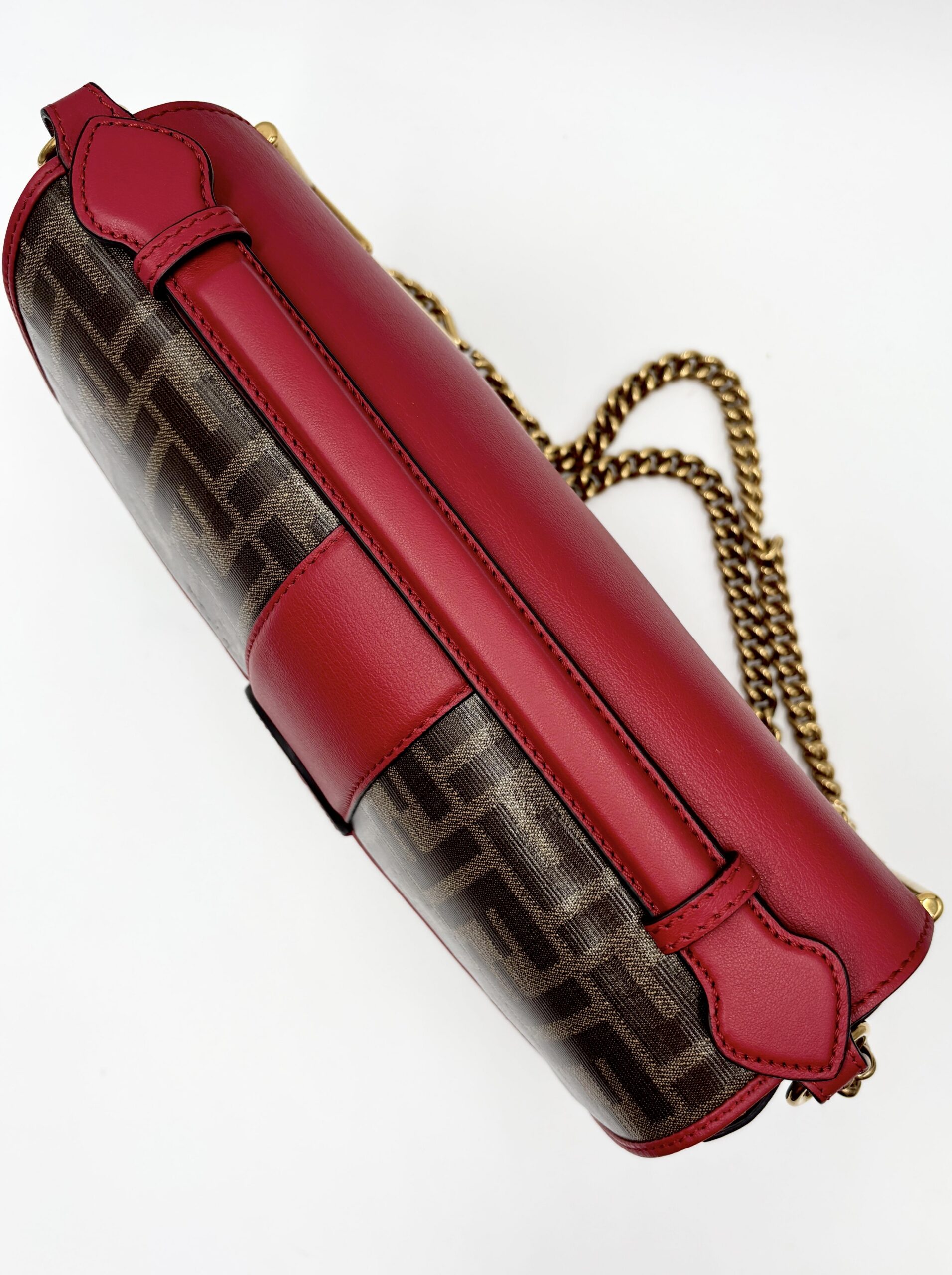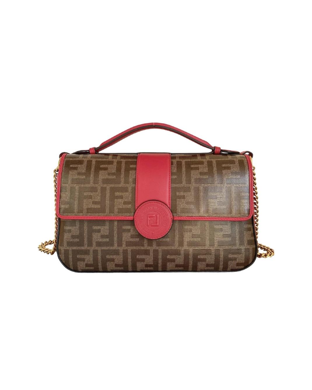 FENDI Double F in tessuto zucca e pelle rossa
