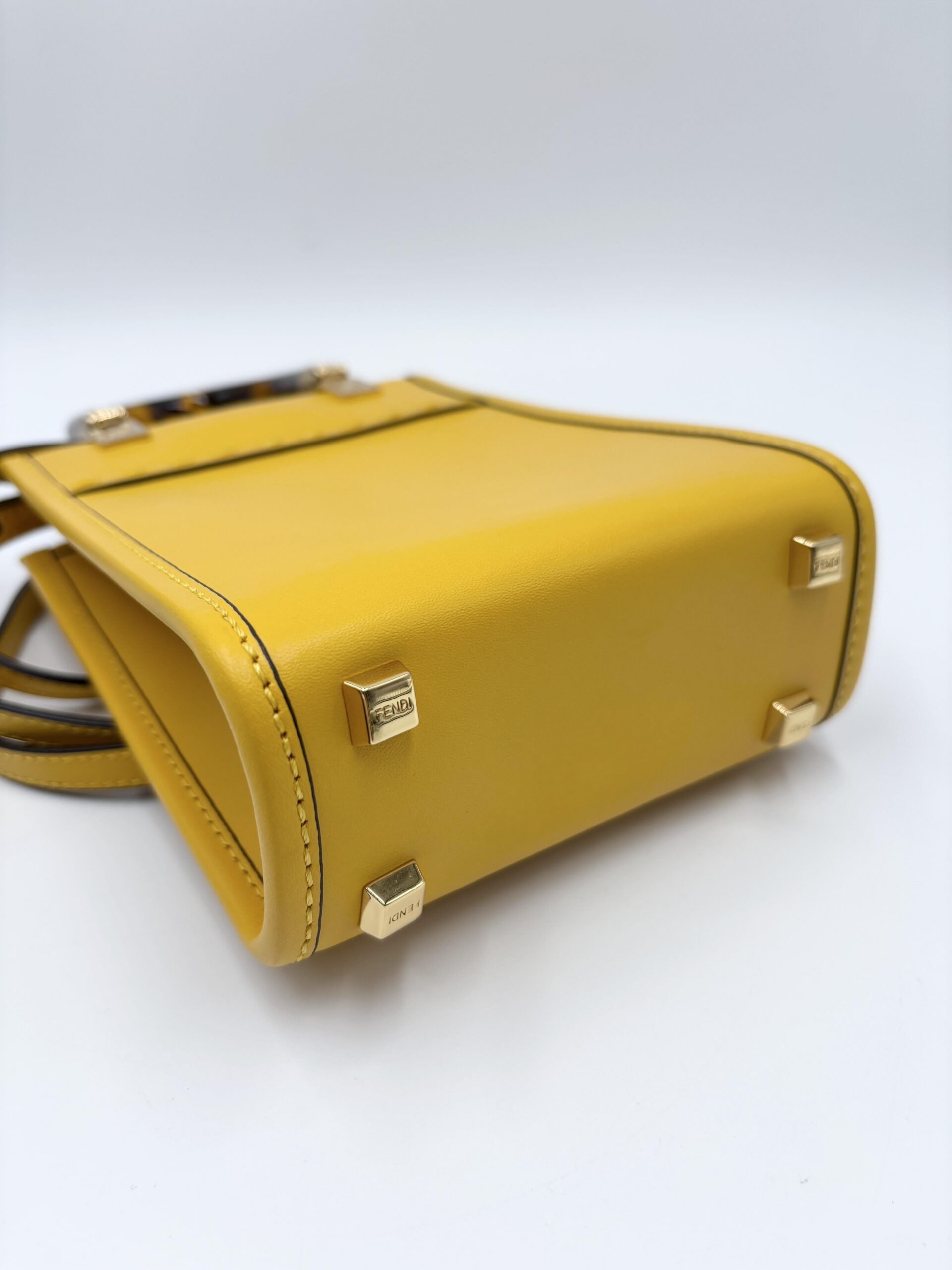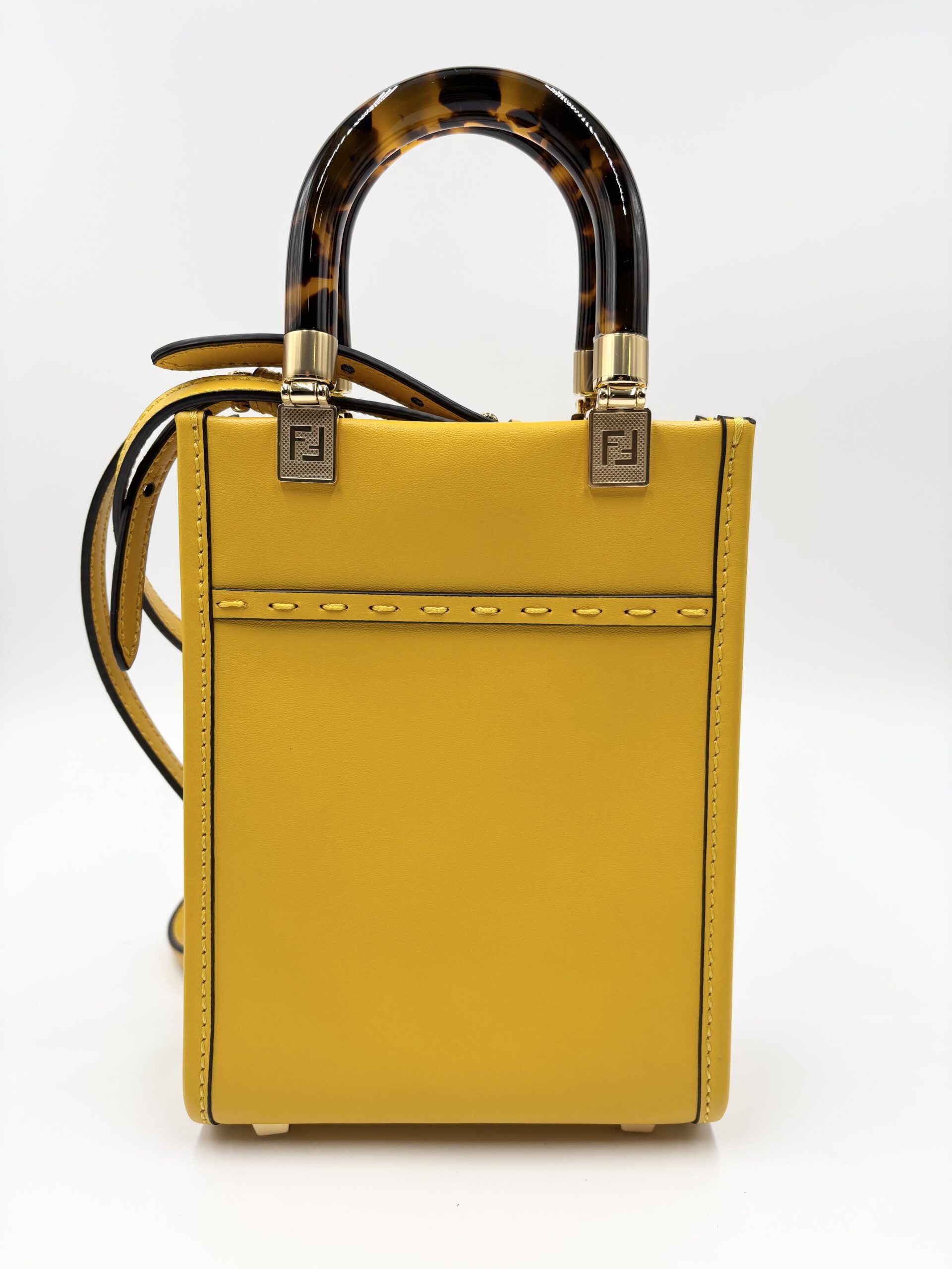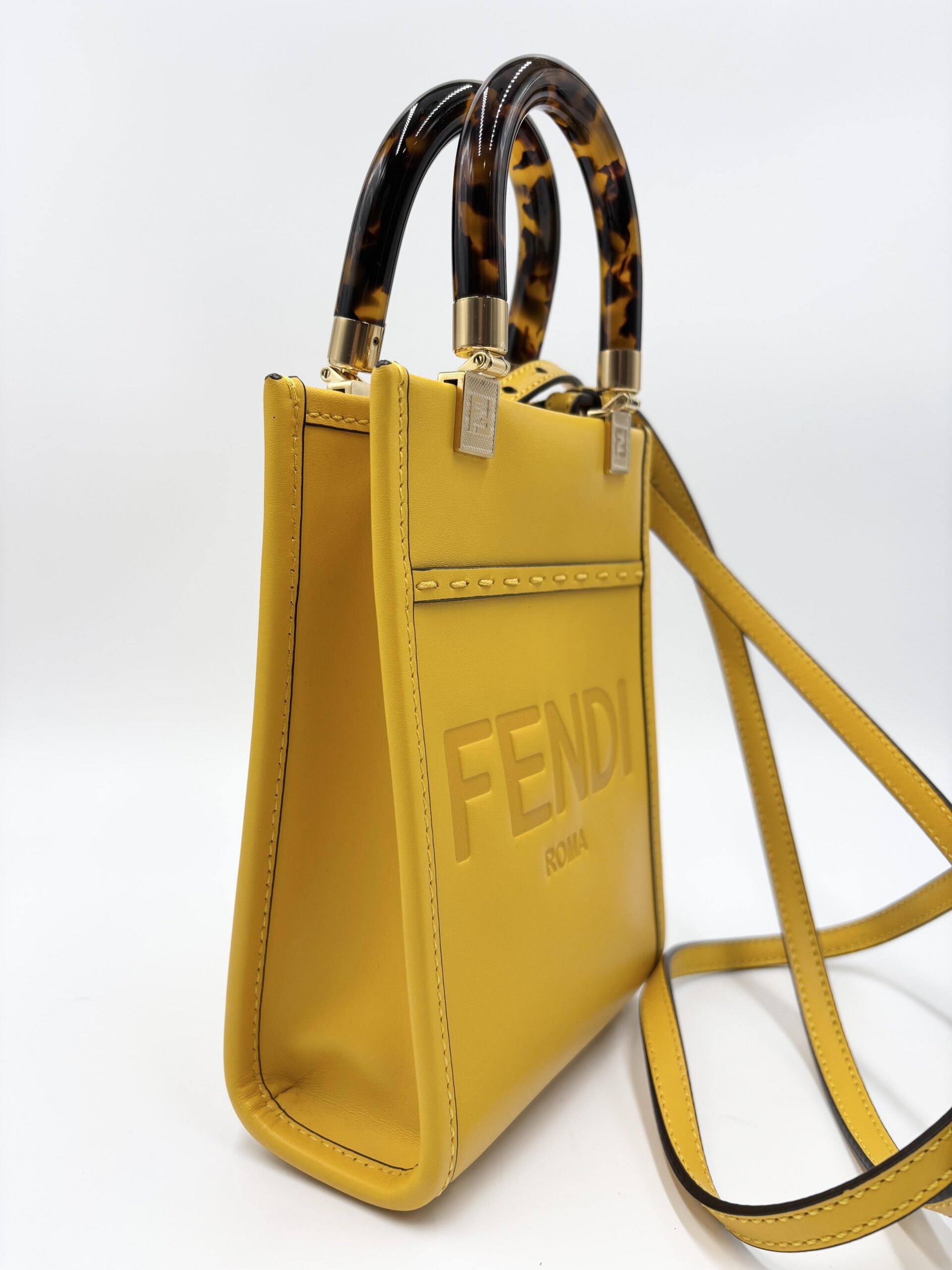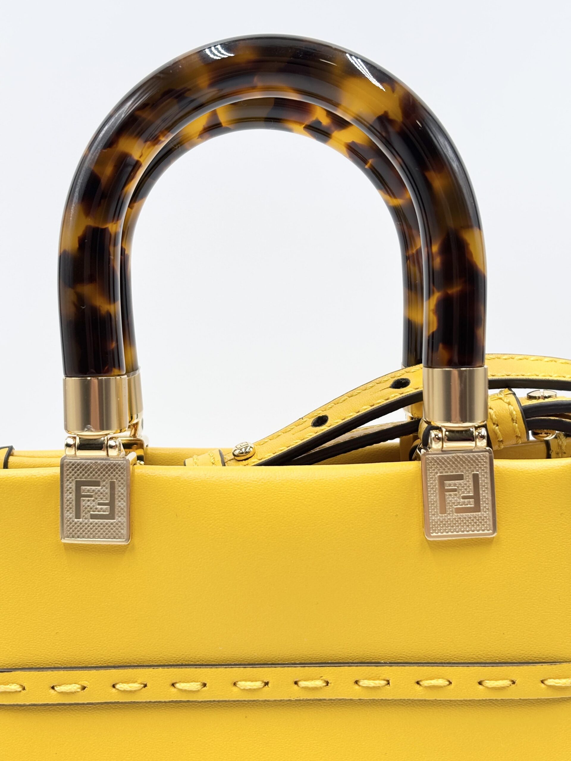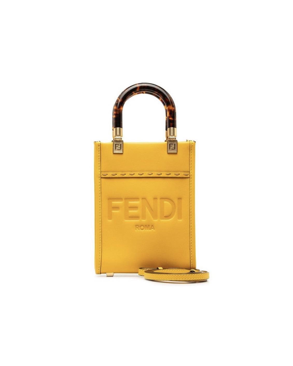 FENDI mini Sunshine shopping in pelle gialla con manici in resina e tracolla in pelle