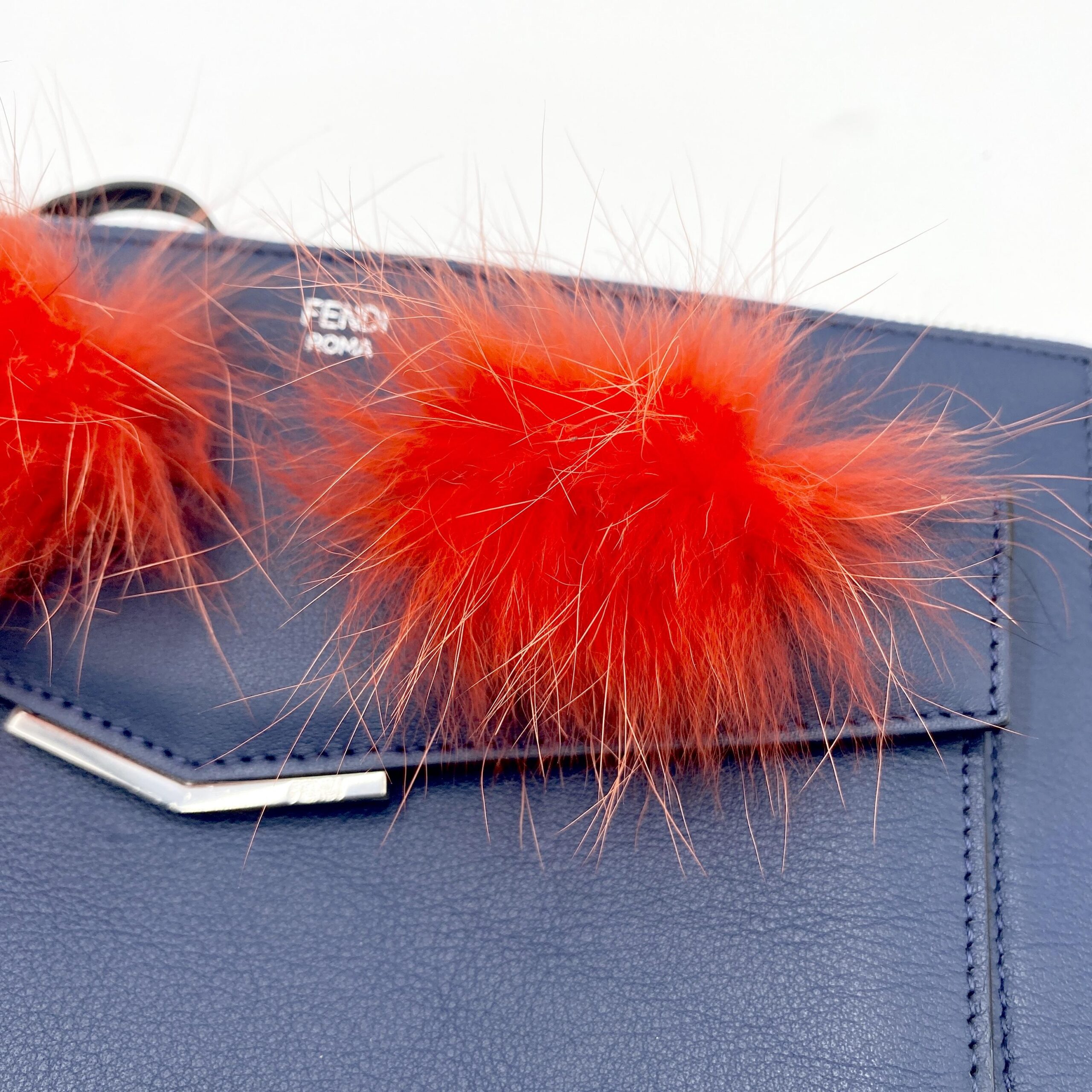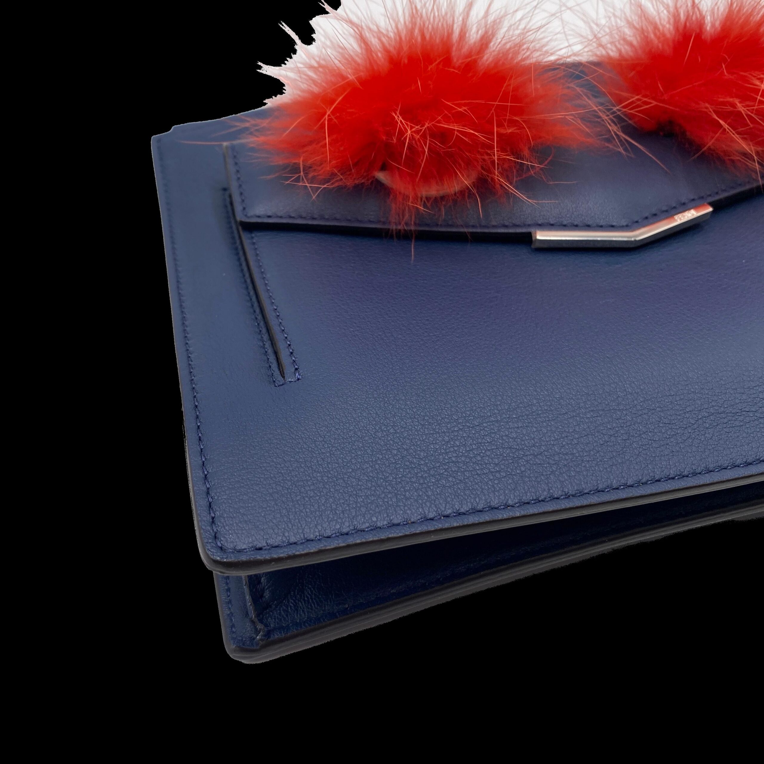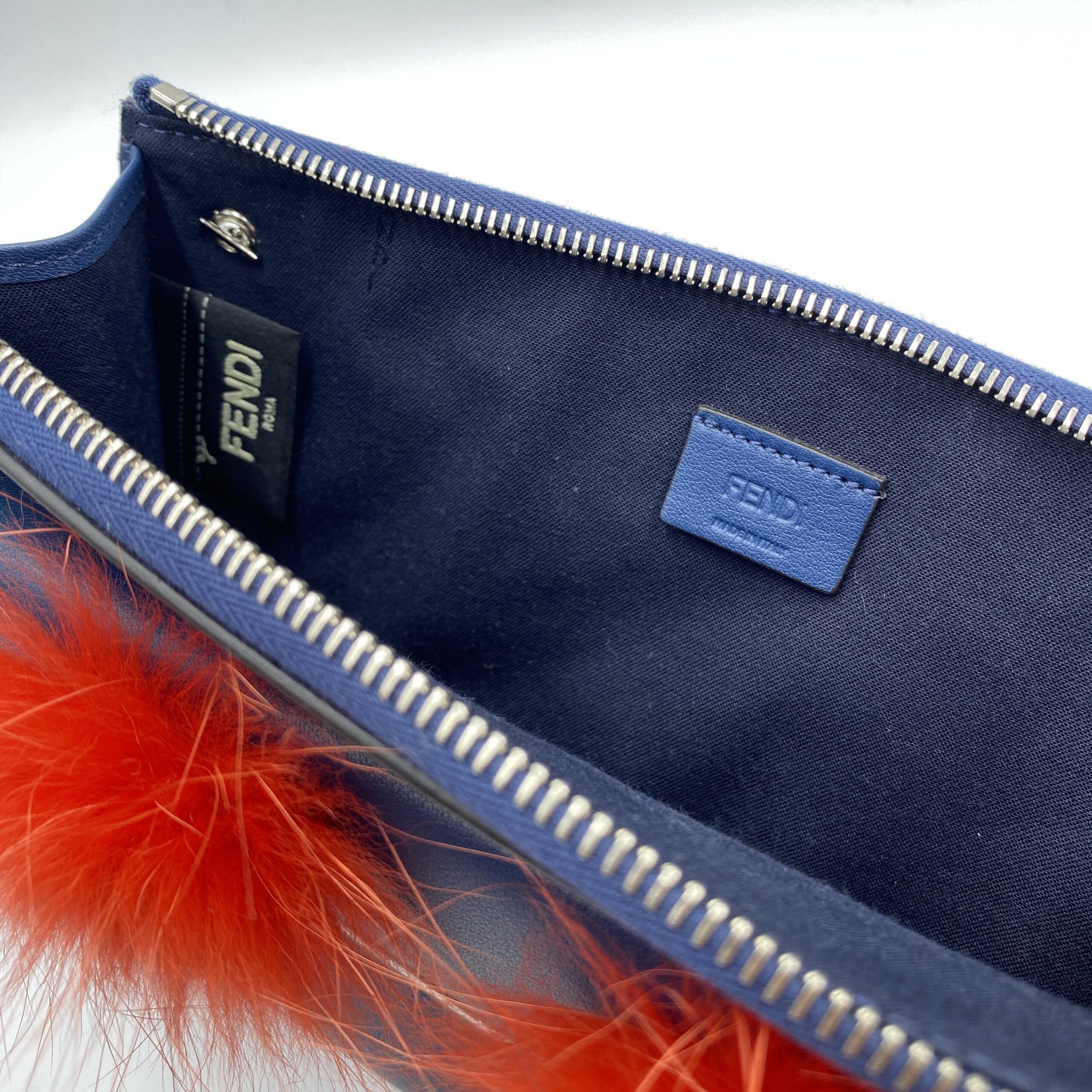 Fendi tracolla linea Monster in pelle blu con applicazioni in visone rosso con hardware silver. Misure 24x17cm. Altezza modella 165cm. Le condizioni sono pari al nuovo, nessuna imperfezione da segnalare.