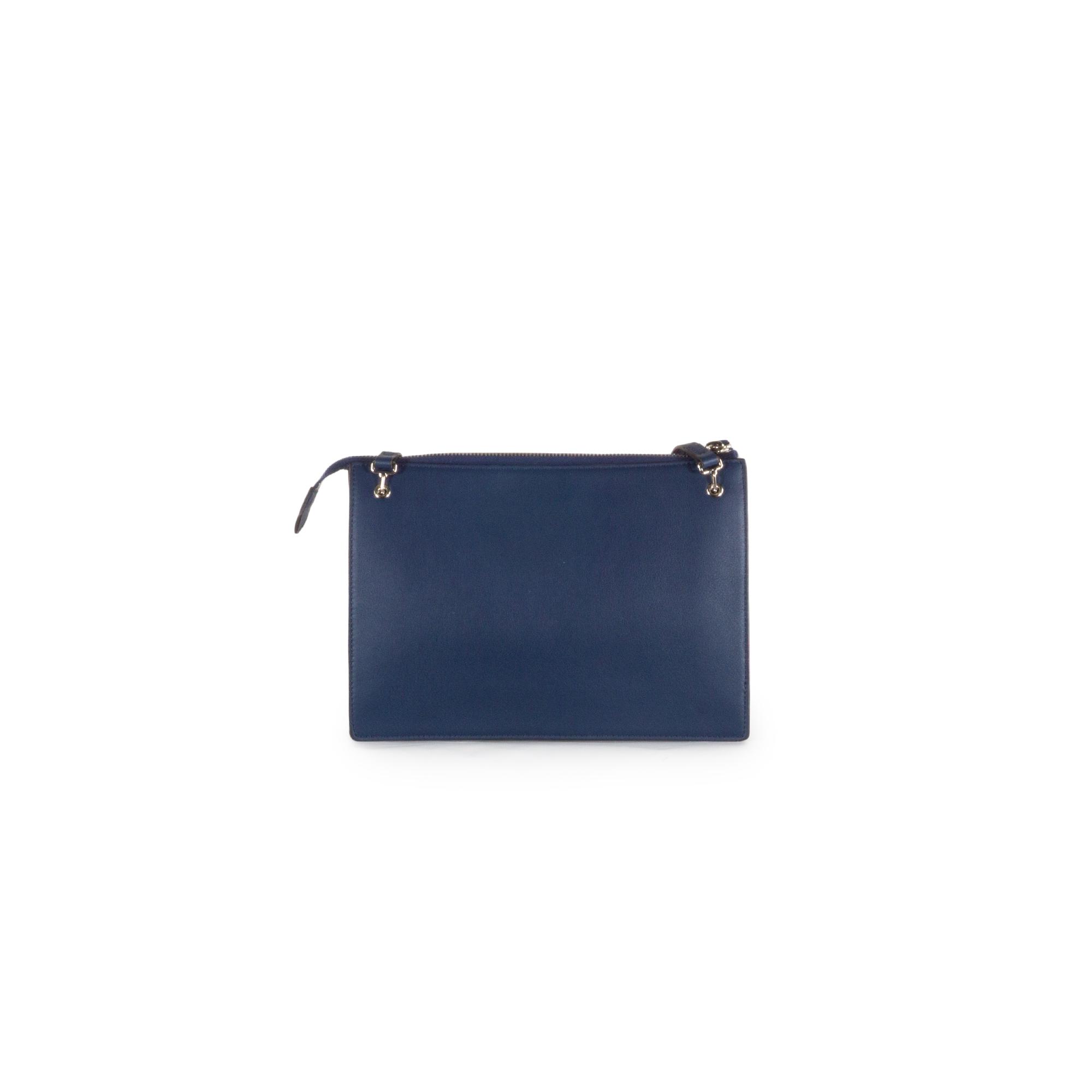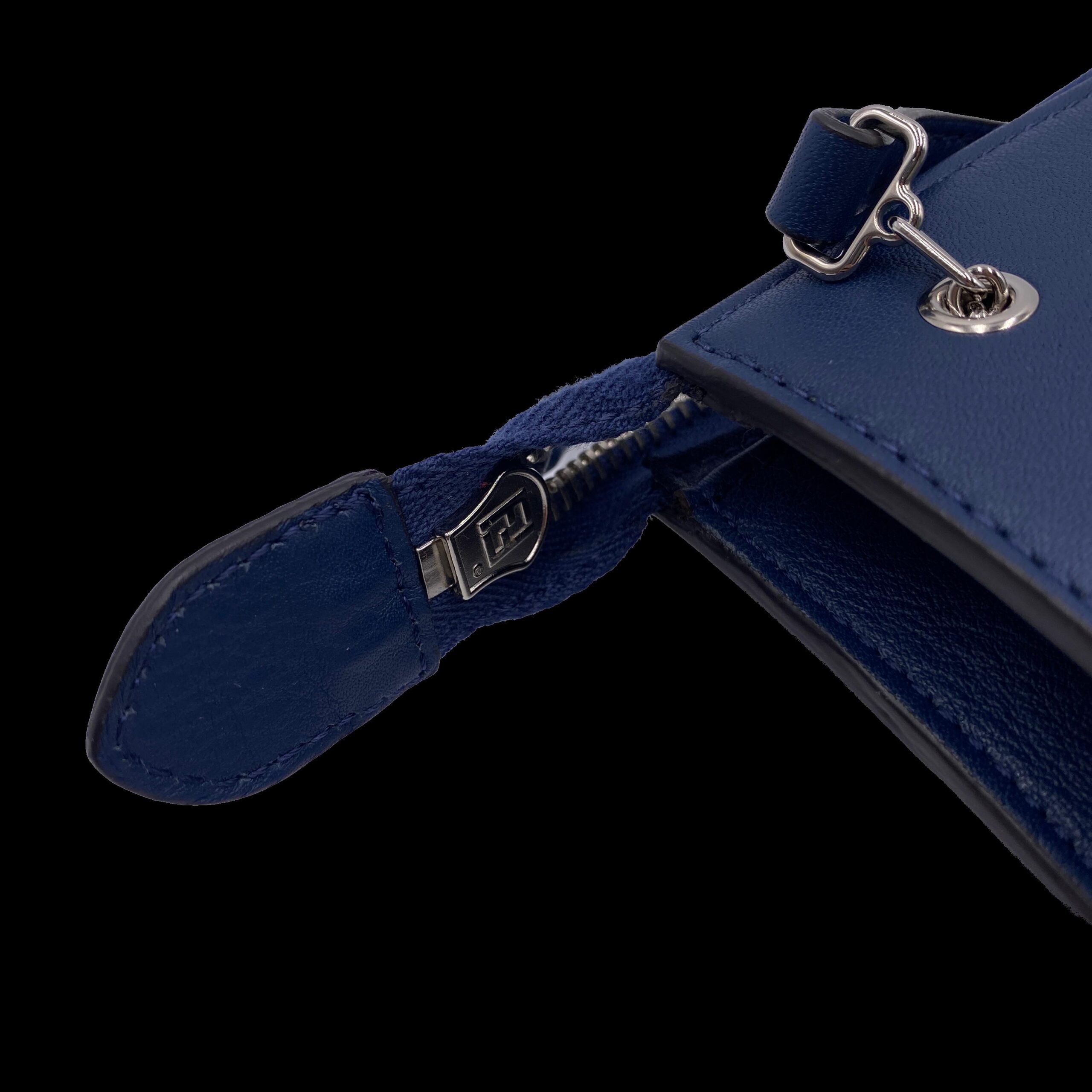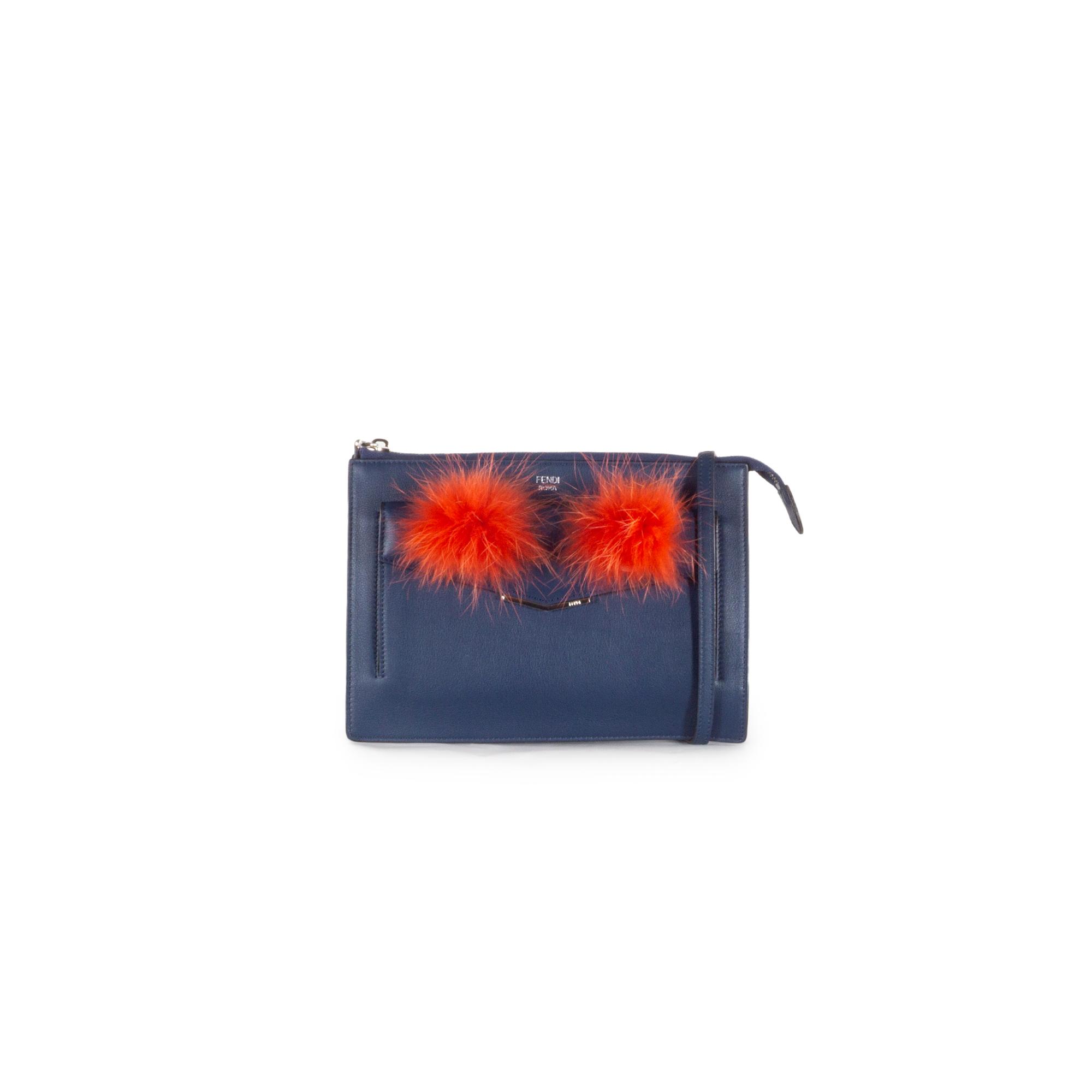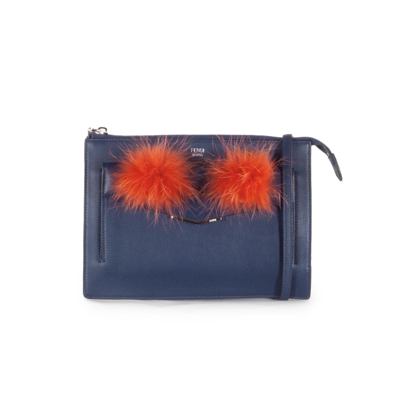 Fendi tracolla linea Monster in pelle blu con applicazioni in visone rosso con hardware silver. Misure 24x17cm. Altezza modella 165cm. Le condizioni sono pari al nuovo, nessuna imperfezione da segnalare.