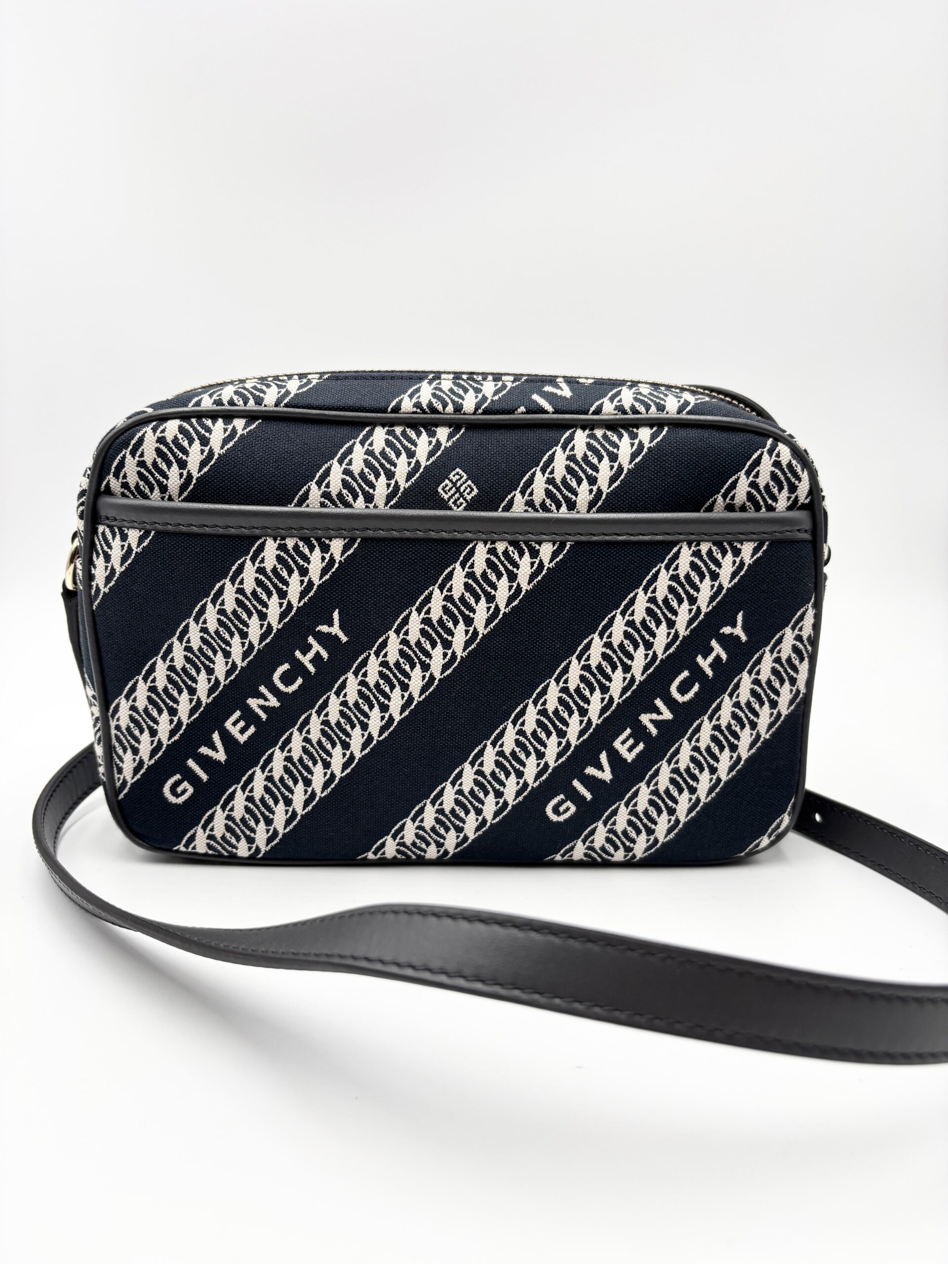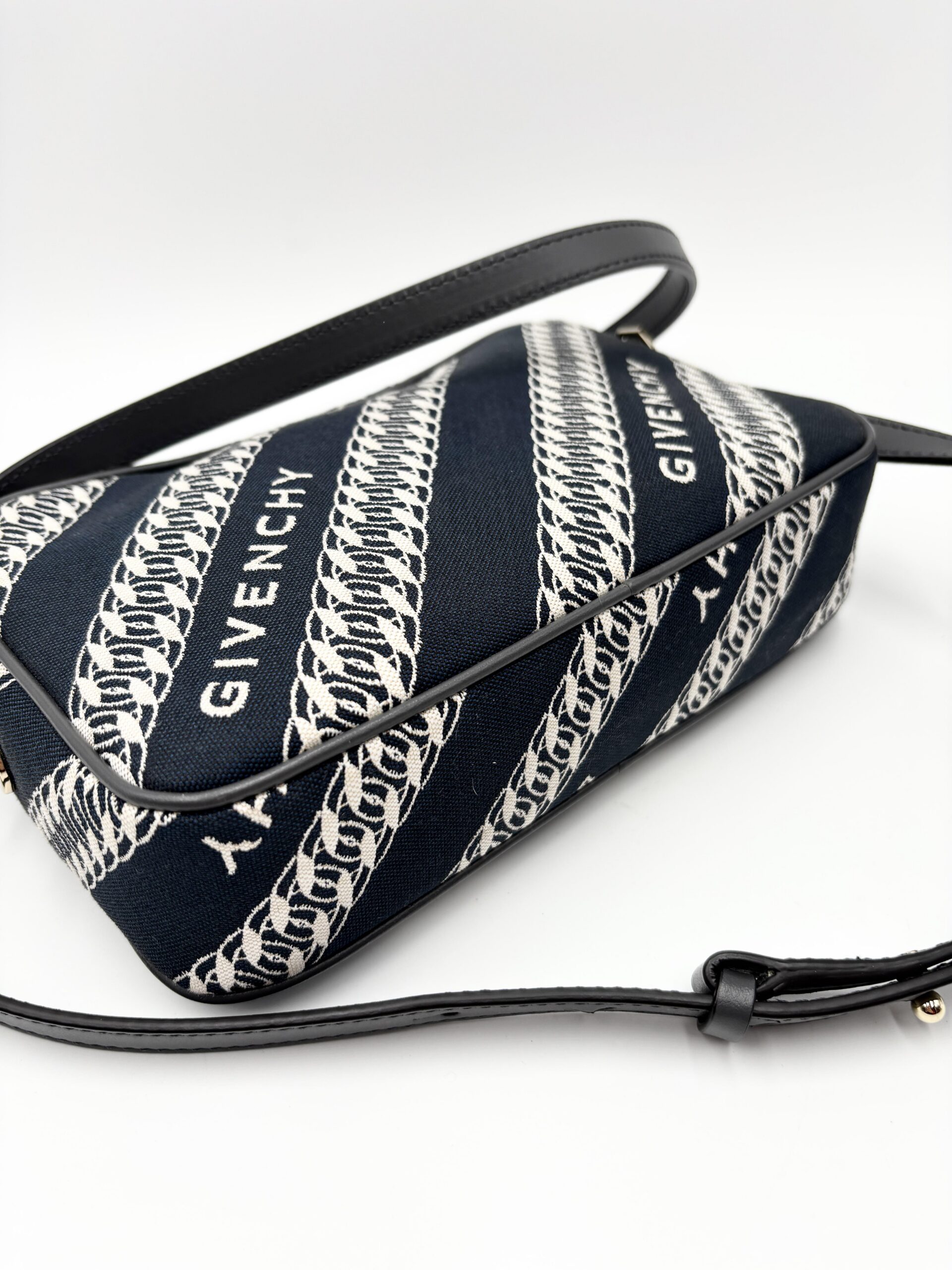 GIVENCHY tracolla Bond Chain in tessuto jacquard blu e avorio con brand