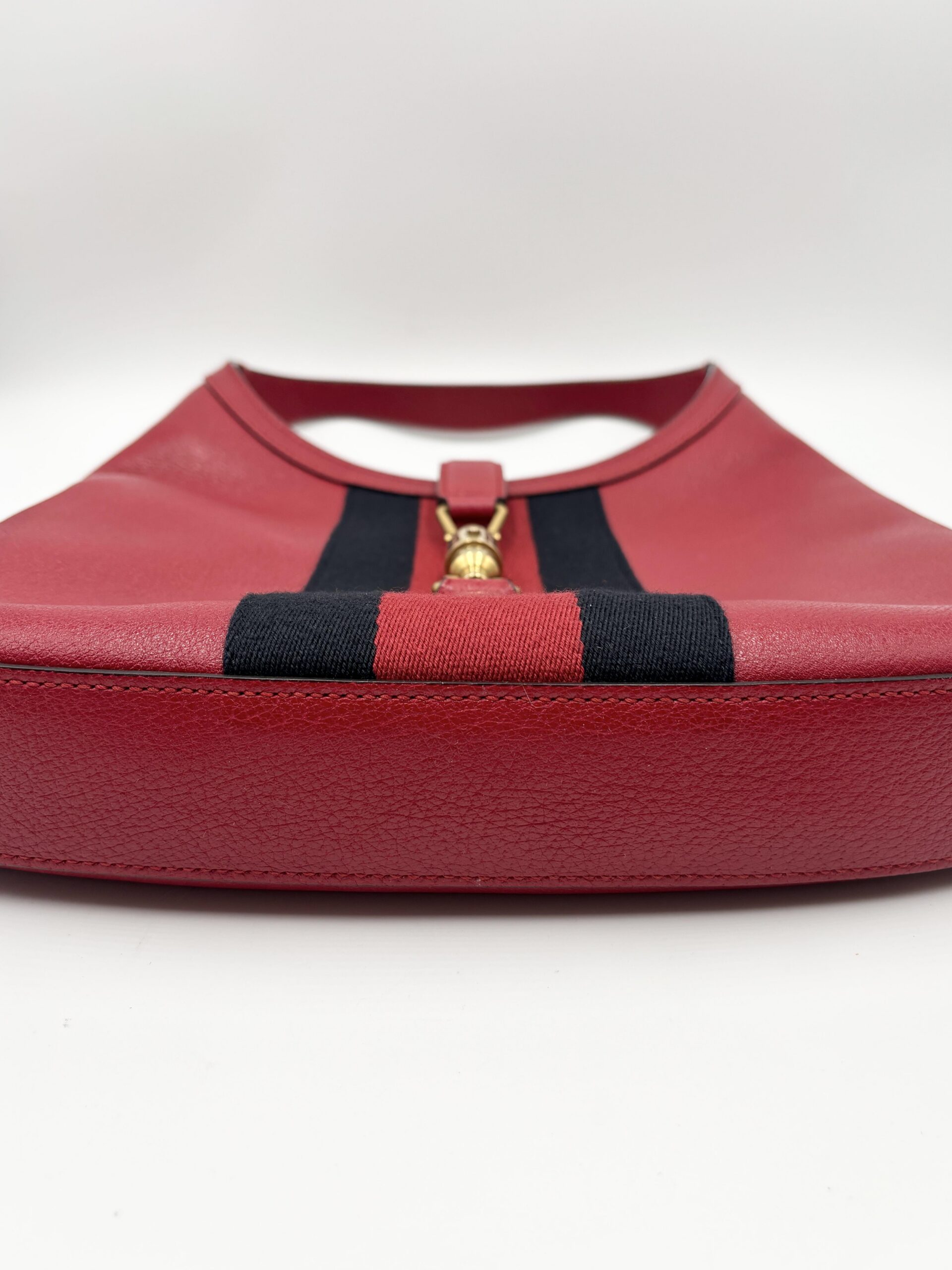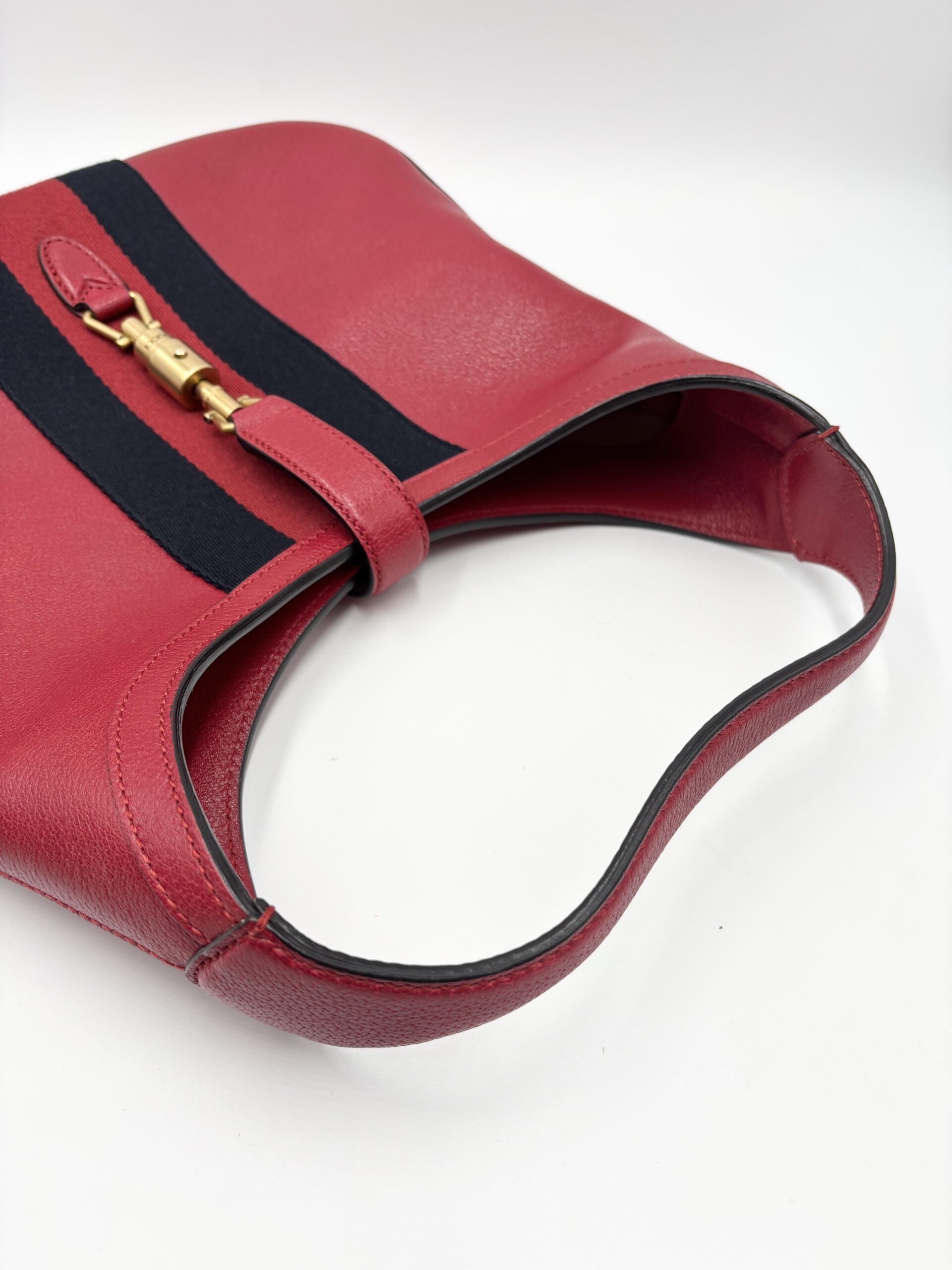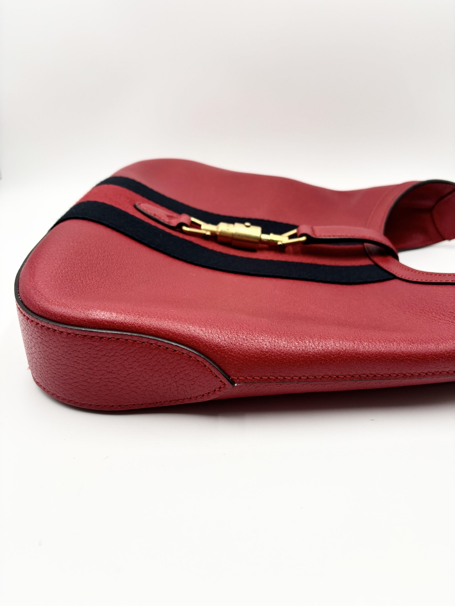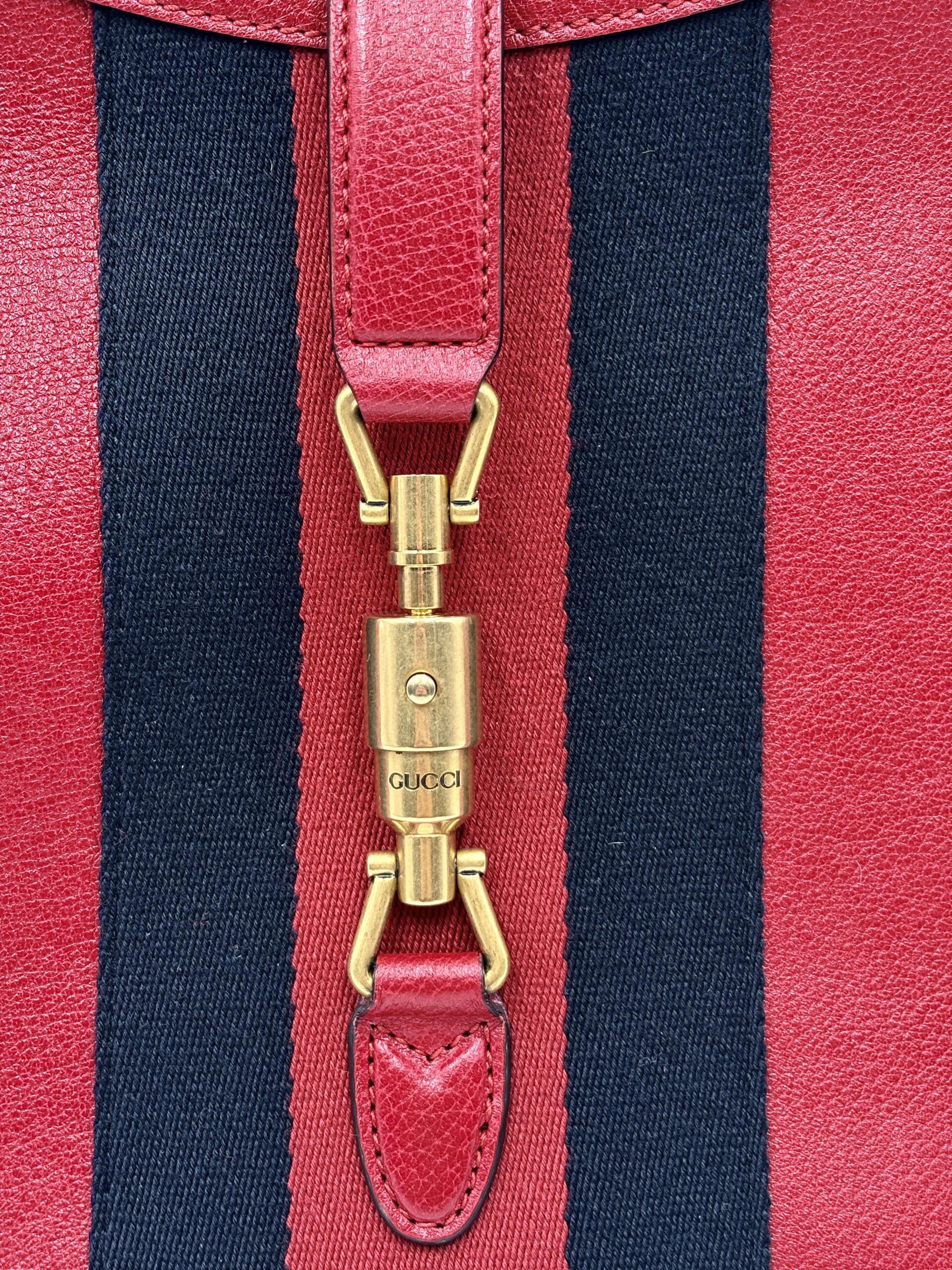 GUCCI mod. Jackie in pelle rossa con fascia centrale blu/rossa/blu e pochette interna