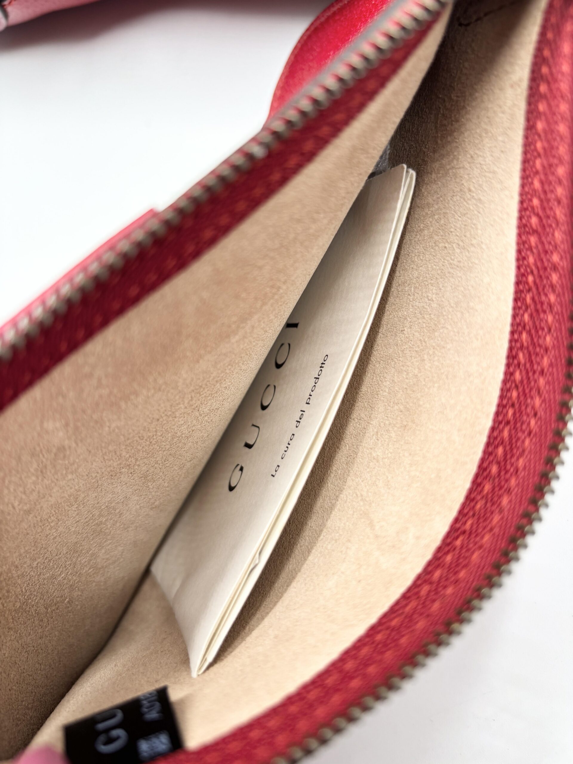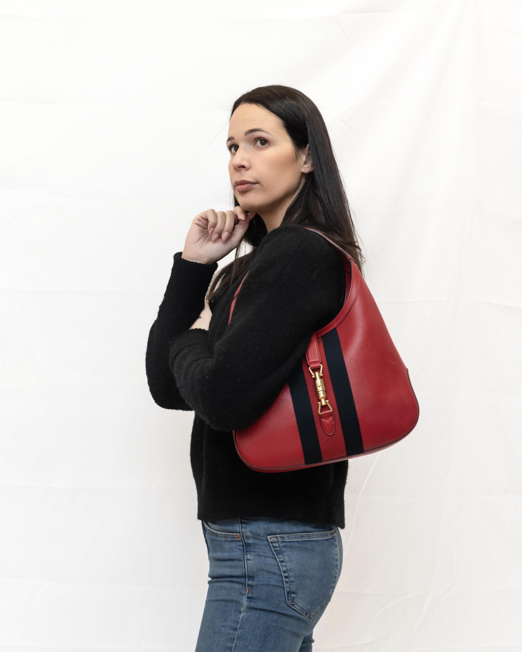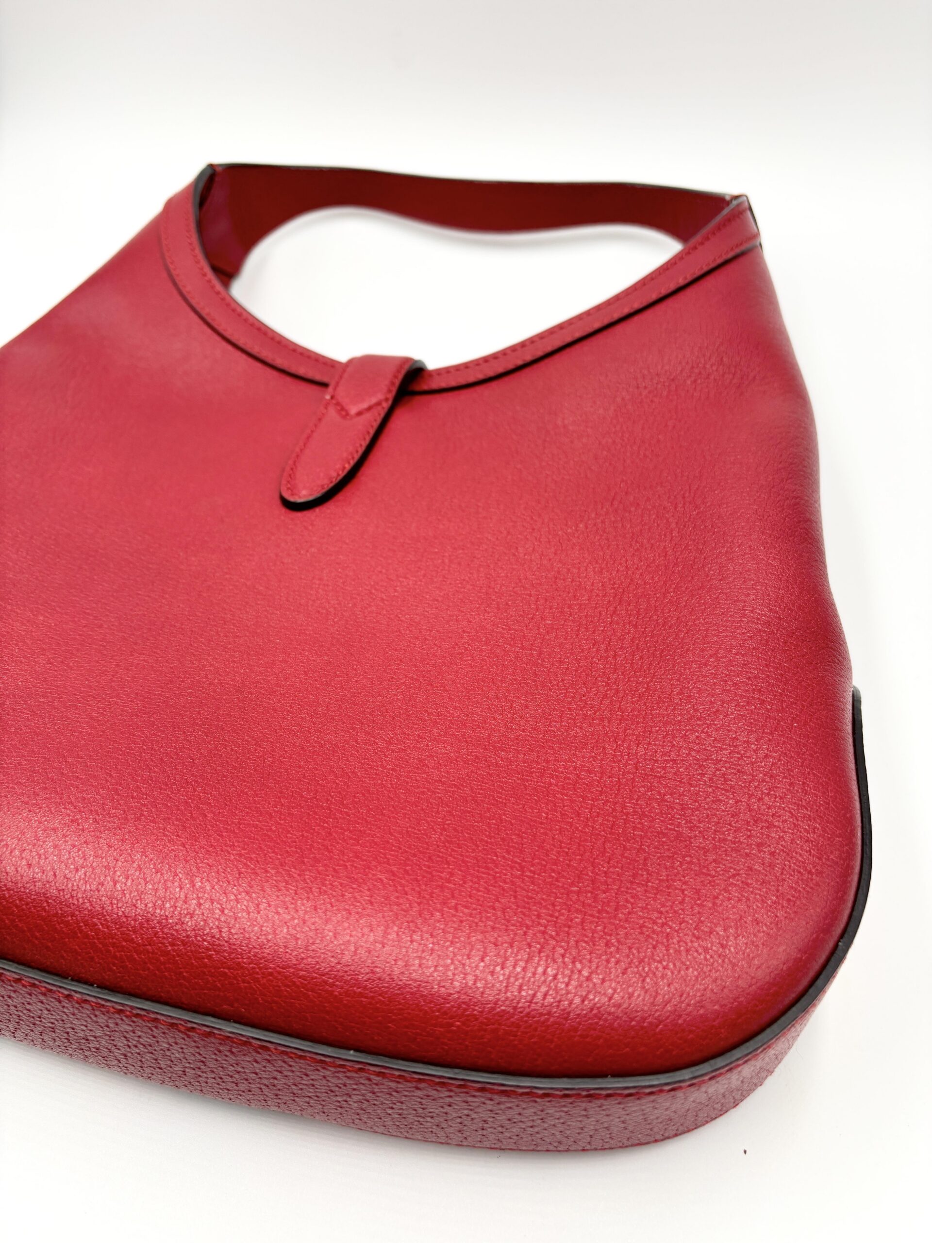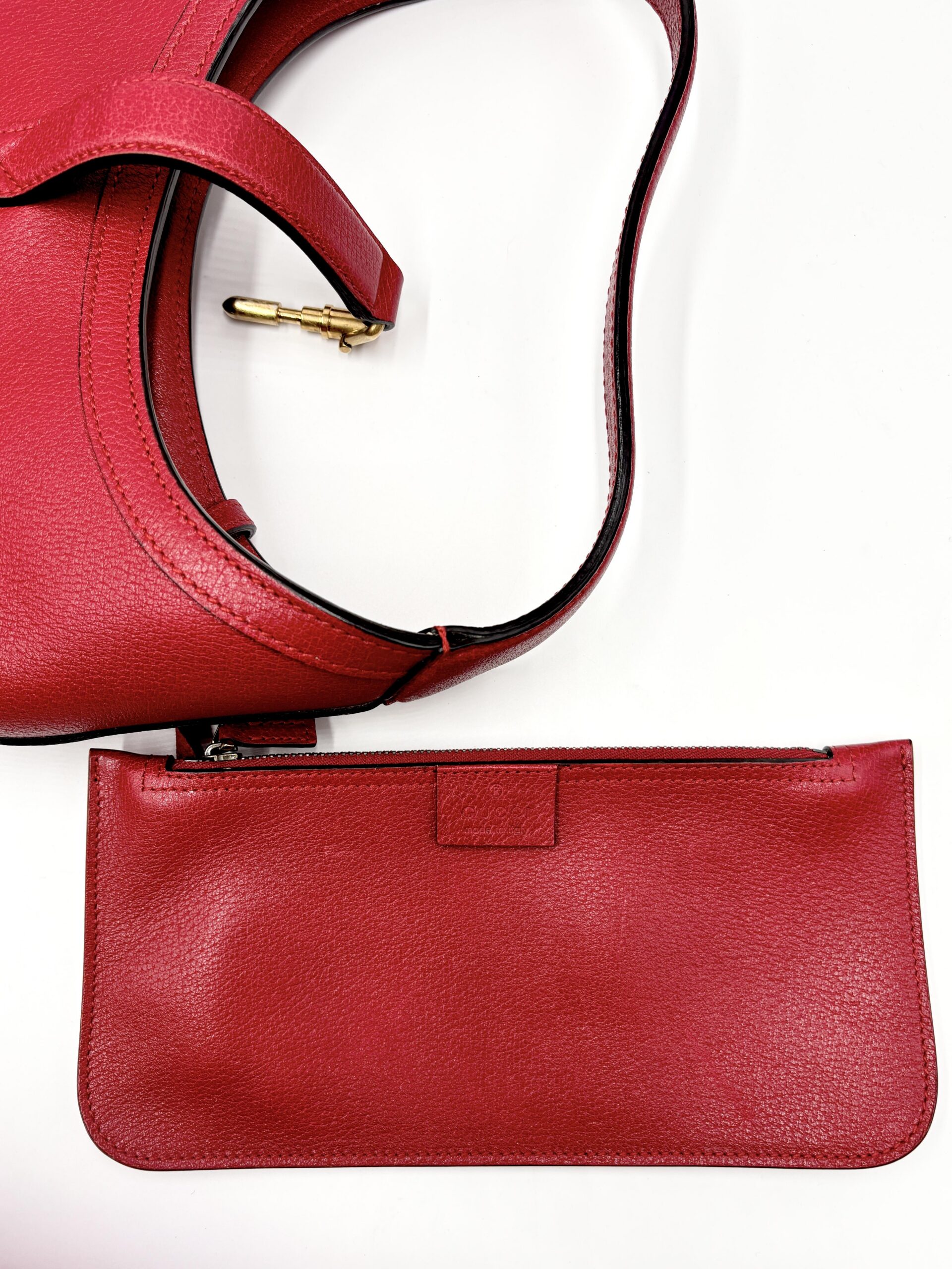 GUCCI mod. Jackie in pelle rossa con fascia centrale blu/rossa/blu e pochette interna
