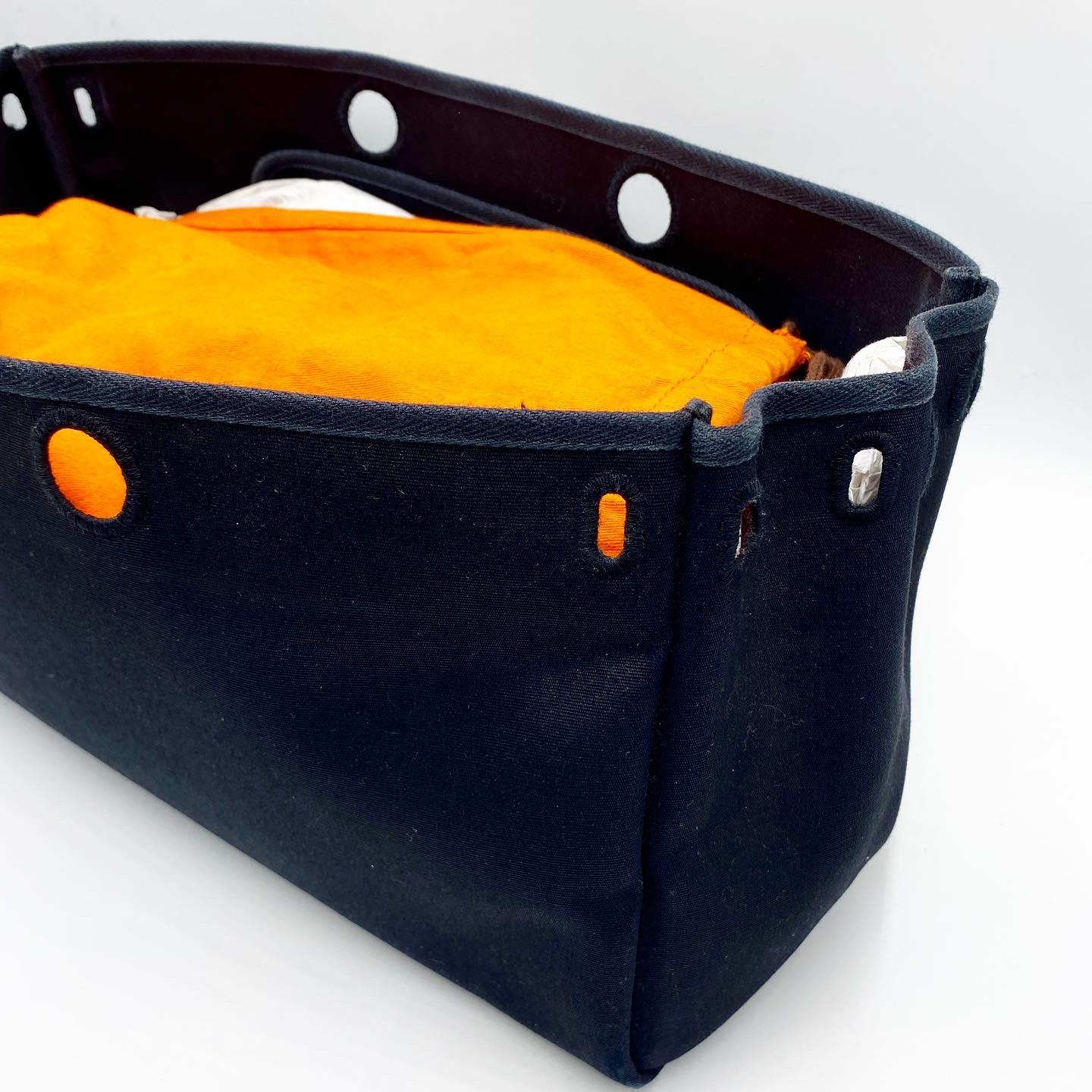 La borsa è dotata di doppia scocca: staccando la profilatura del bordo con i manici, questa può essere montata su una scocca di dimensioni più piccole: avete quindi due borse in una.