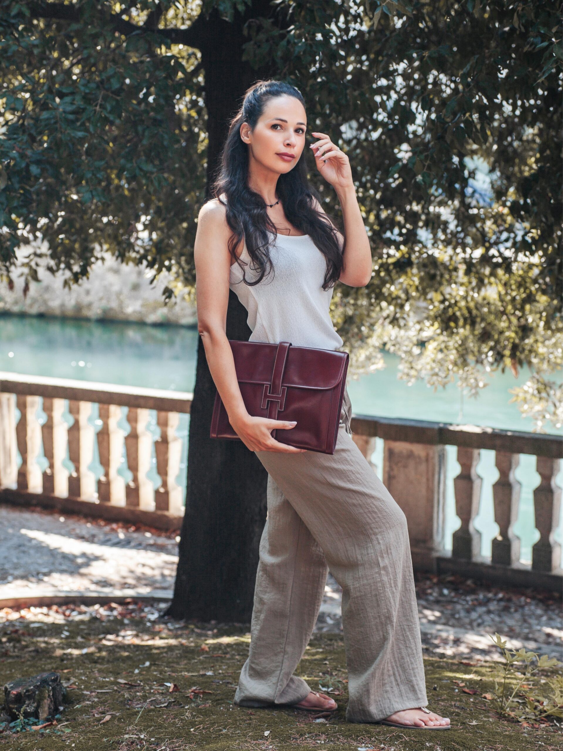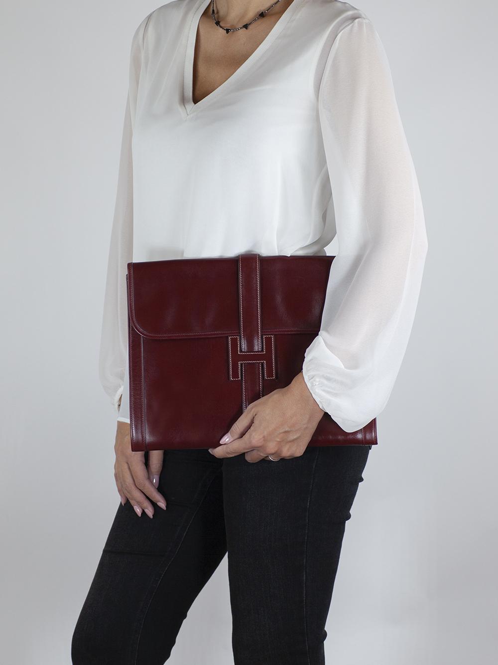 HERMES Jige Large in vitello box bordeaux