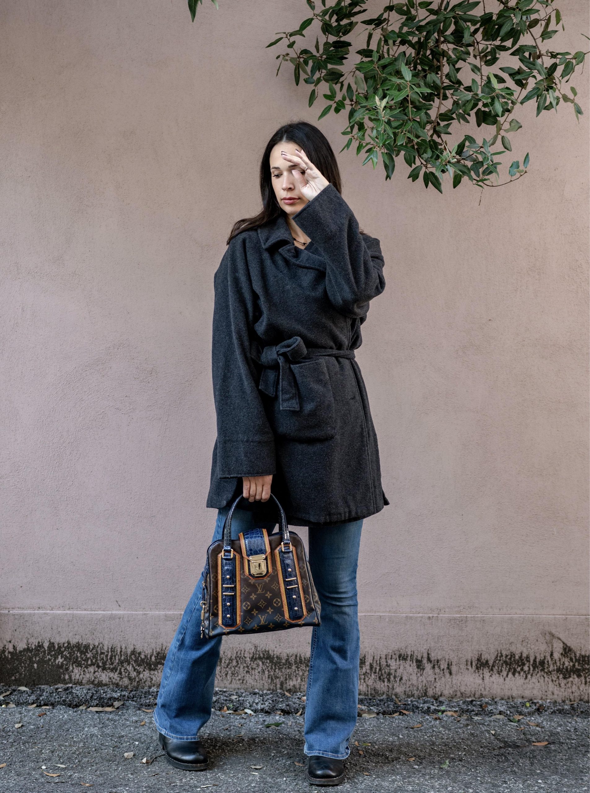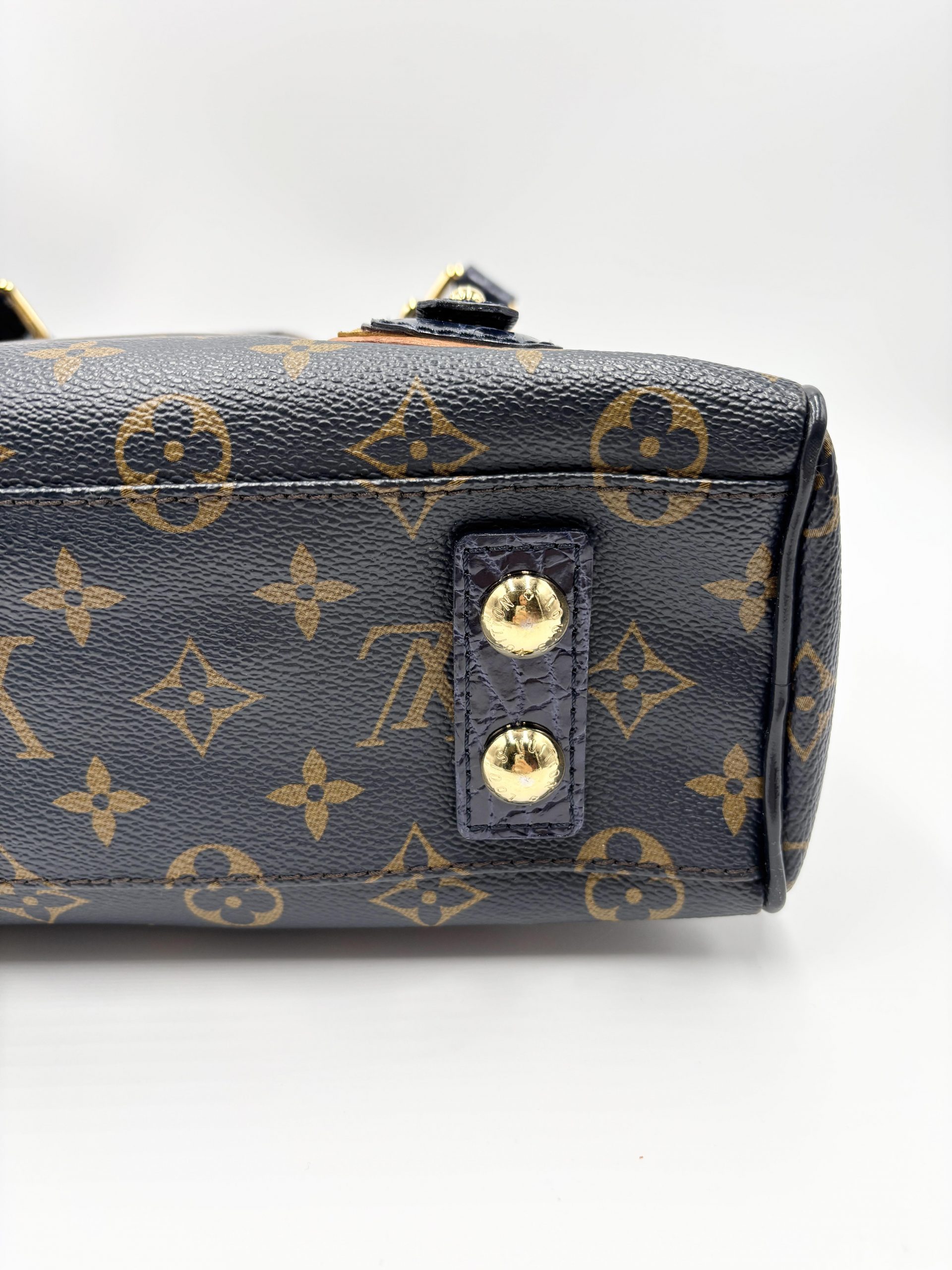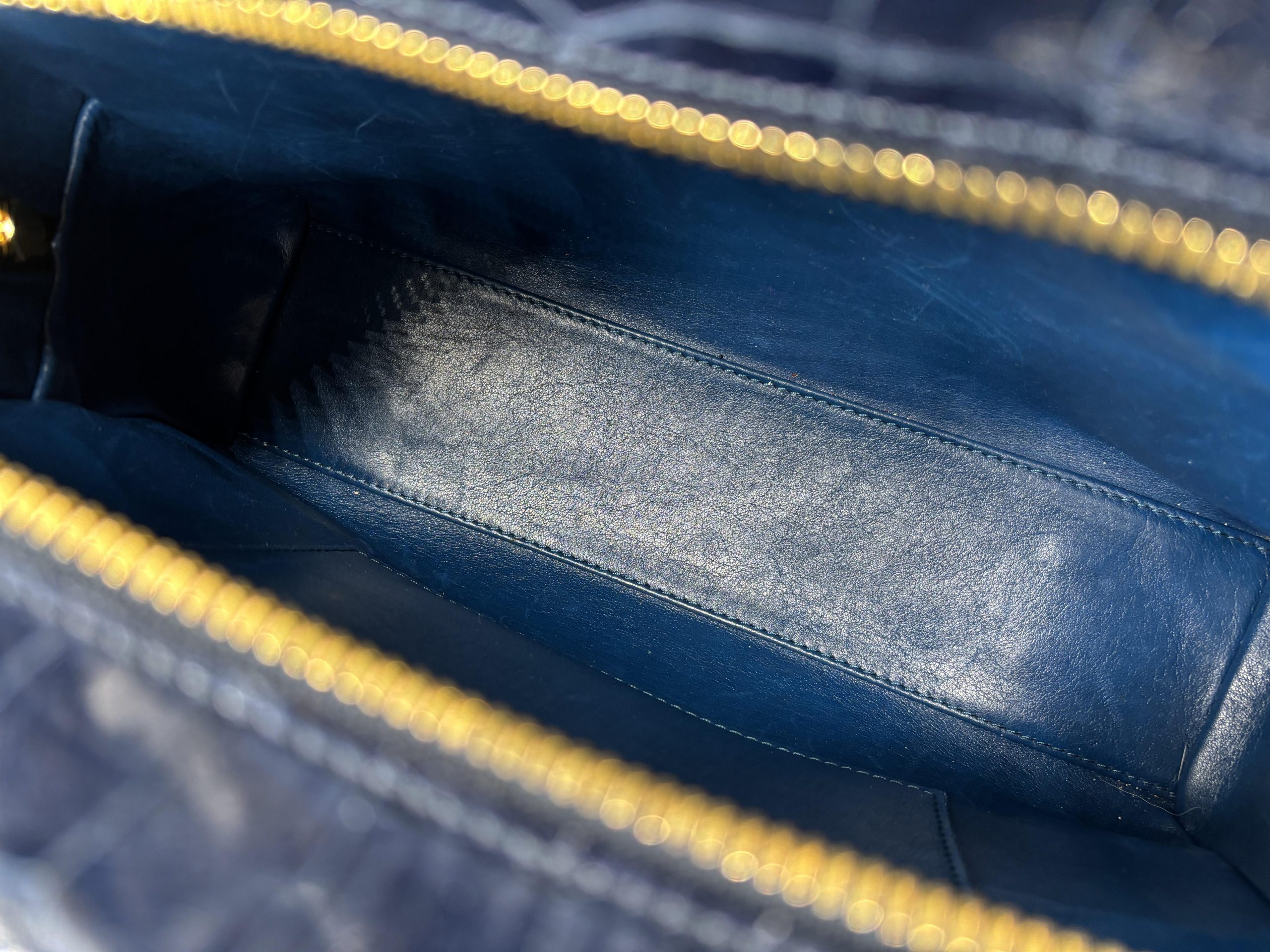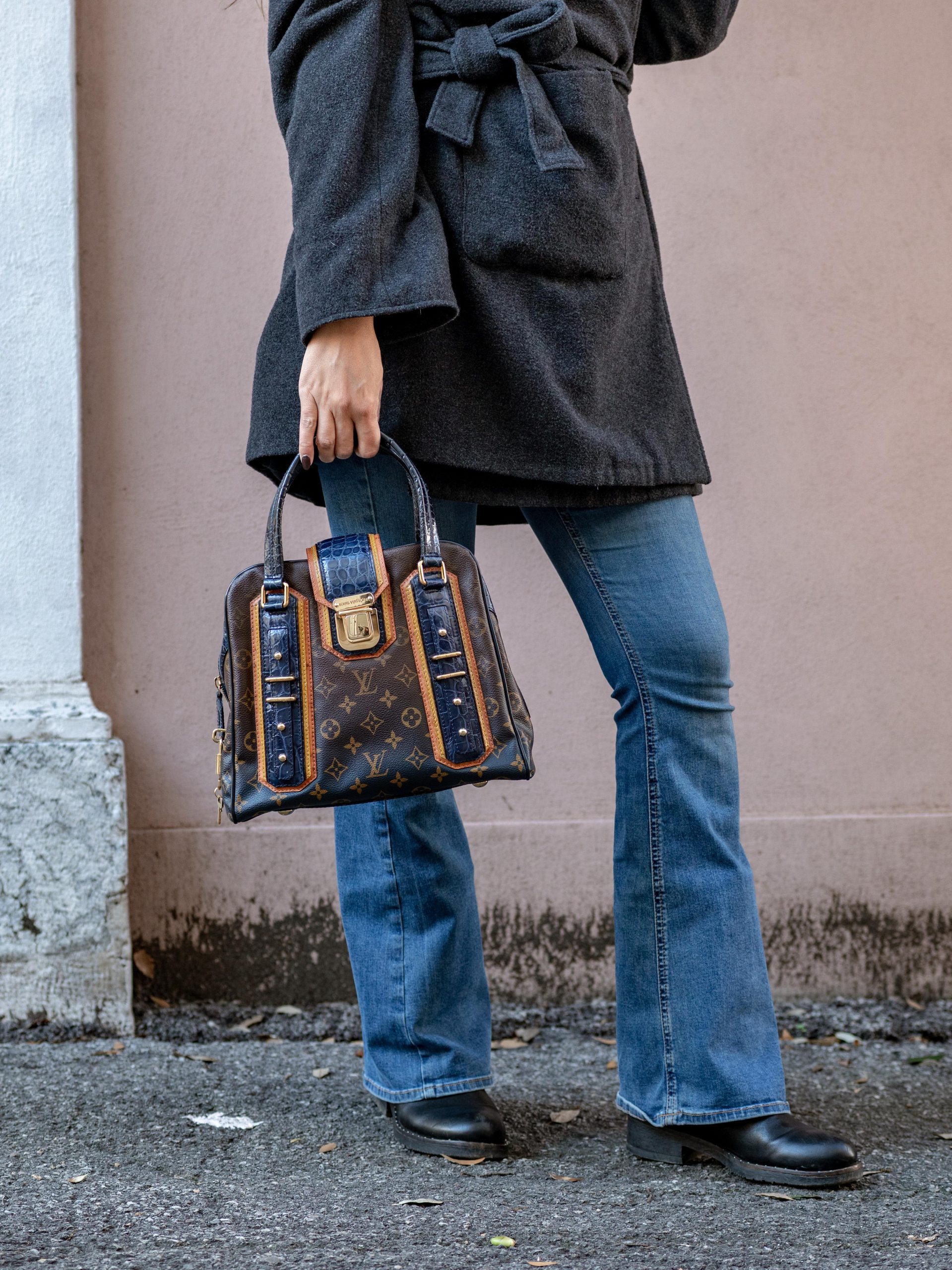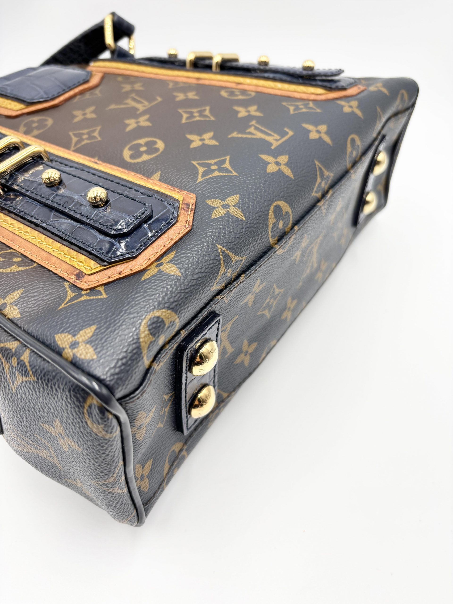 Questa particolare e rarissima Limite Edition è costituita da tessuto monogram con sfumatura blu alla base della borsa, manici e profili in pelle di coccodrillo blu, di serpente e di struzzo.