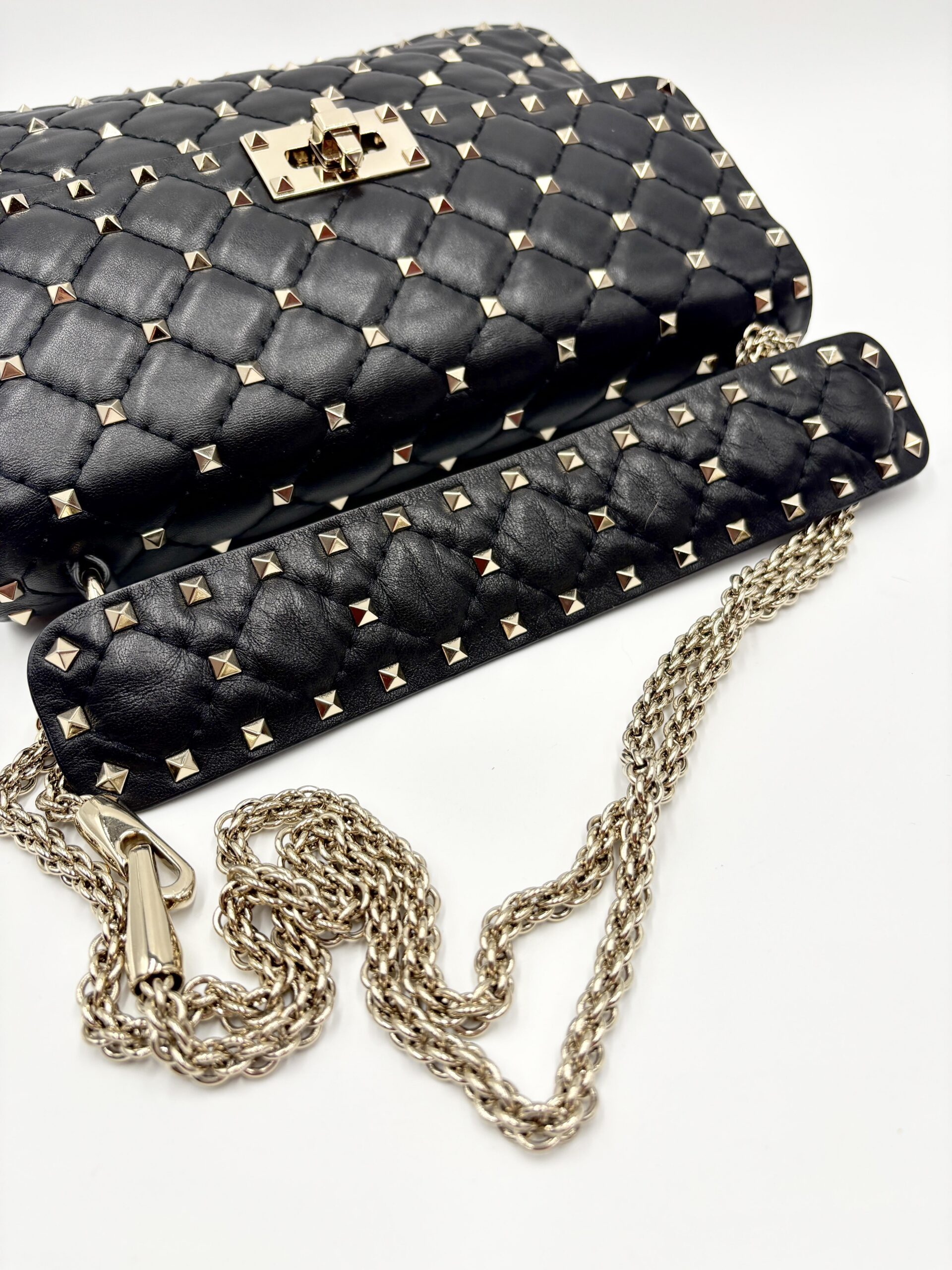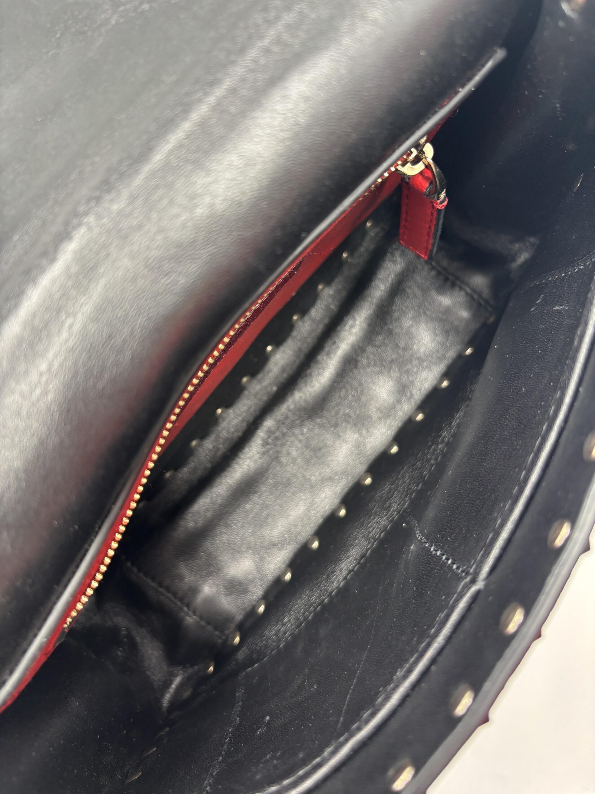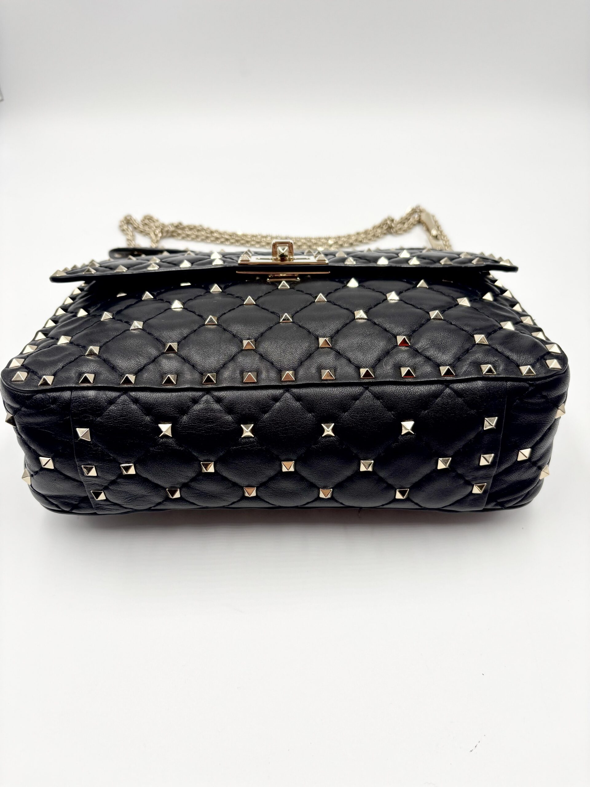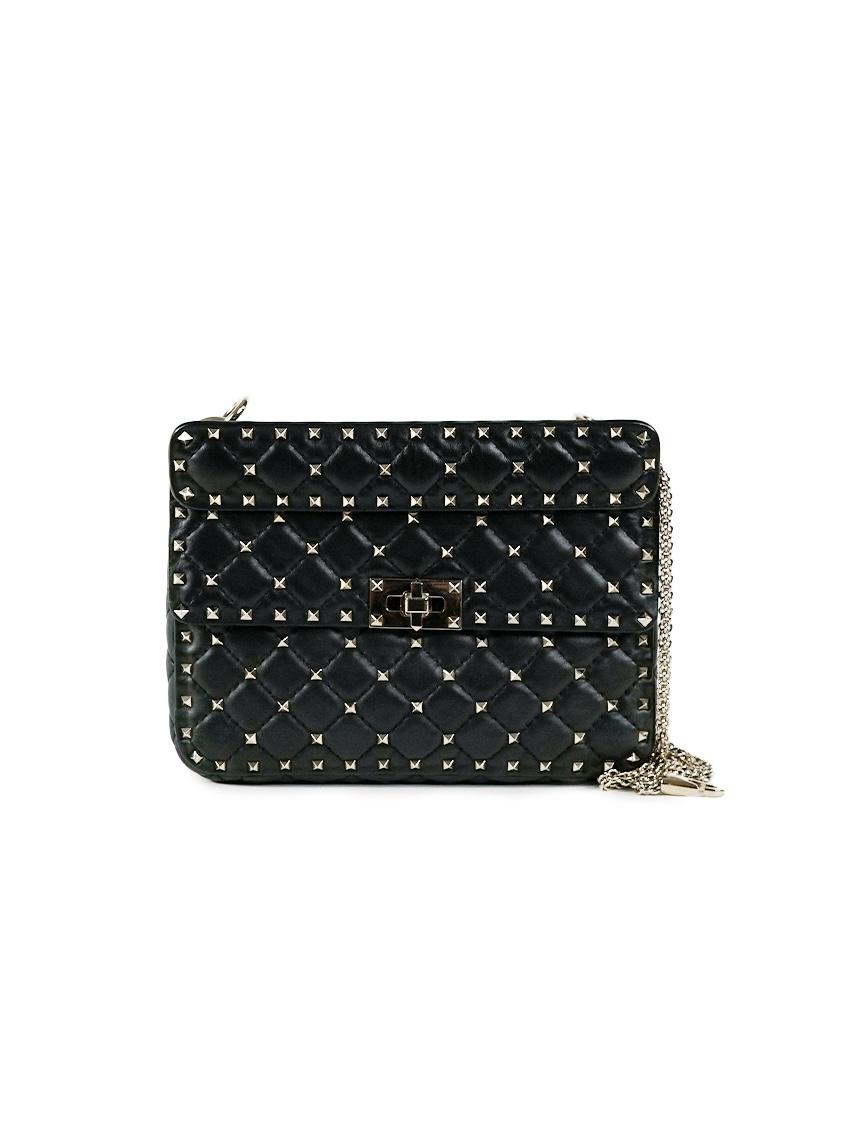 VALENTINO Spike media in pelle nera con borchie gold light.