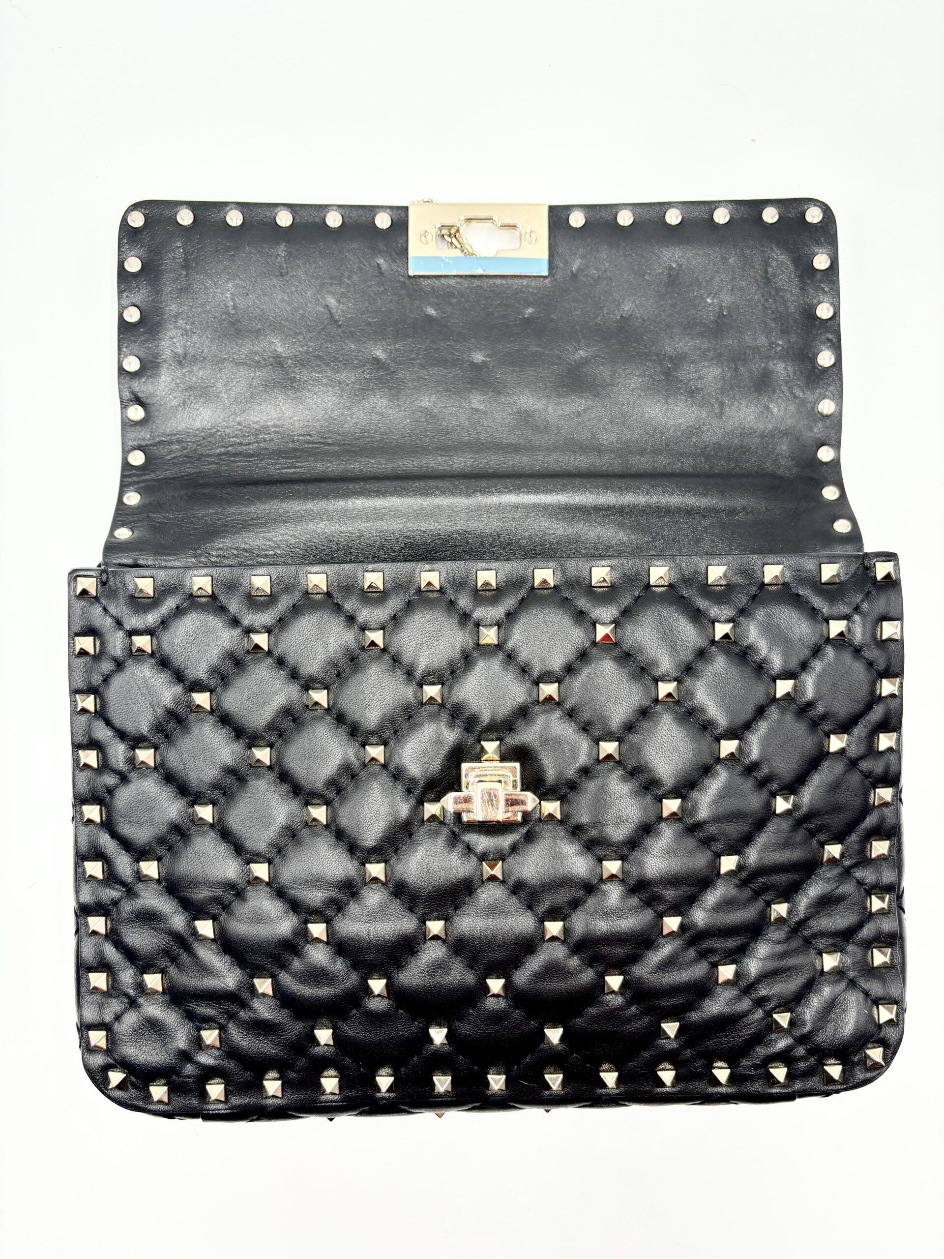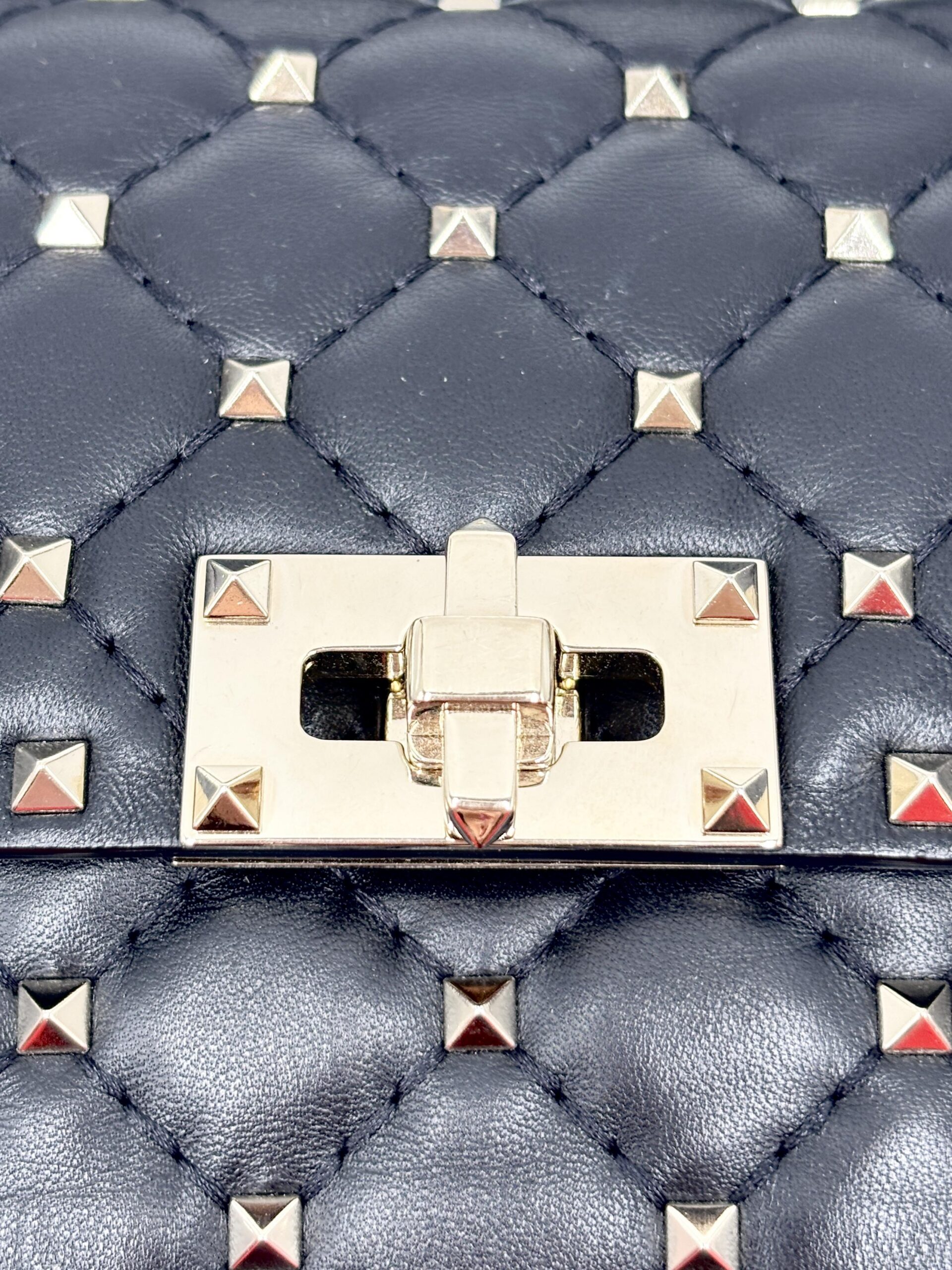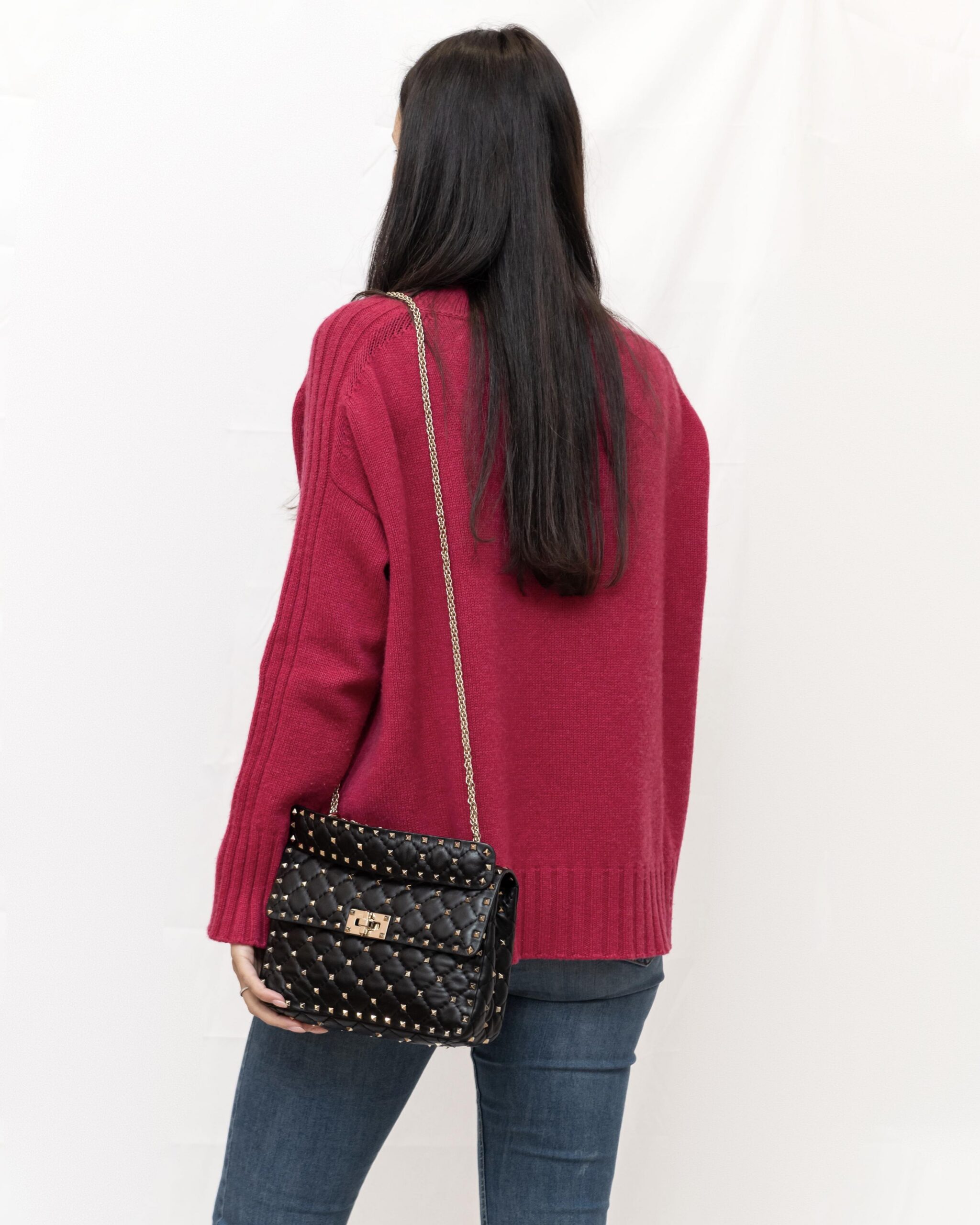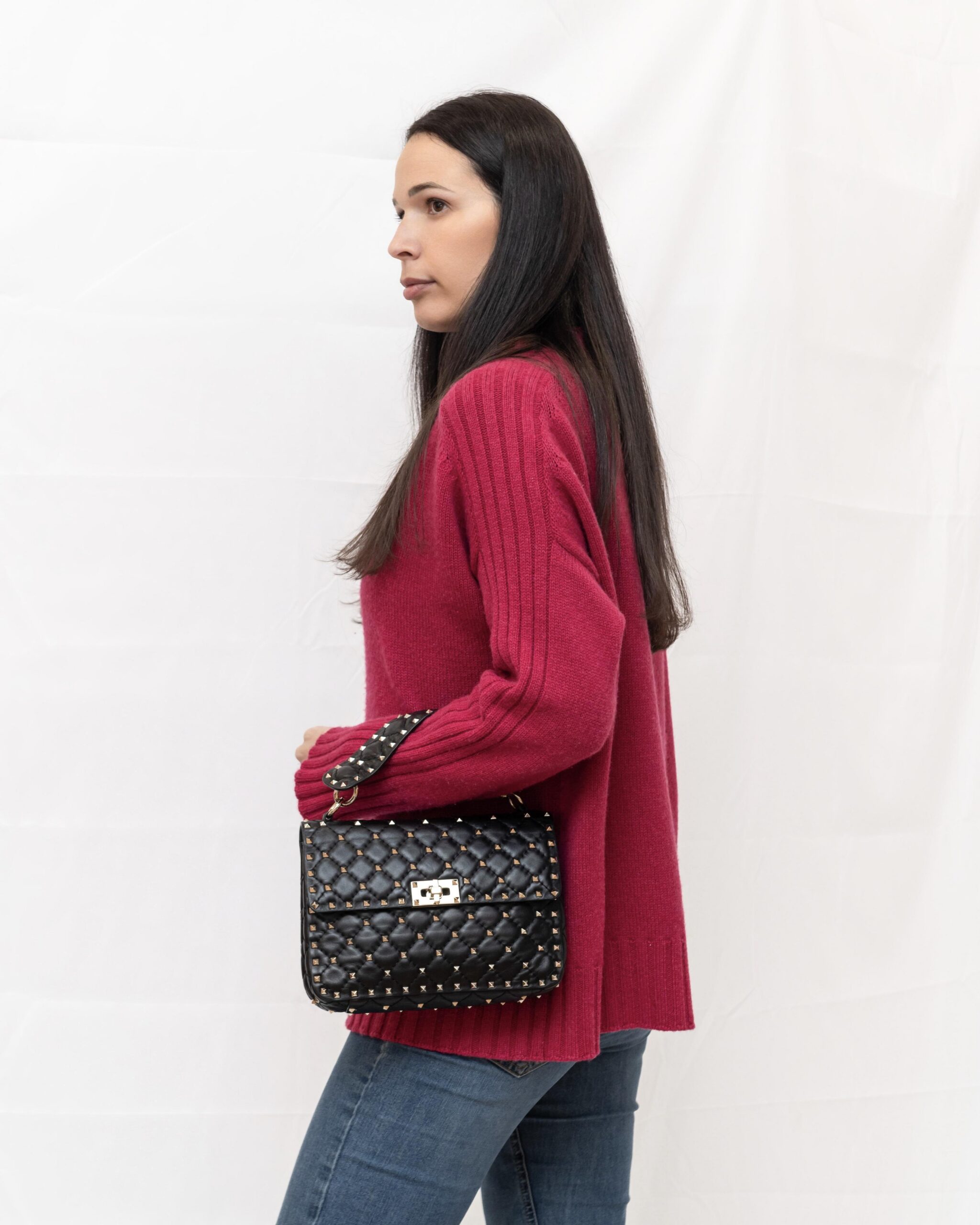 VALENTINO Spike media in pelle nera con borchie gold light.