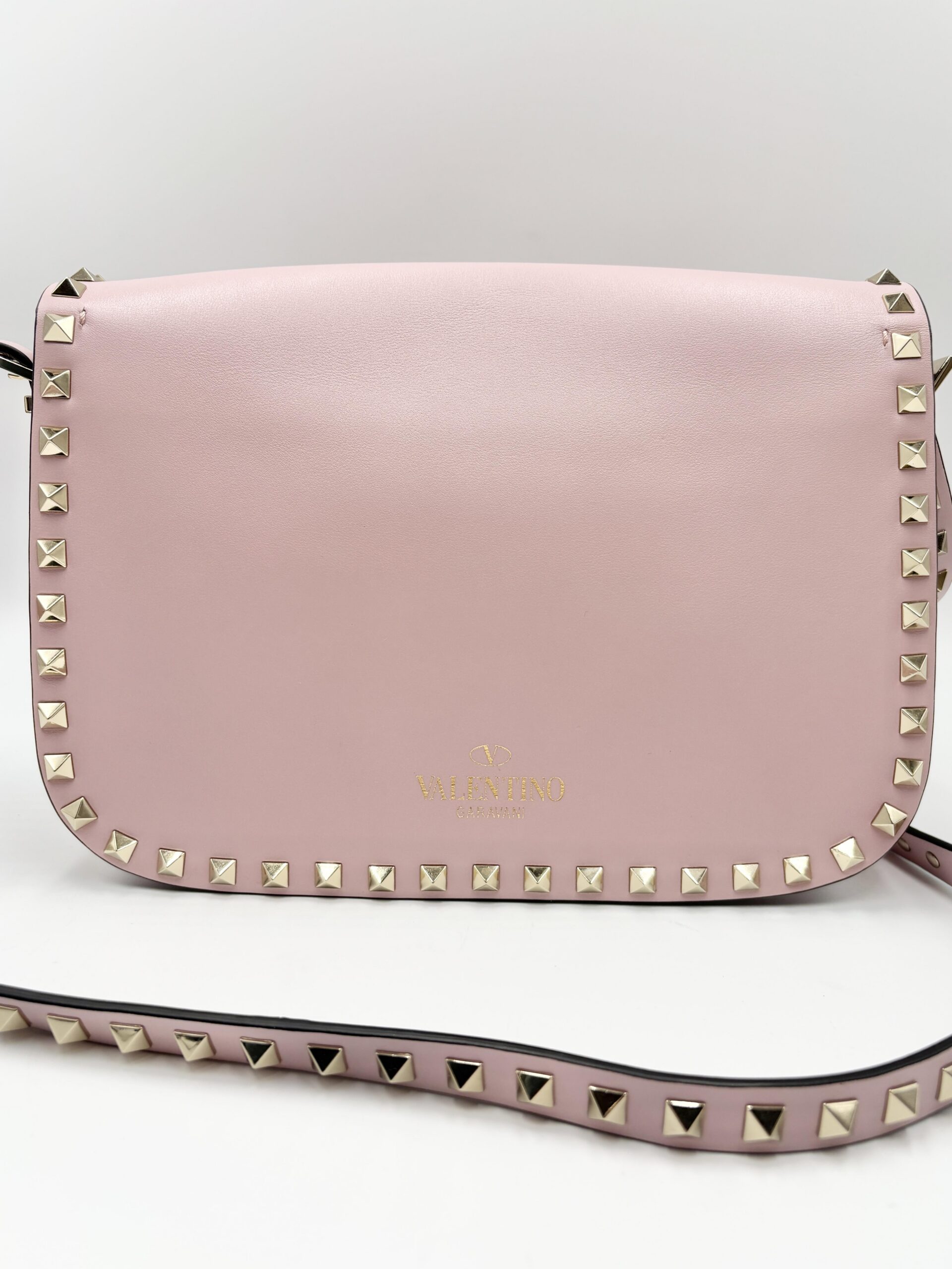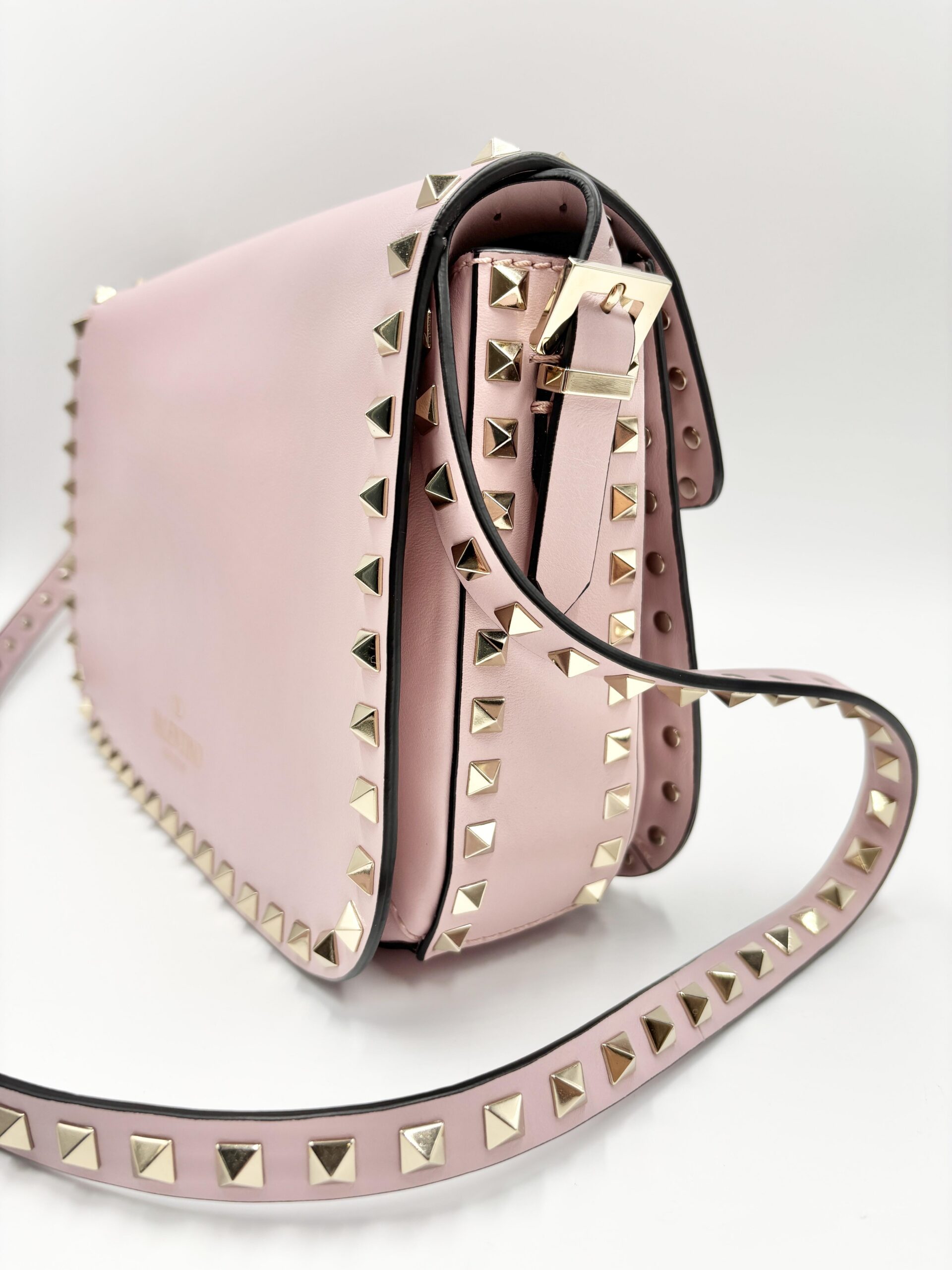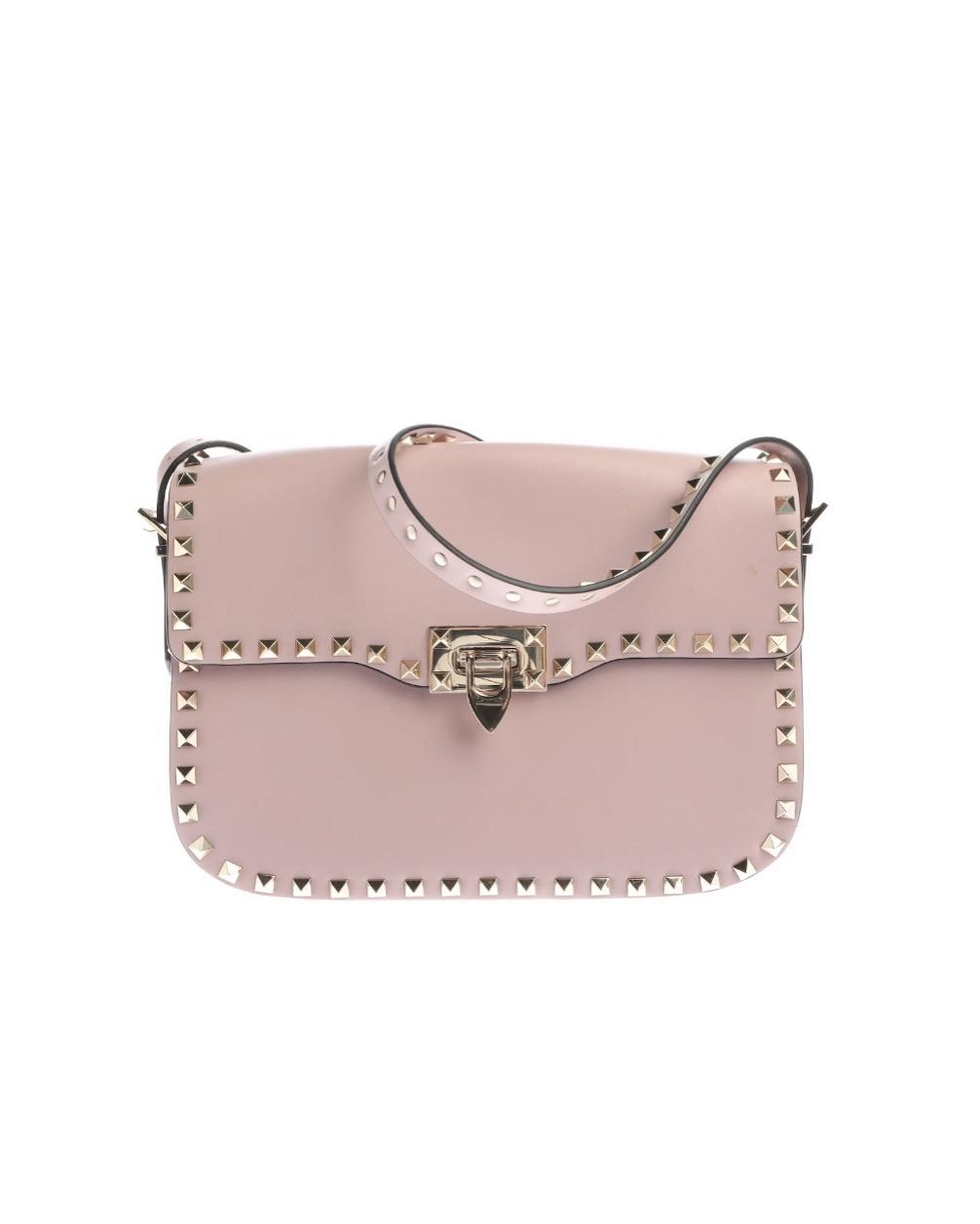 VALENTINO tracolla rockstud in pelle rosa confetto con hardware light gold