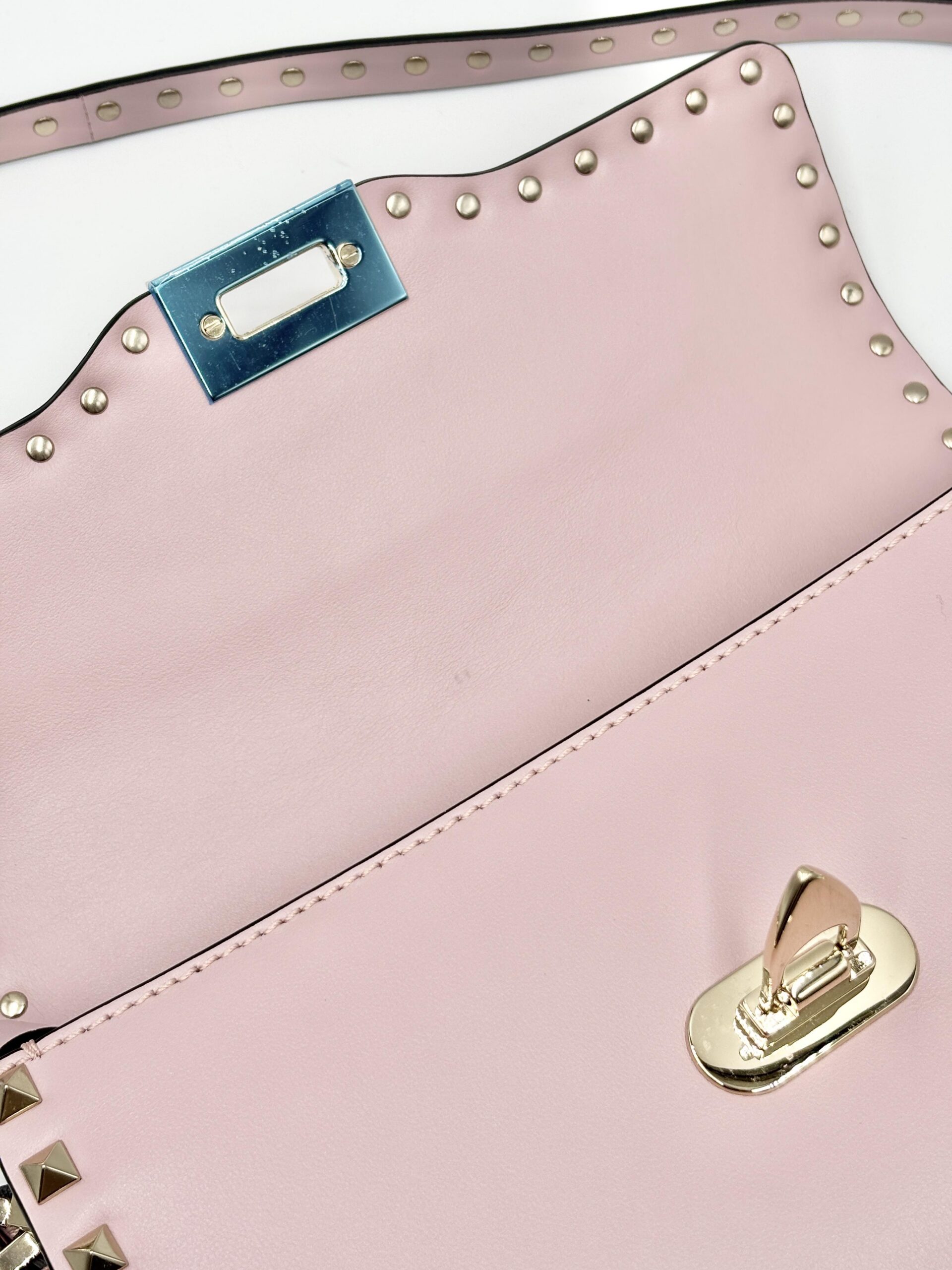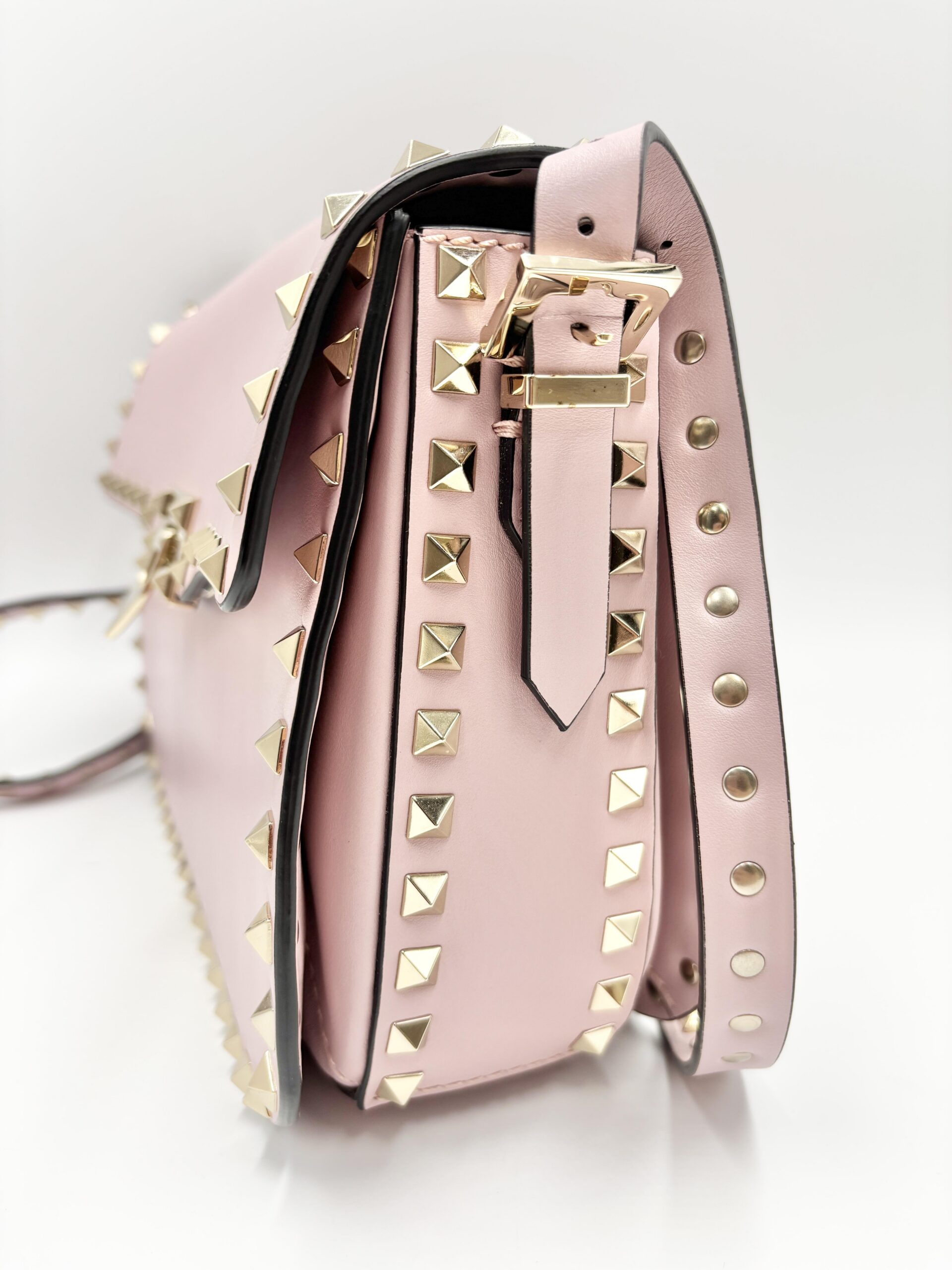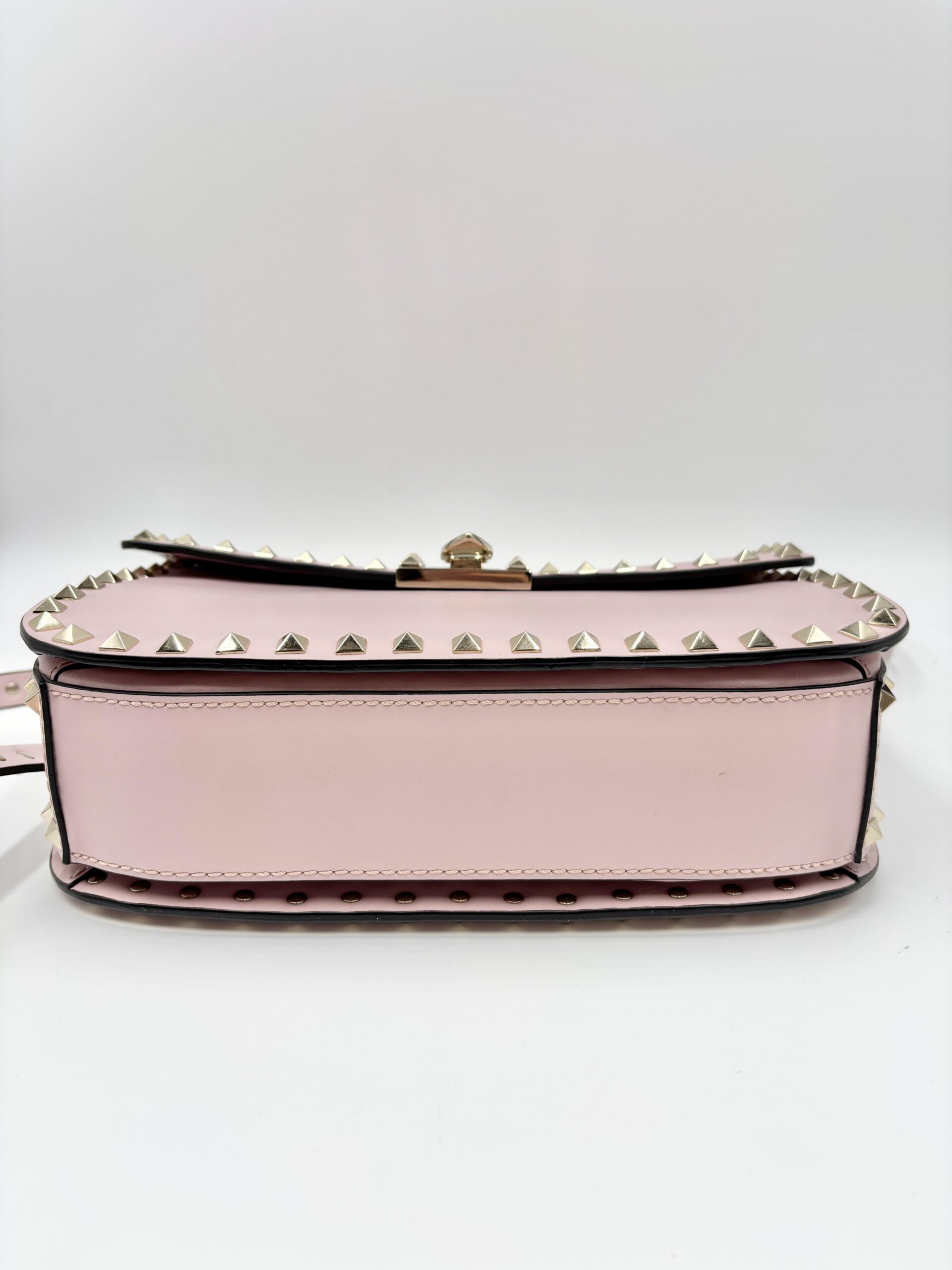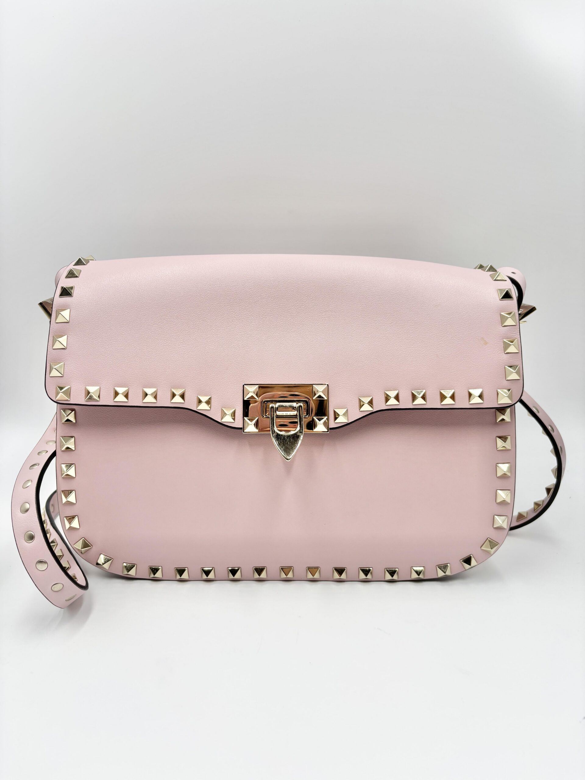 VALENTINO tracolla rockstud in pelle rosa confetto con hardware light gold